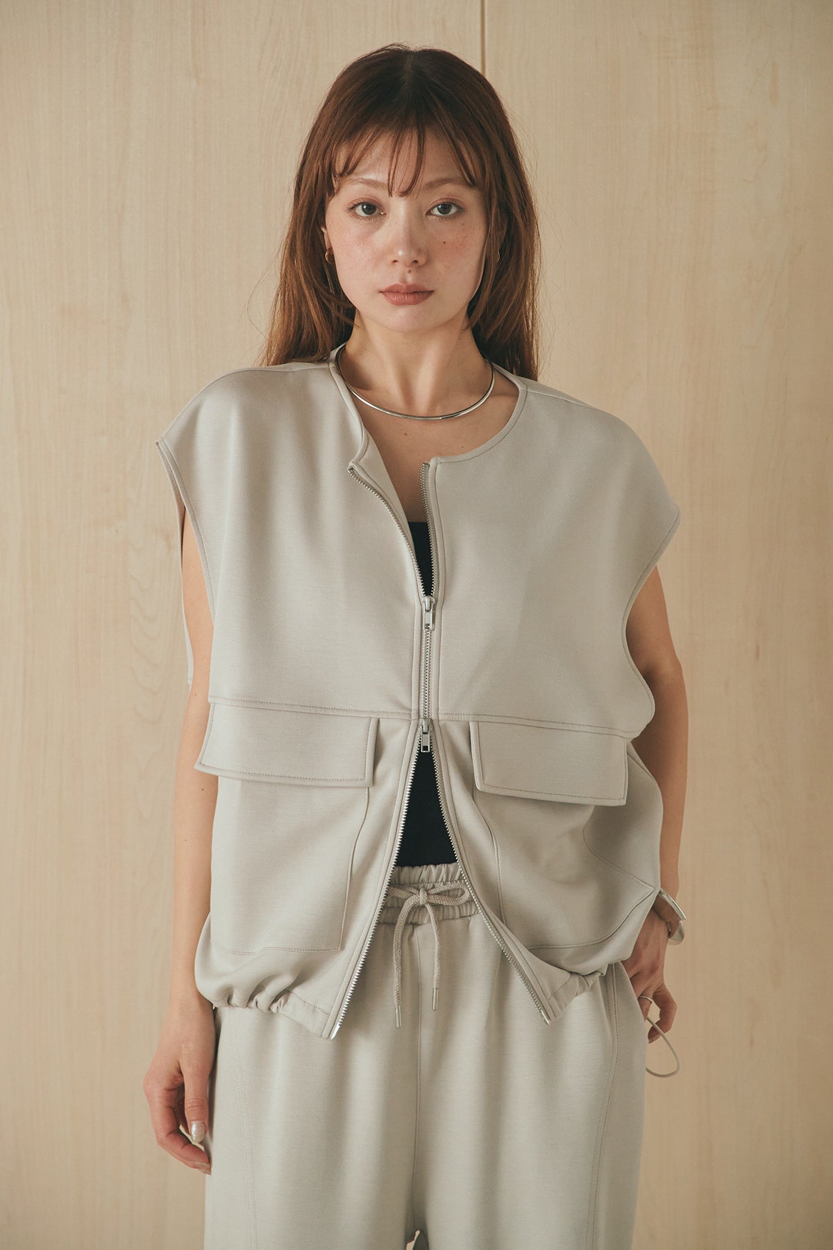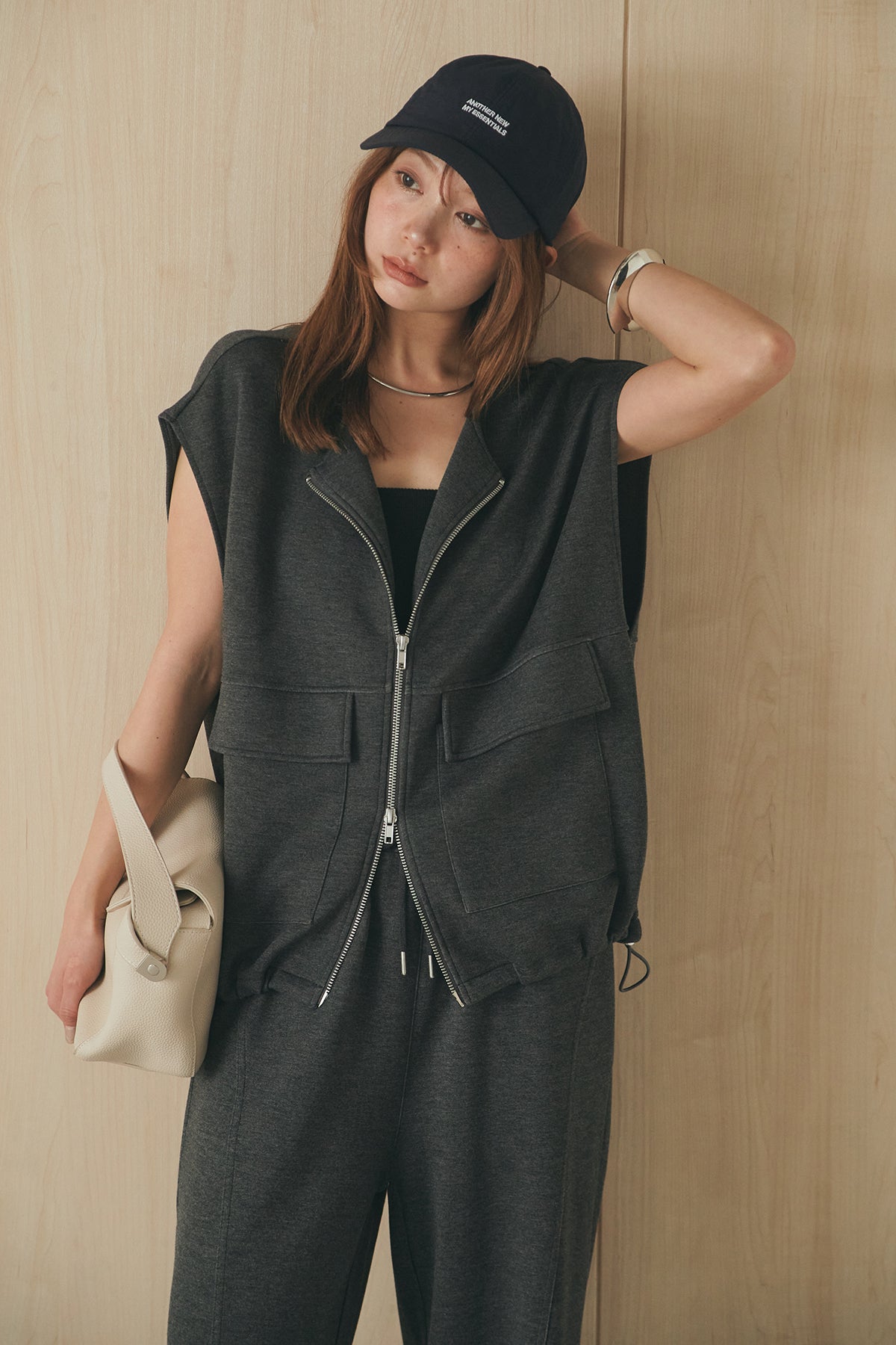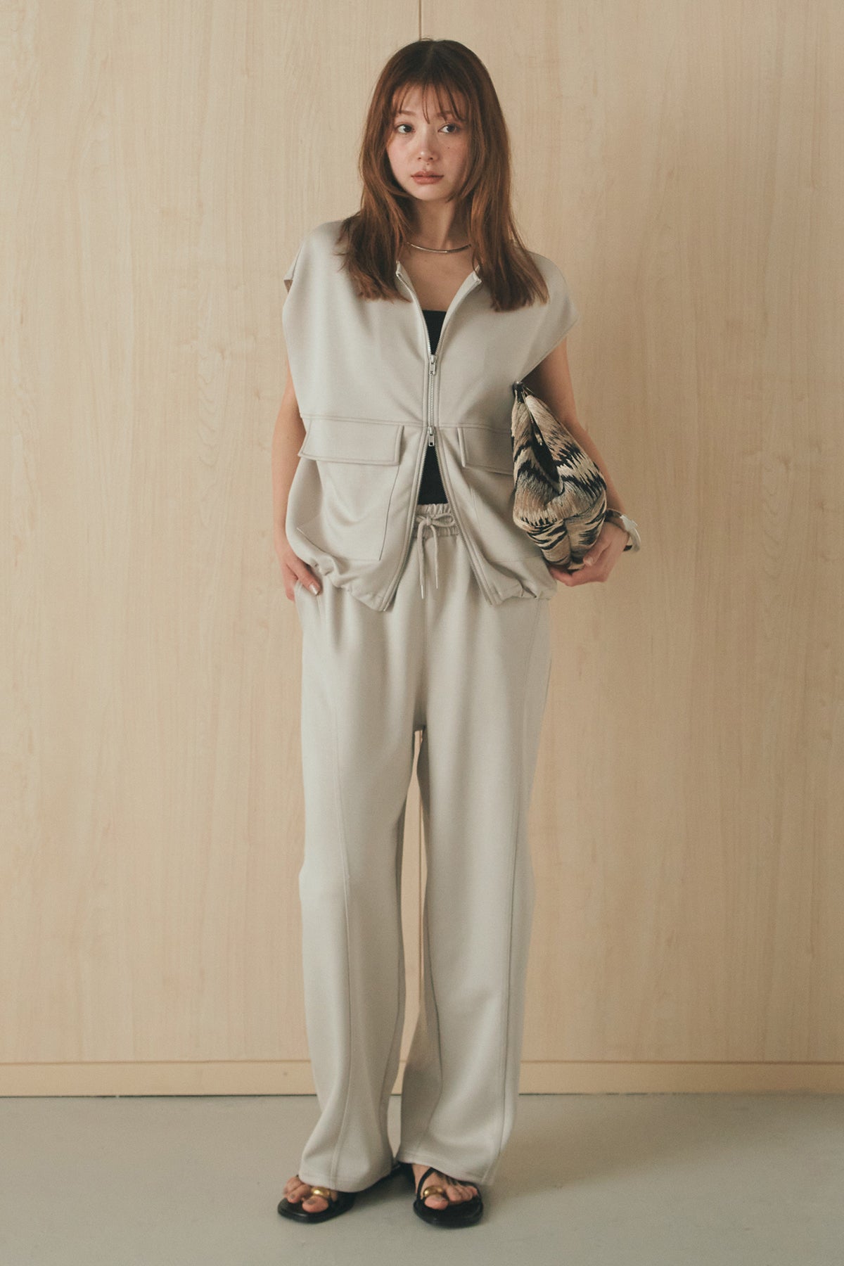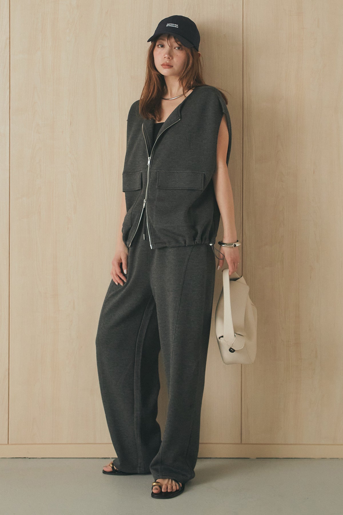 [SET]ボンディング生地ジップベスト+ボンディング生地コクーンパンツ(2set)