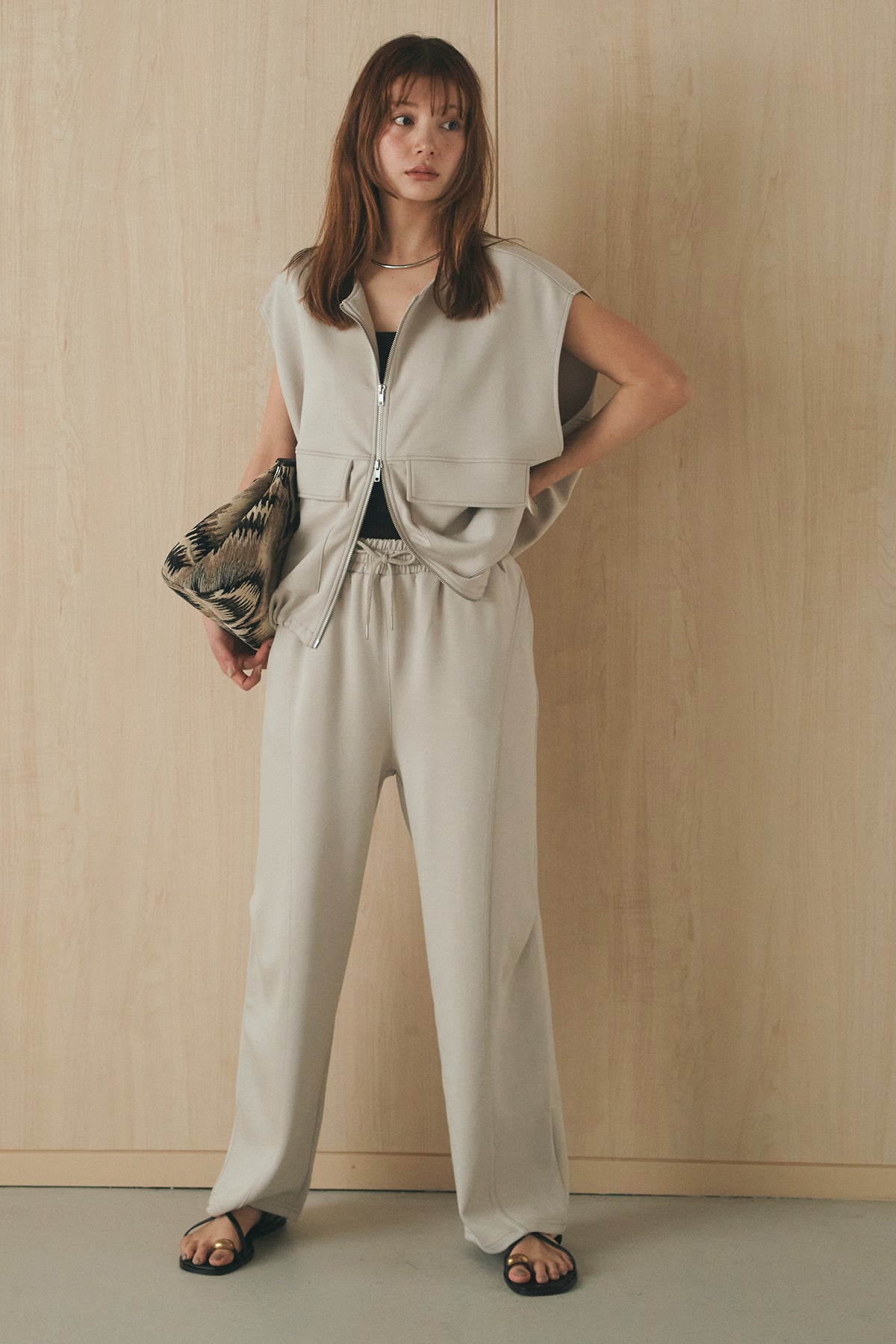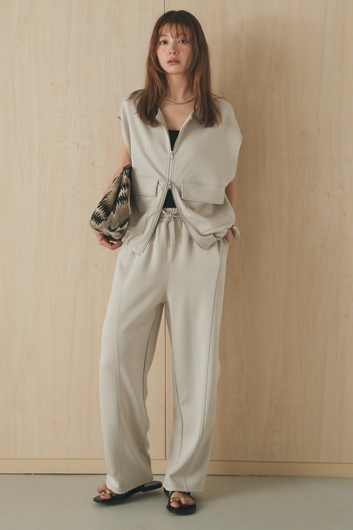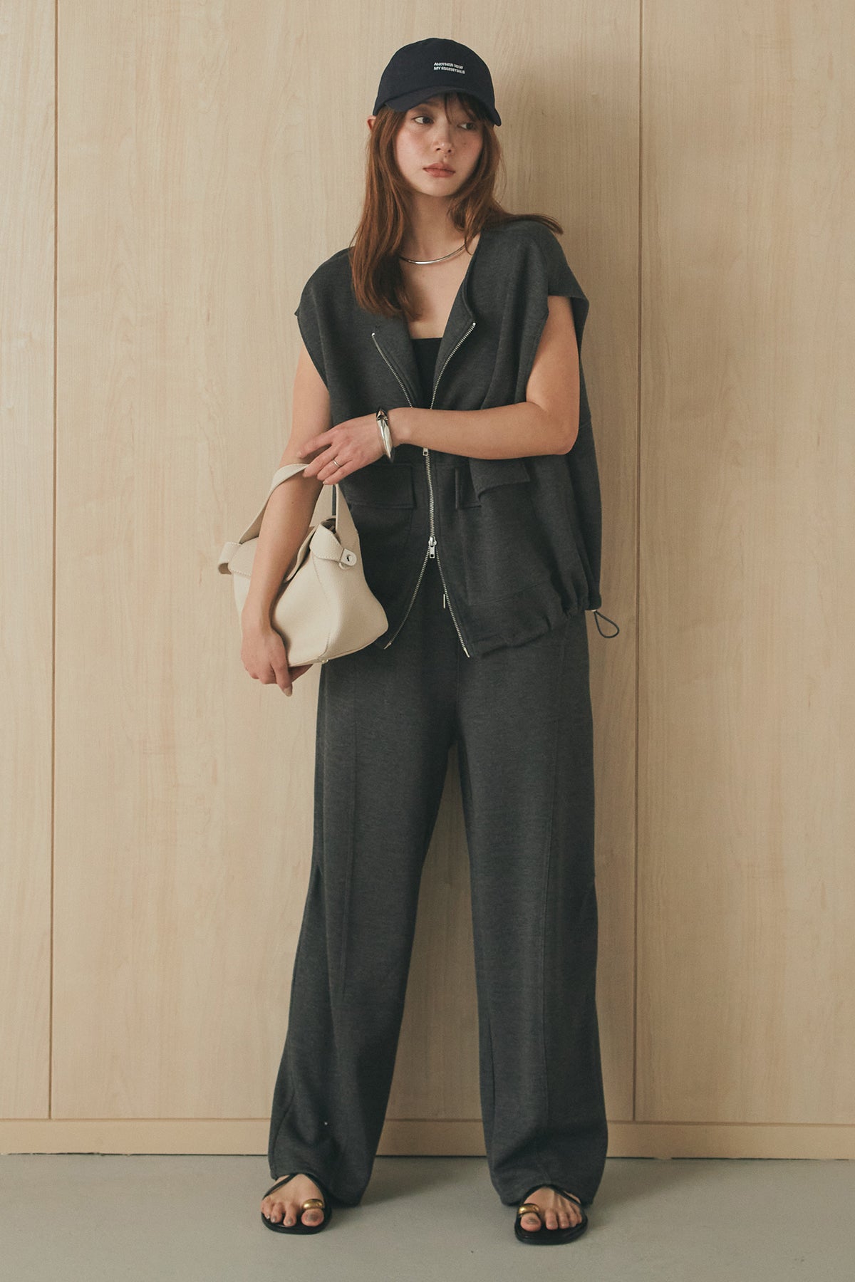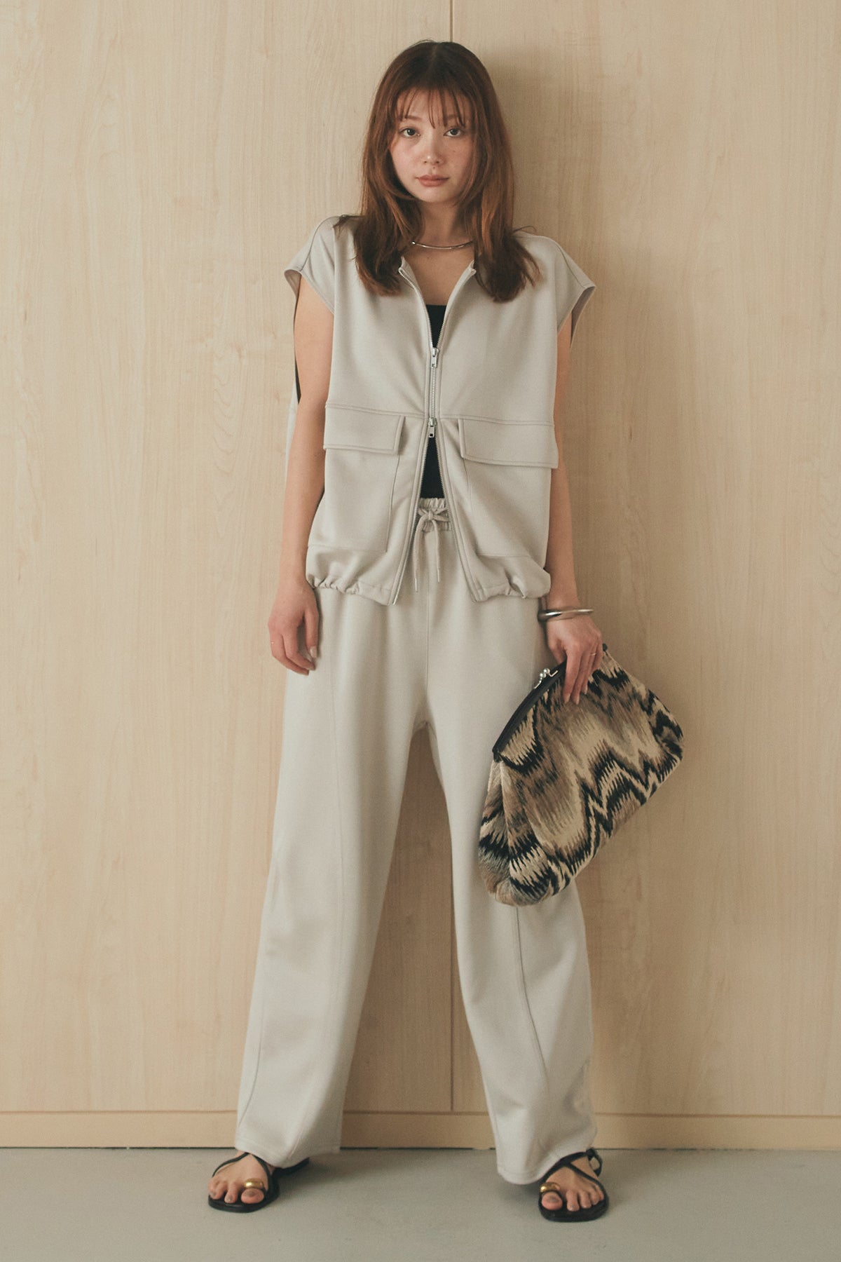 [SET]ボンディング生地ジップベスト+ボンディング生地コクーンパンツ(2set)