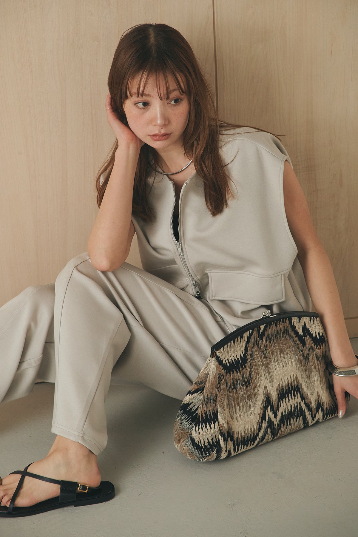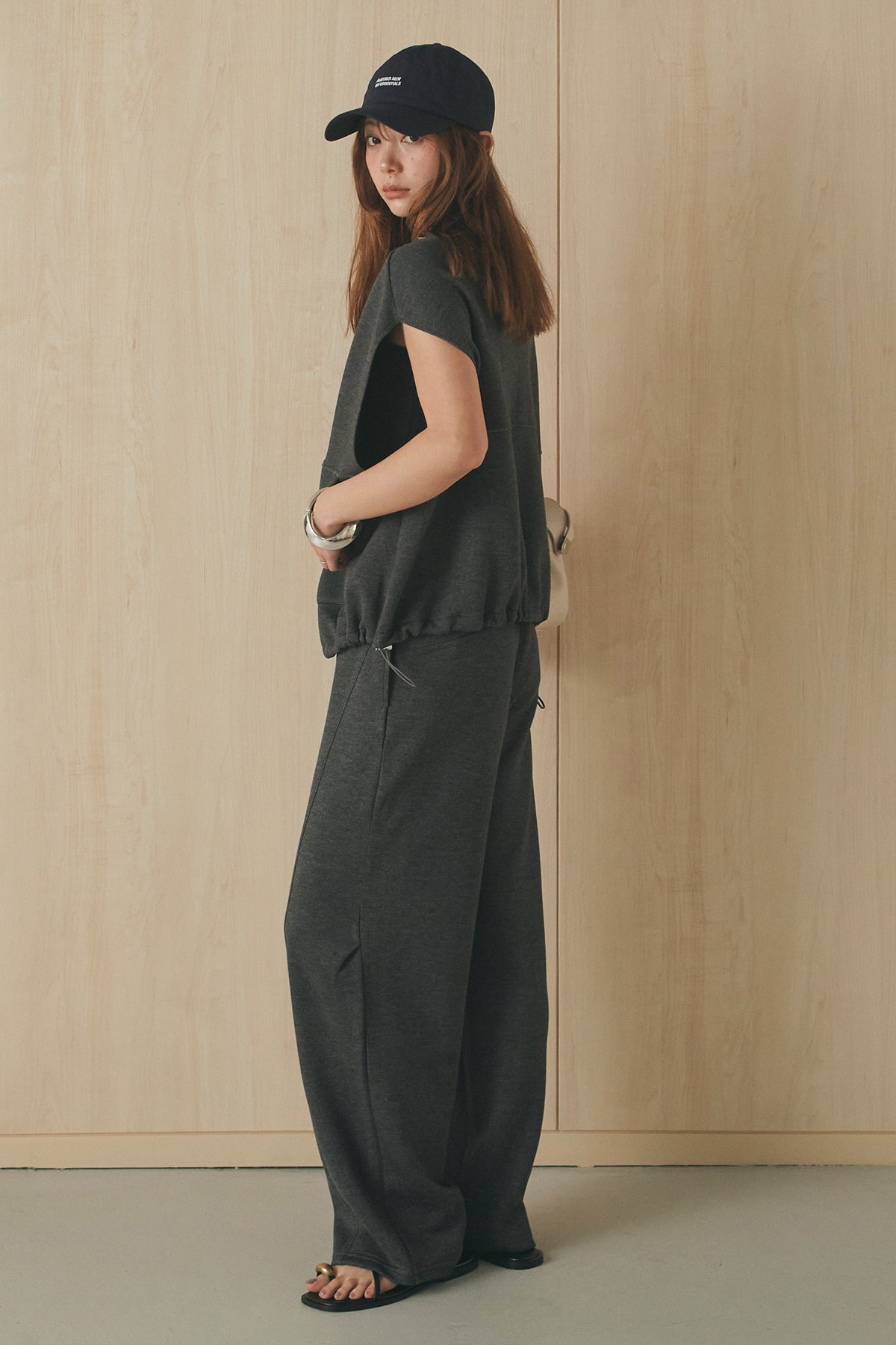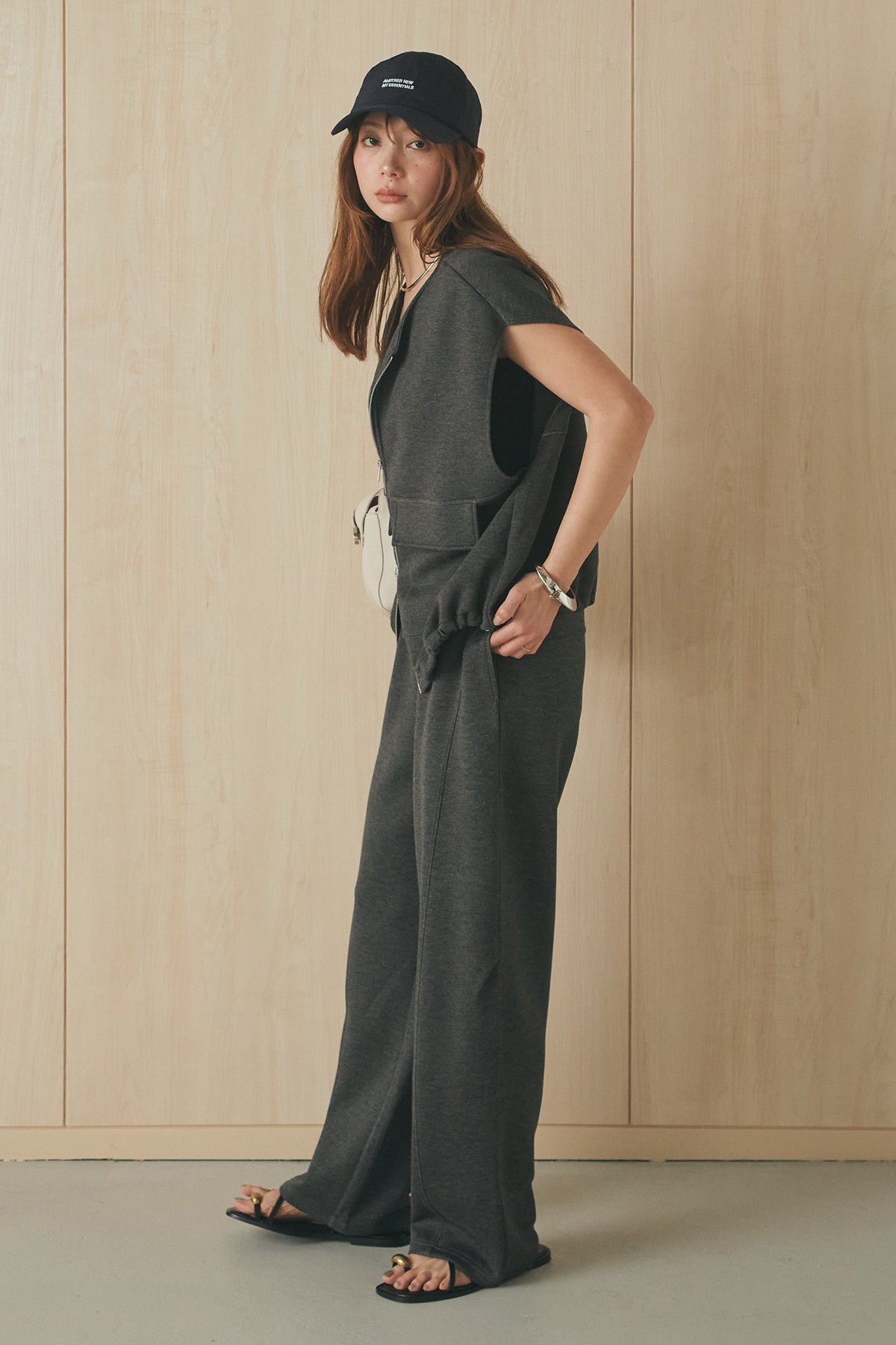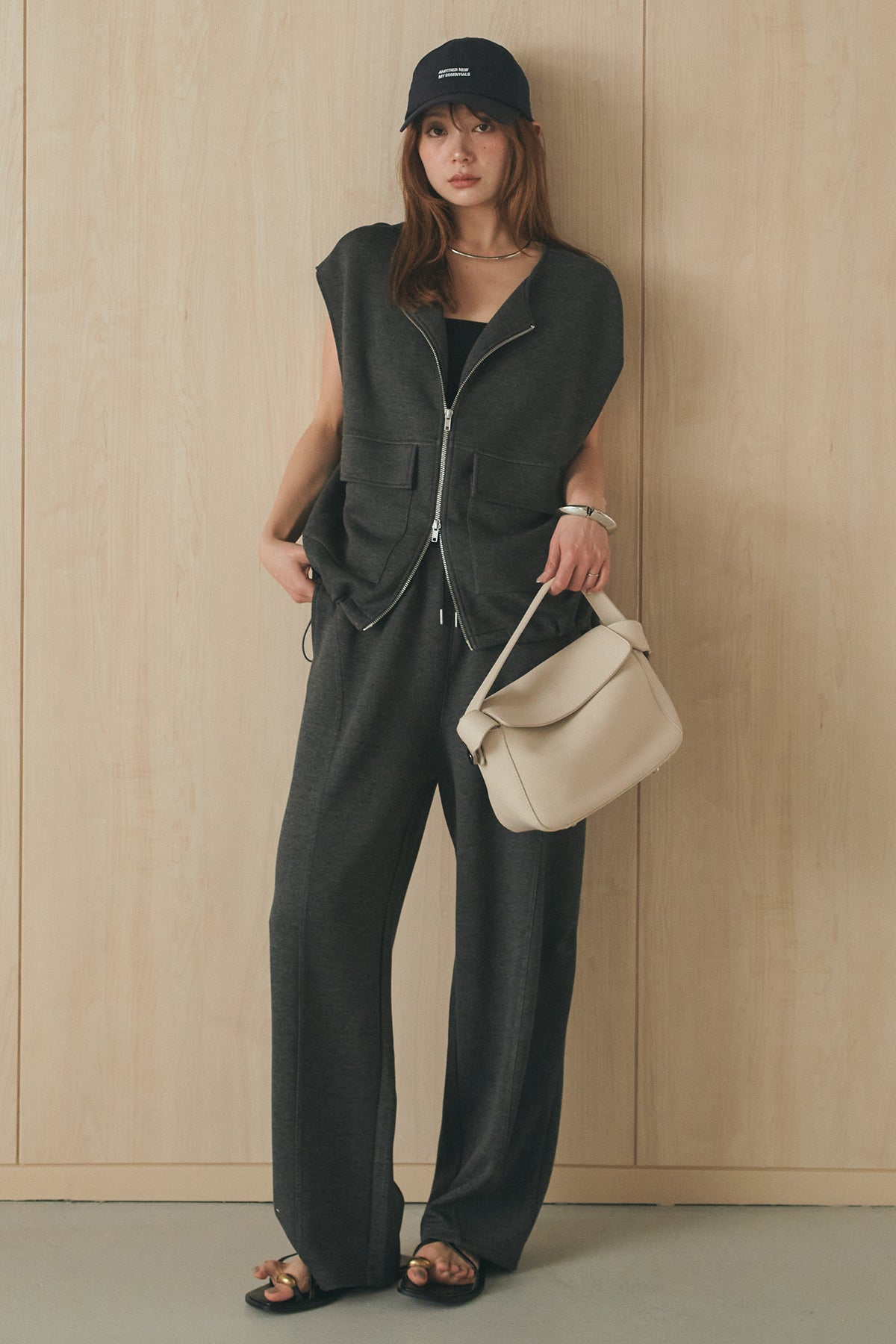 [SET]ボンディング生地ジップベスト+ボンディング生地コクーンパンツ(2set)