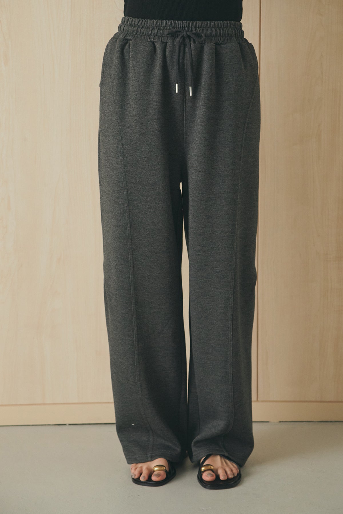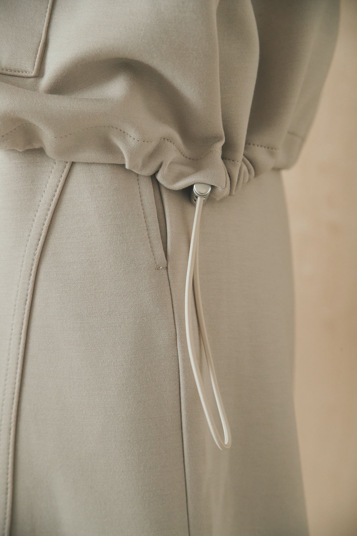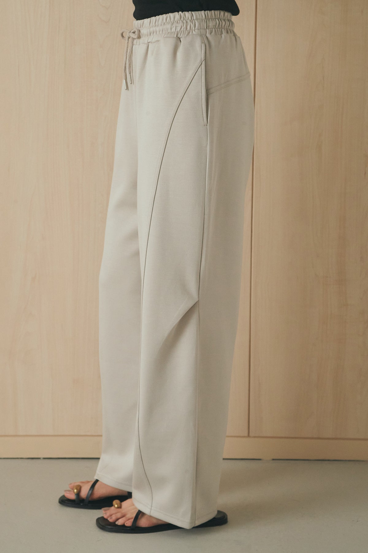 立体的なシルエットが魅力のコクーンパンツ。 ハリのあるボンディング生地で仕立て、丸みのあるフォルムが自然とバランスの取れたスタイリングに仕上げます。すっきりとした縦ラインも意識したデザインで、ラフになりすぎない印象に。 ウエストはゴム+ドローストリング仕様で快適な穿き心地に調整可能。デイリーに取り入れやすく、シンプルなトップス合わせでも様になる一本です。