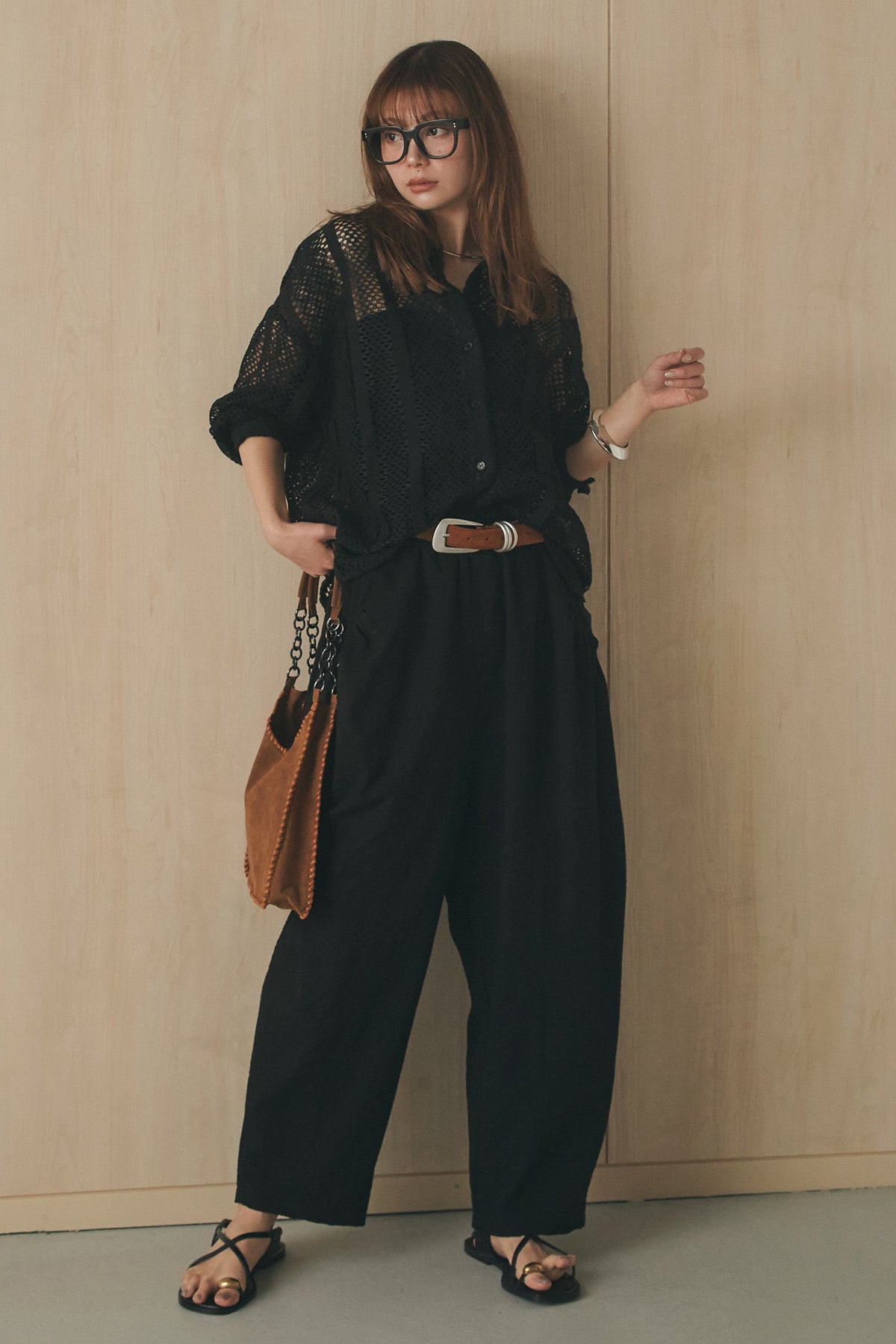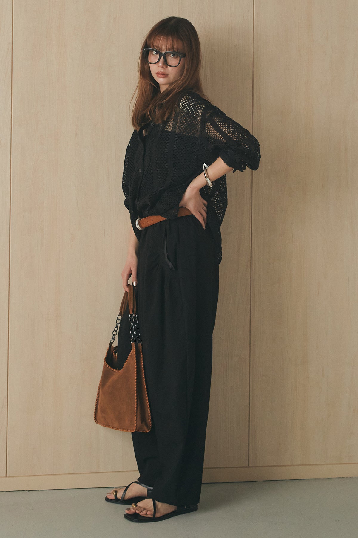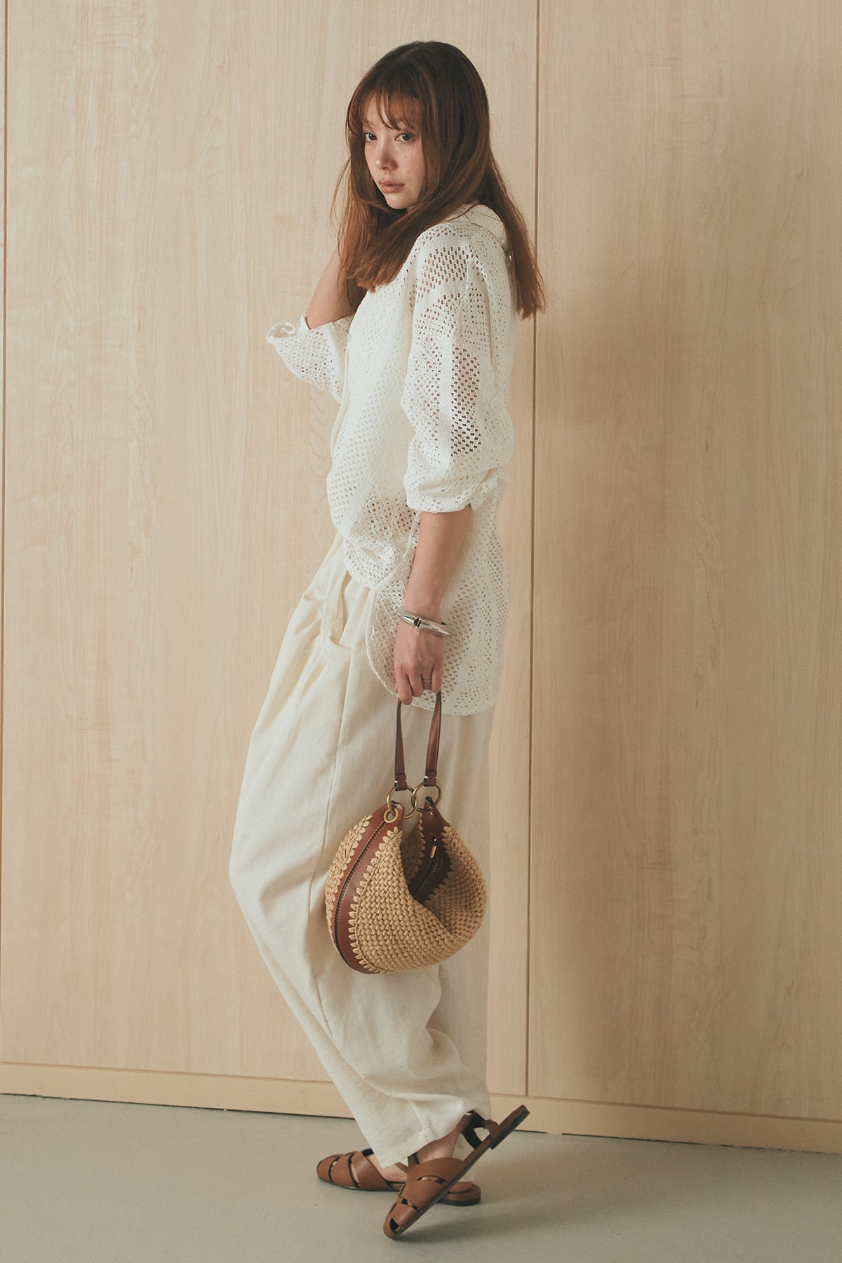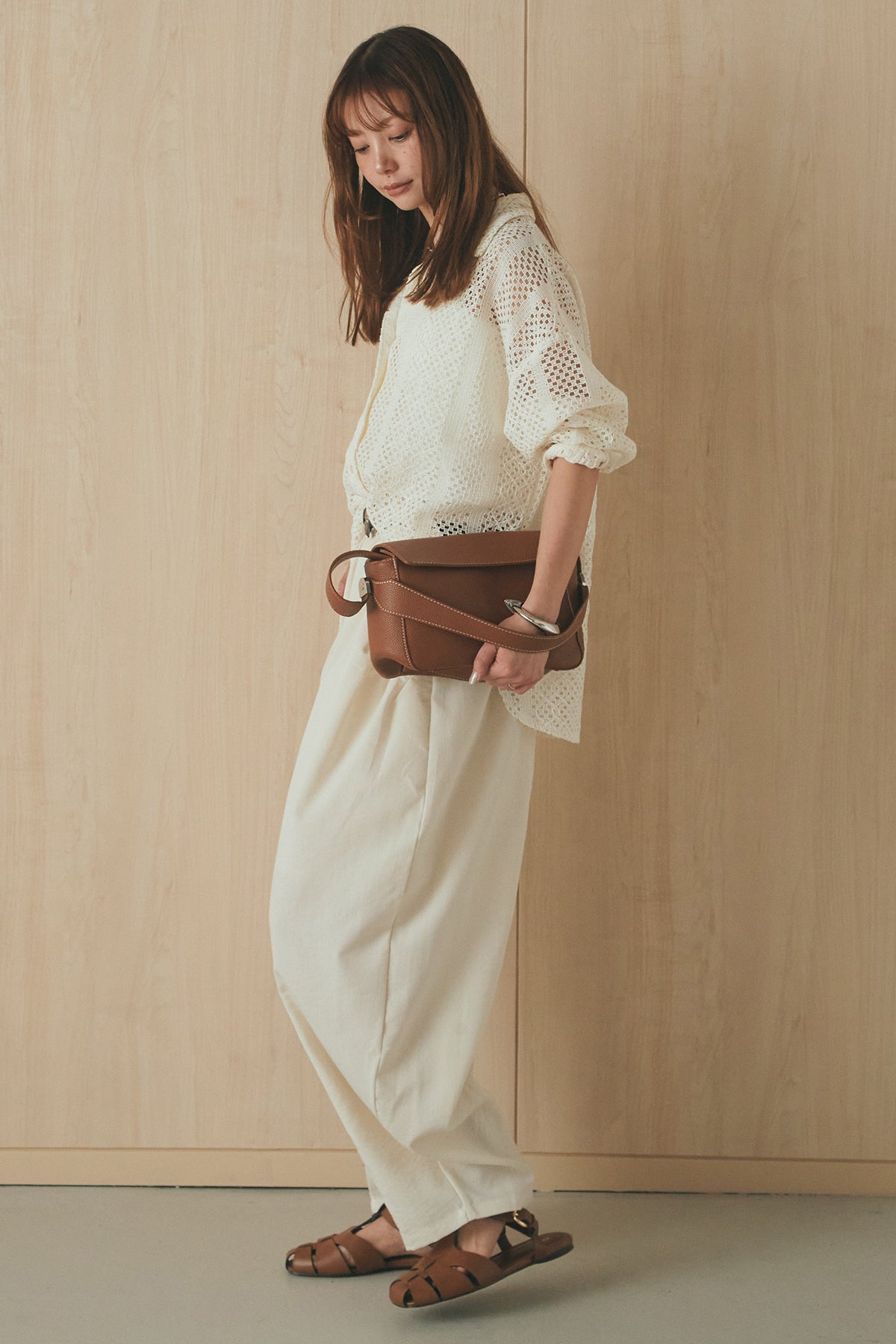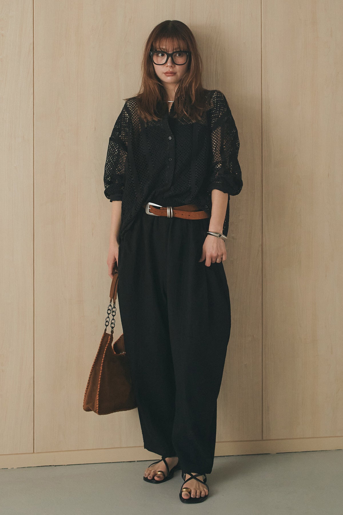 繊細なレースが印象的な長袖襟付きシャツ。 透け感のある軽やかな素材が抜け感を生み、スタイリングにさりげない華やかさをプラスします。ゆとりのあるシルエットでラフに着こなせながらも、襟付きデザインが全体をすっきりとまとめてくれる一枚。 前を閉じてトップスとしても、羽織りとしても活躍し、インナーとのレイヤードで幅広いスタイリングが楽しめるアイテムです。