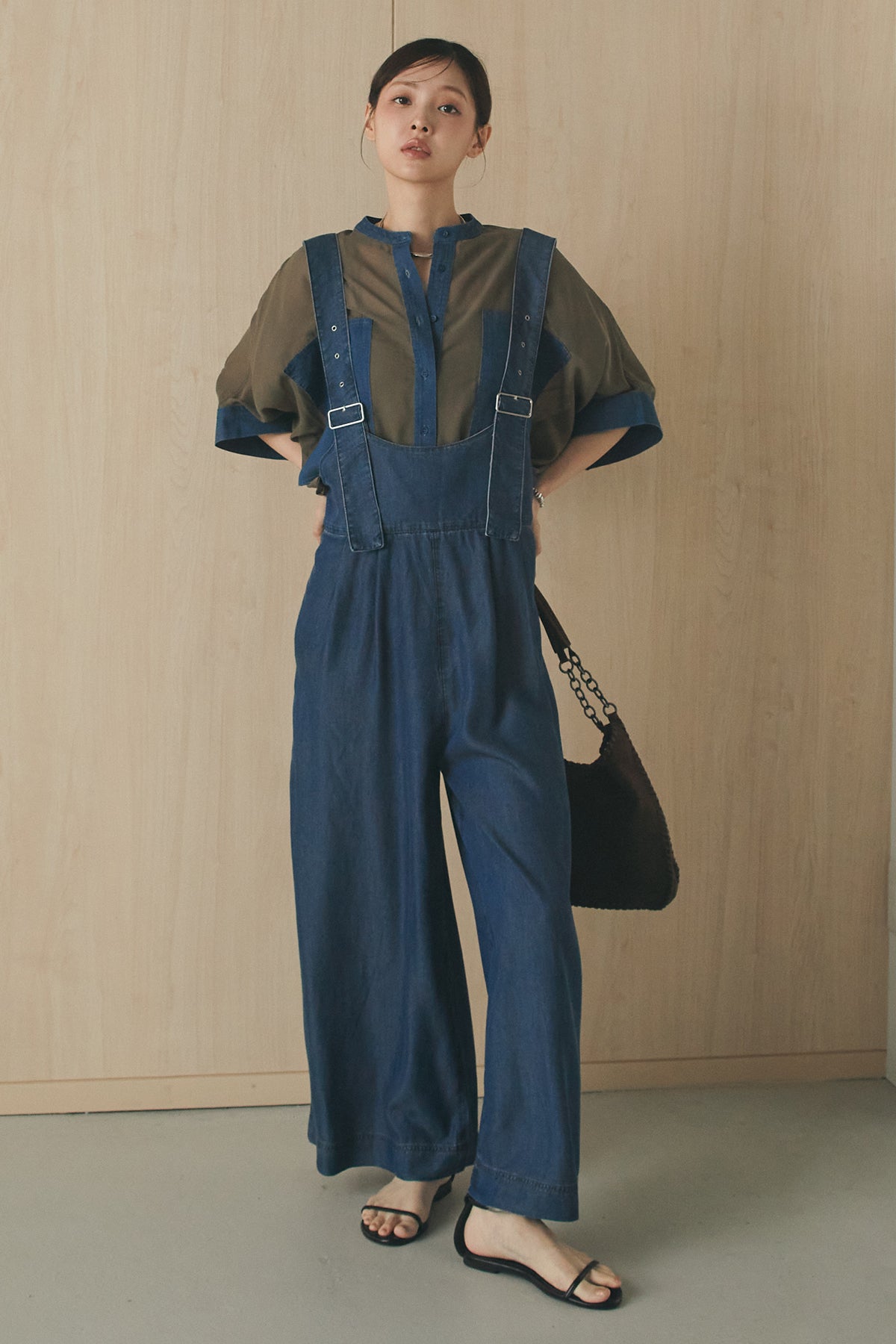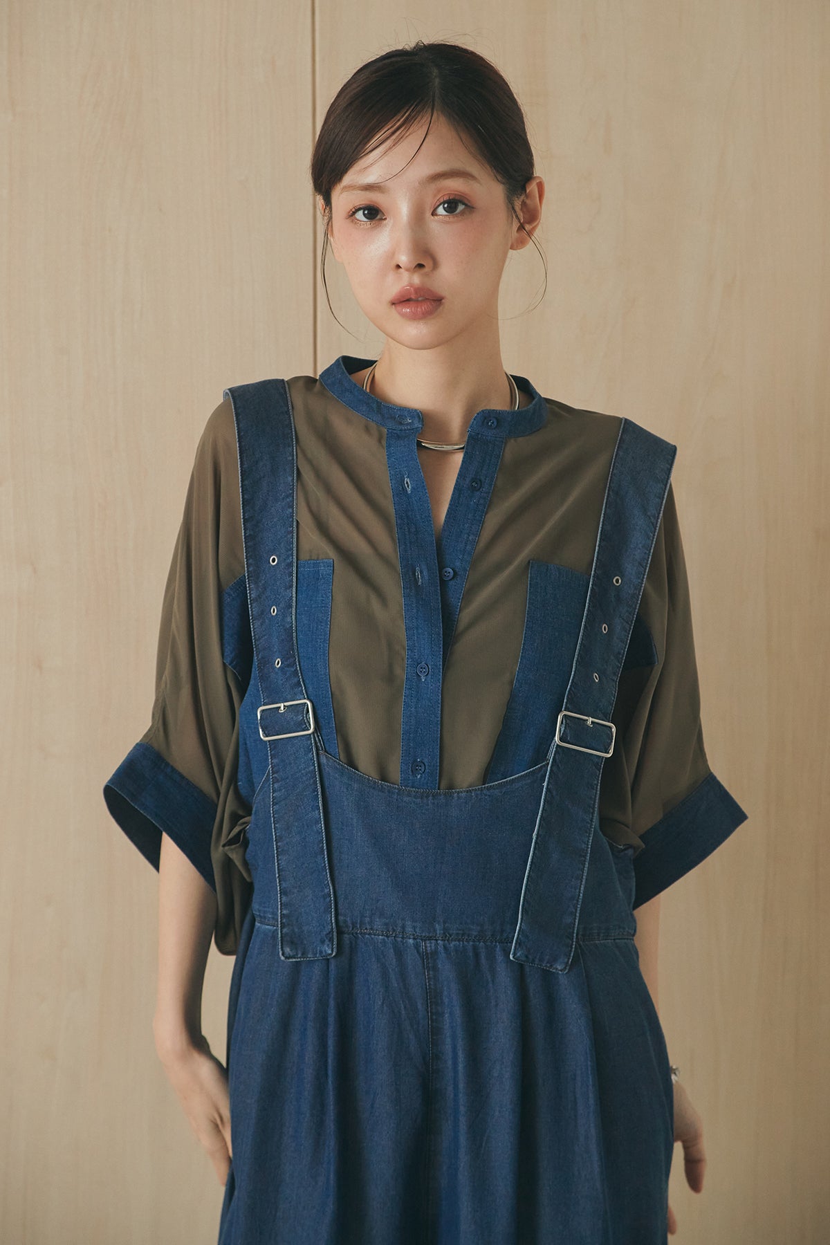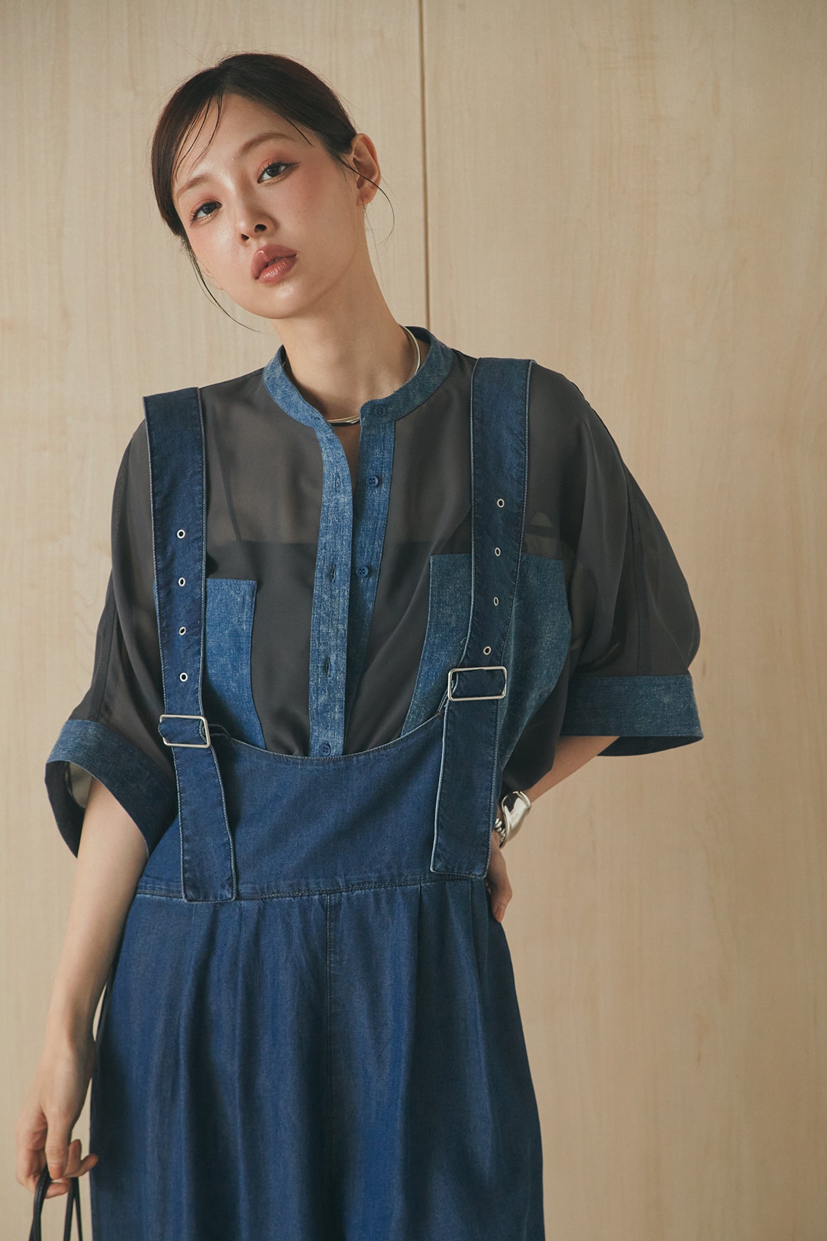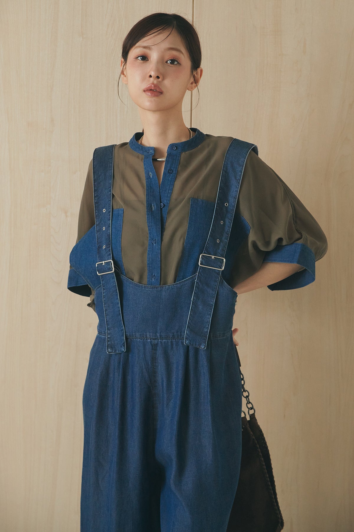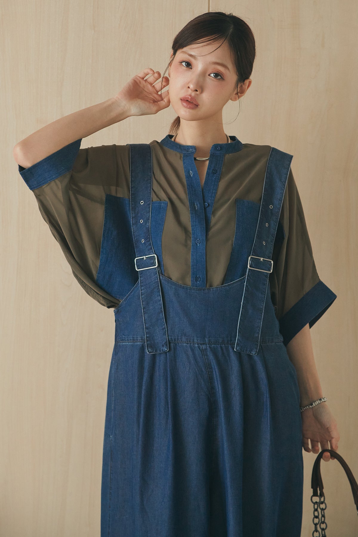 [SET]デニムライクビッグツーポケシアーシャツ+前後2WAYテンセルデニムサロペット(2set)