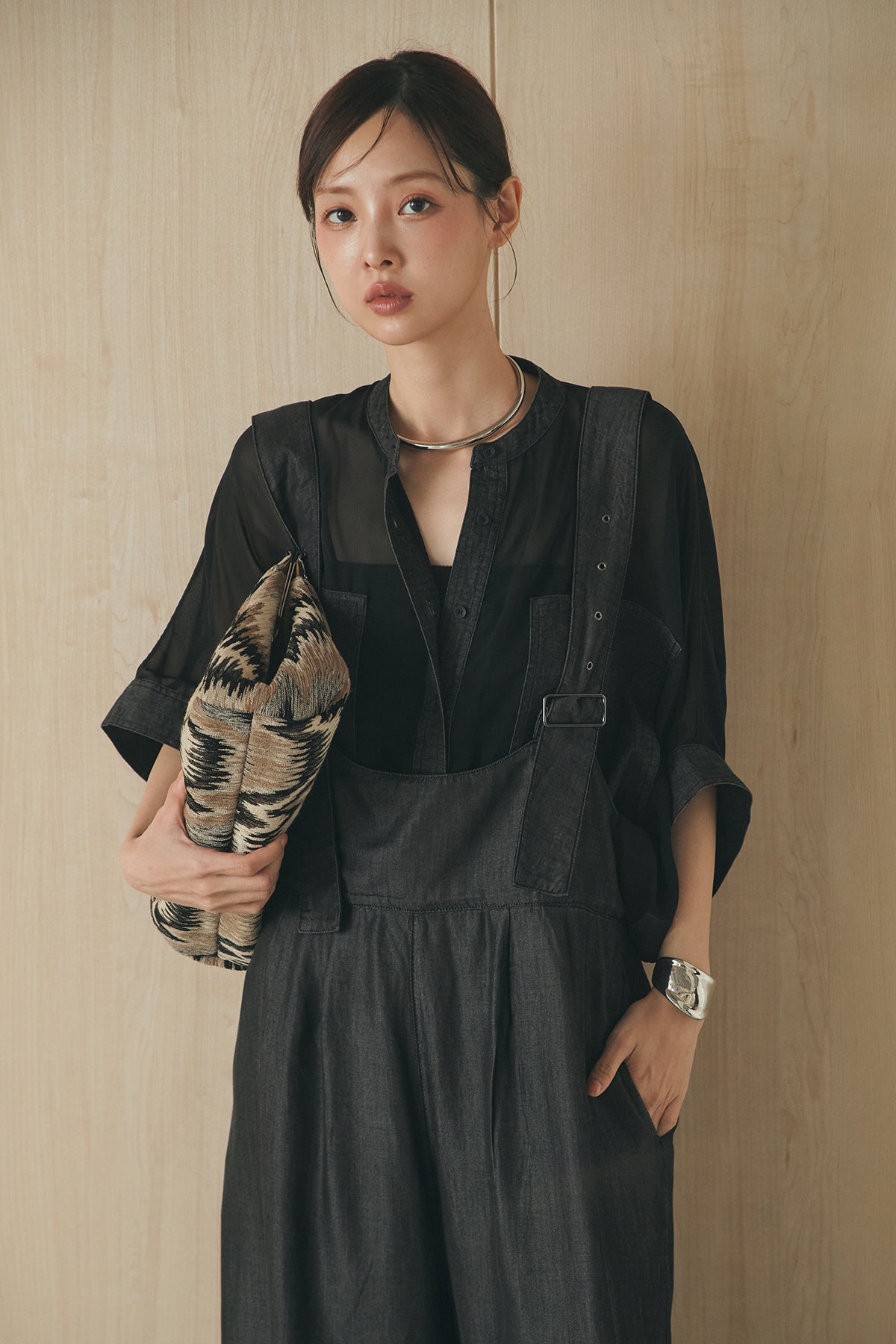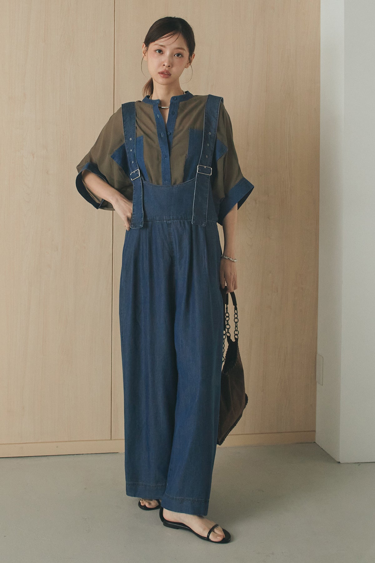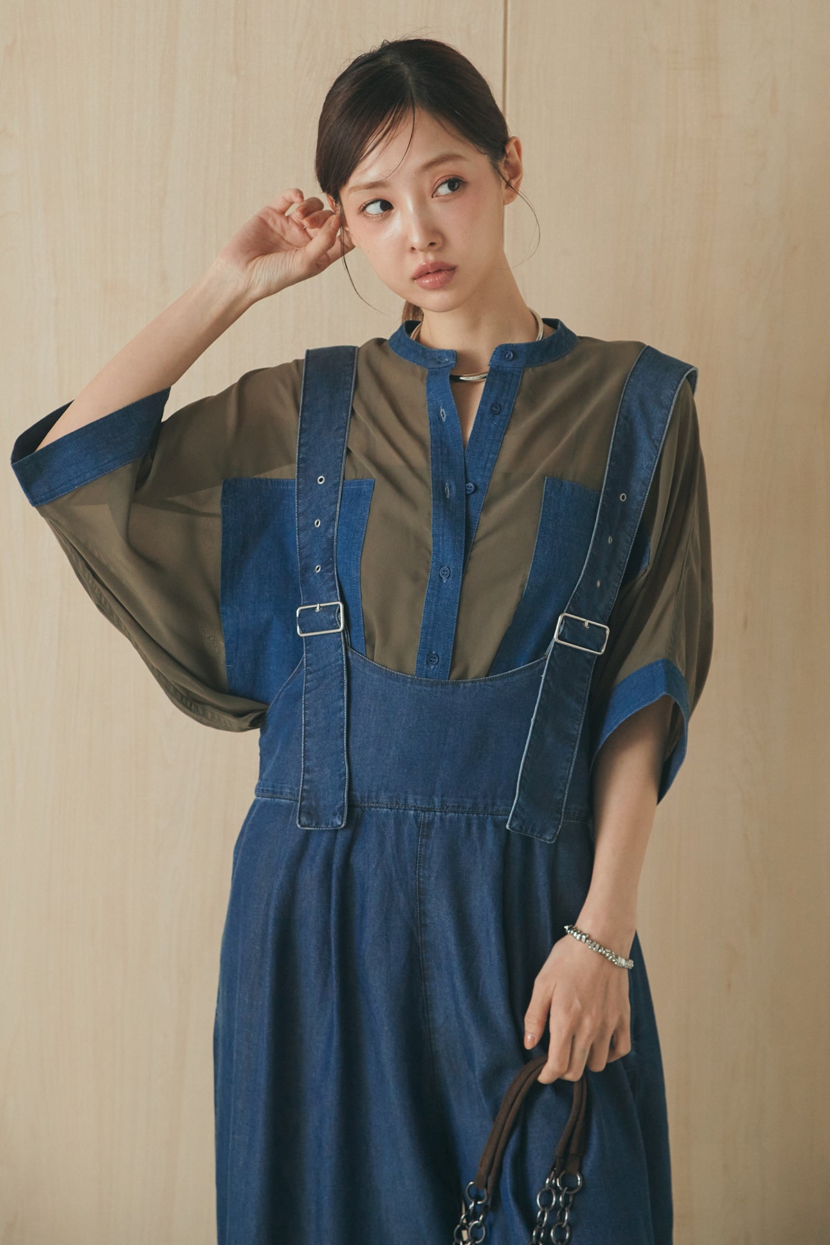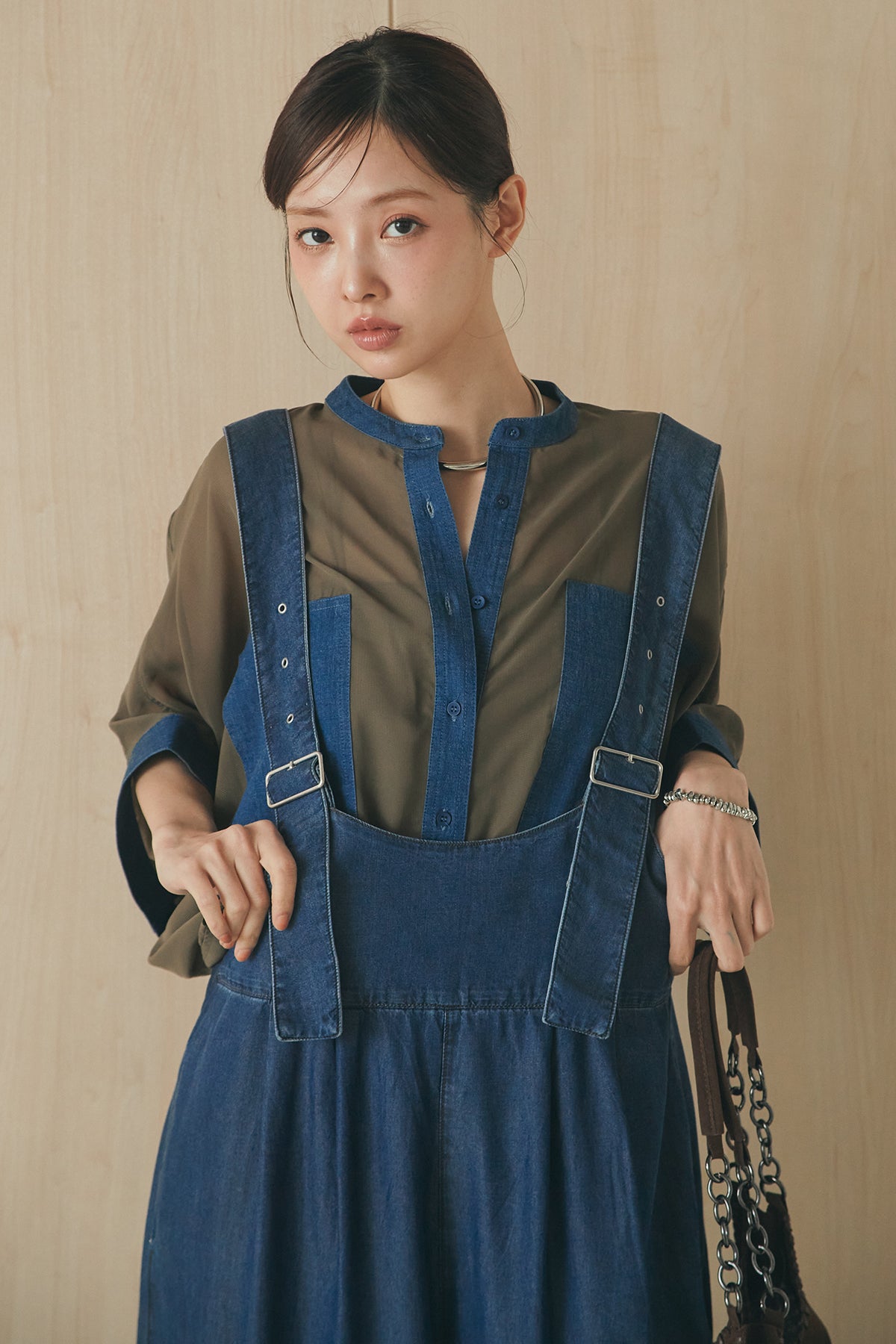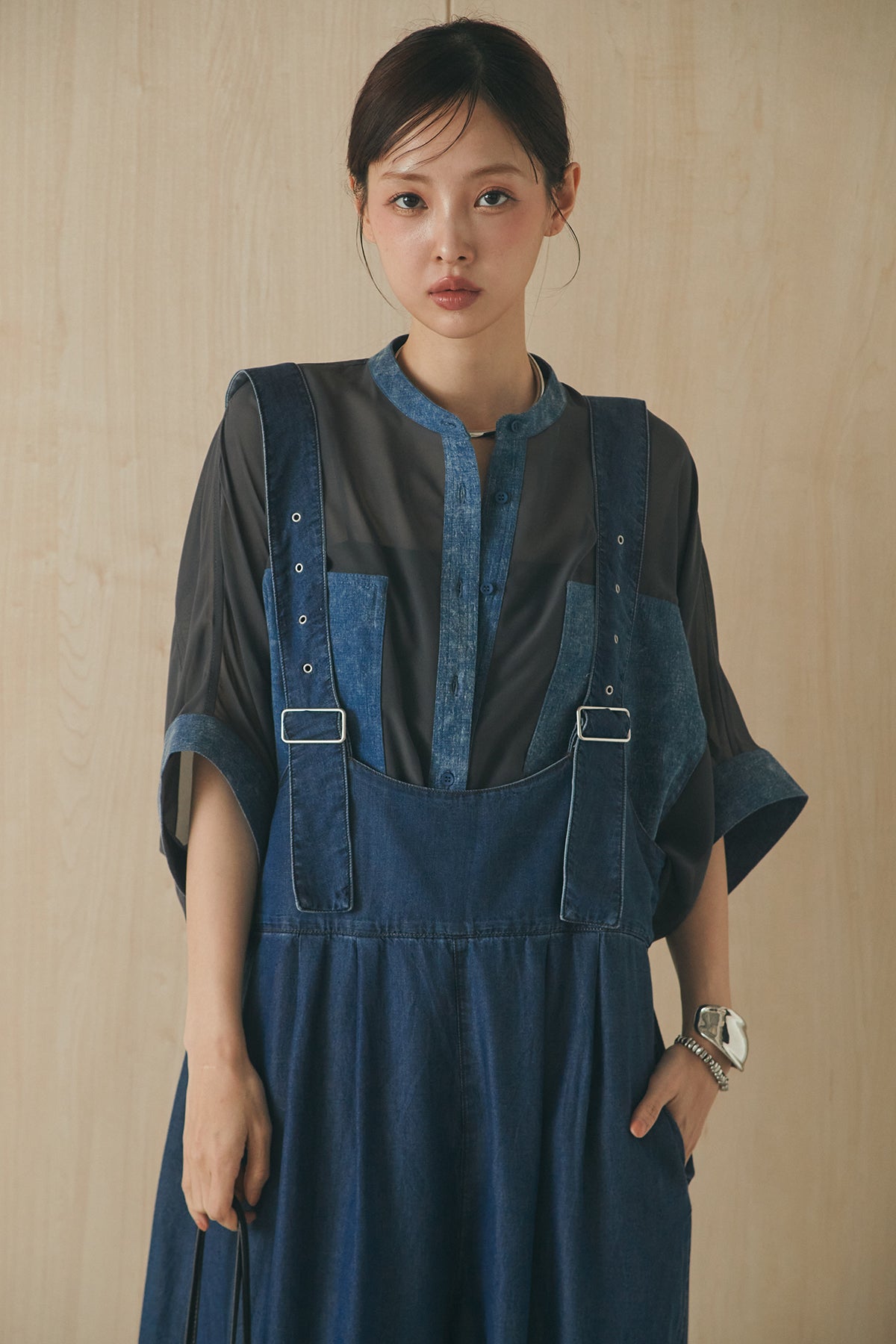 [SET]デニムライクビッグツーポケシアーシャツ+前後2WAYテンセルデニムサロペット(2set)