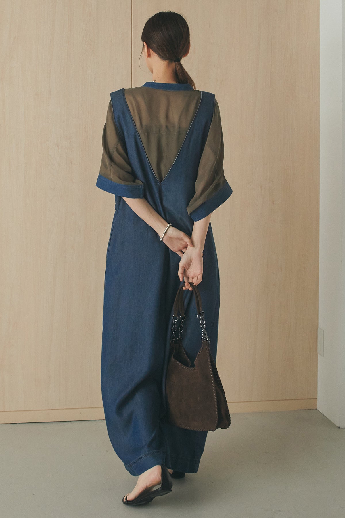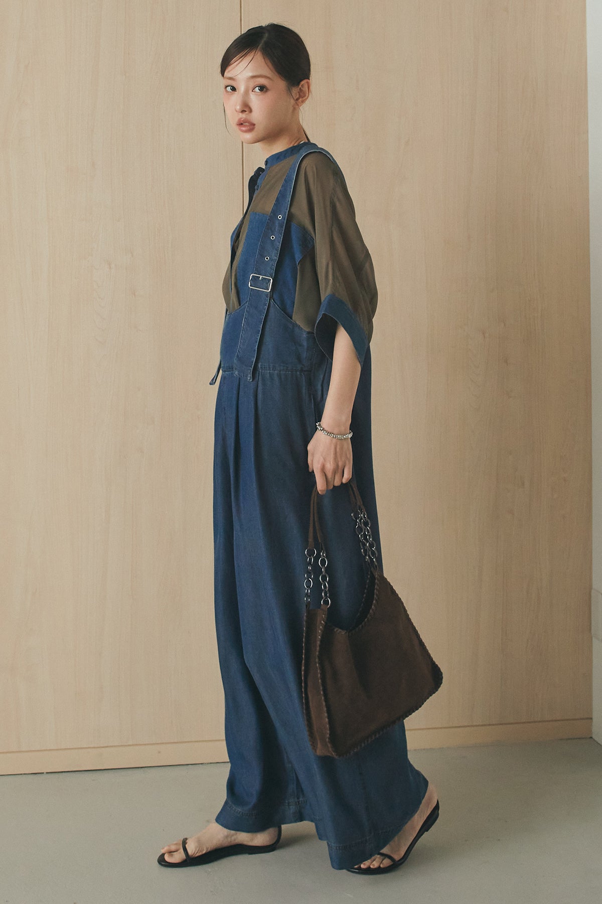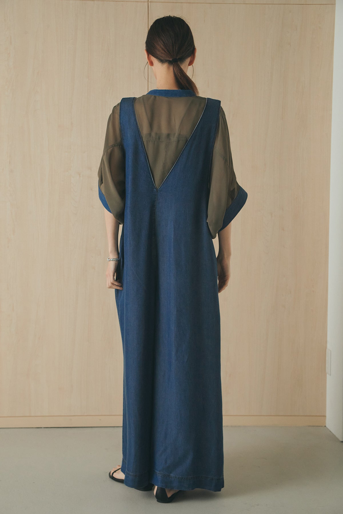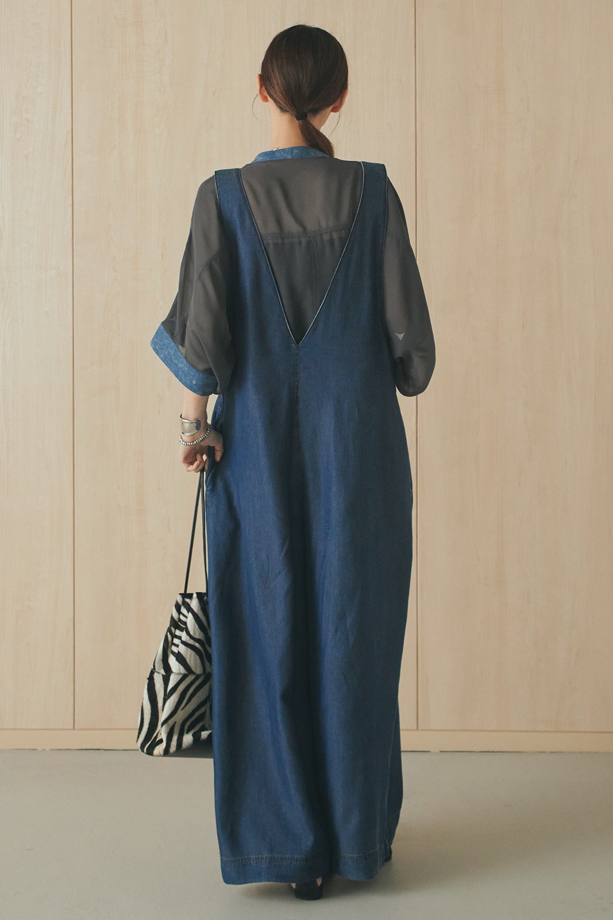 前後2WAYで着こなしを楽しめるテンセルデニムサロペット。 やわらかな落ち感のある素材が軽やかな印象を与え、ゆとりのあるシルエットでリラックスした着心地に仕上げました。フロントとバックで異なる表情を楽しめるデザインで、スタイリングの幅が広がる一枚。 インナー次第で印象を変えられ、デイリーに取り入れやすいアイテムです。