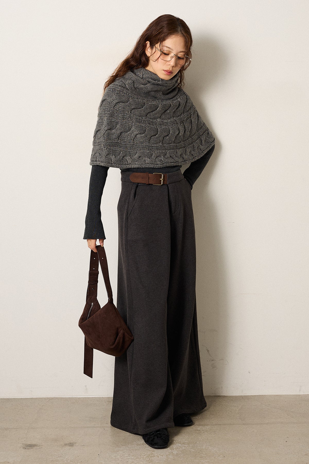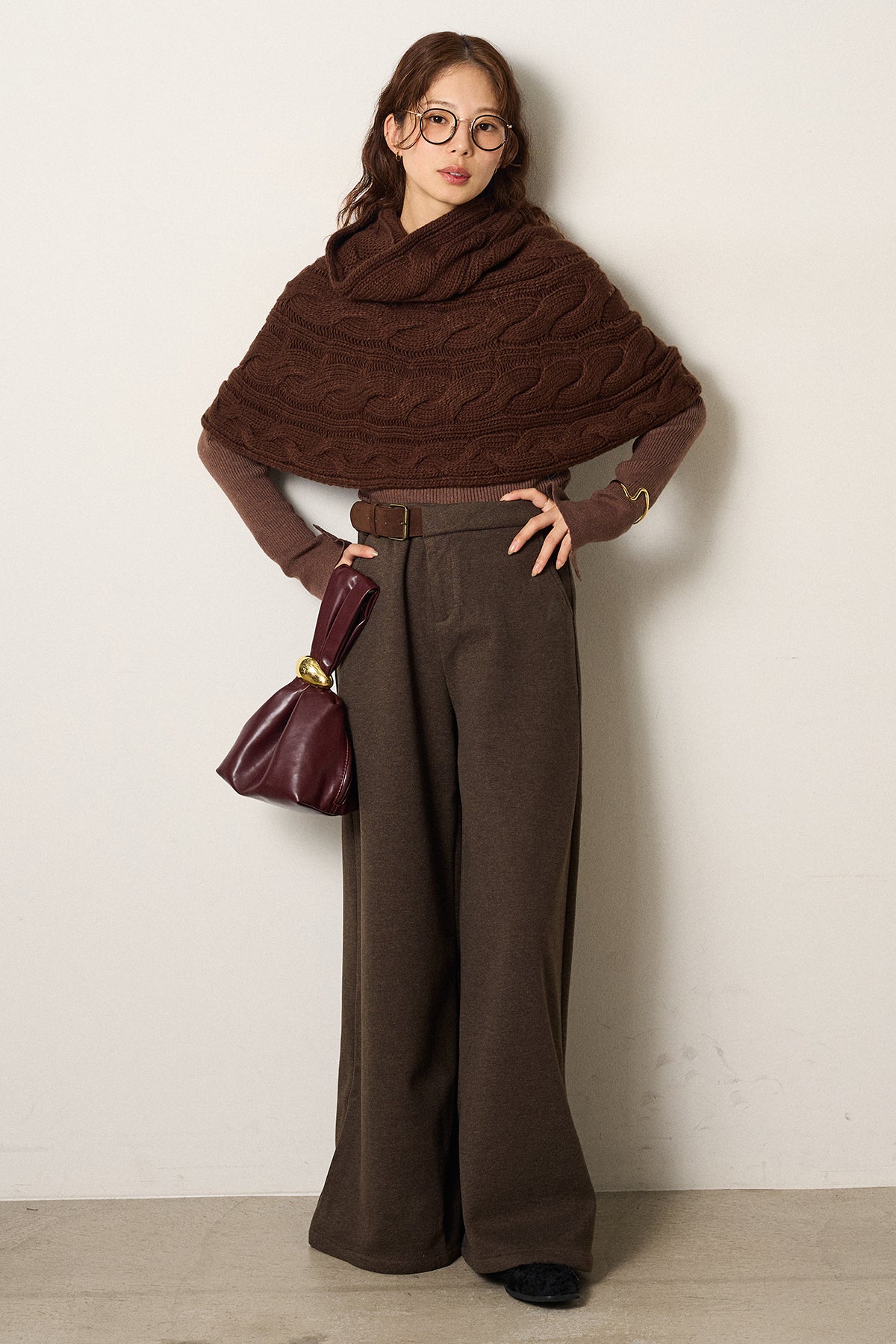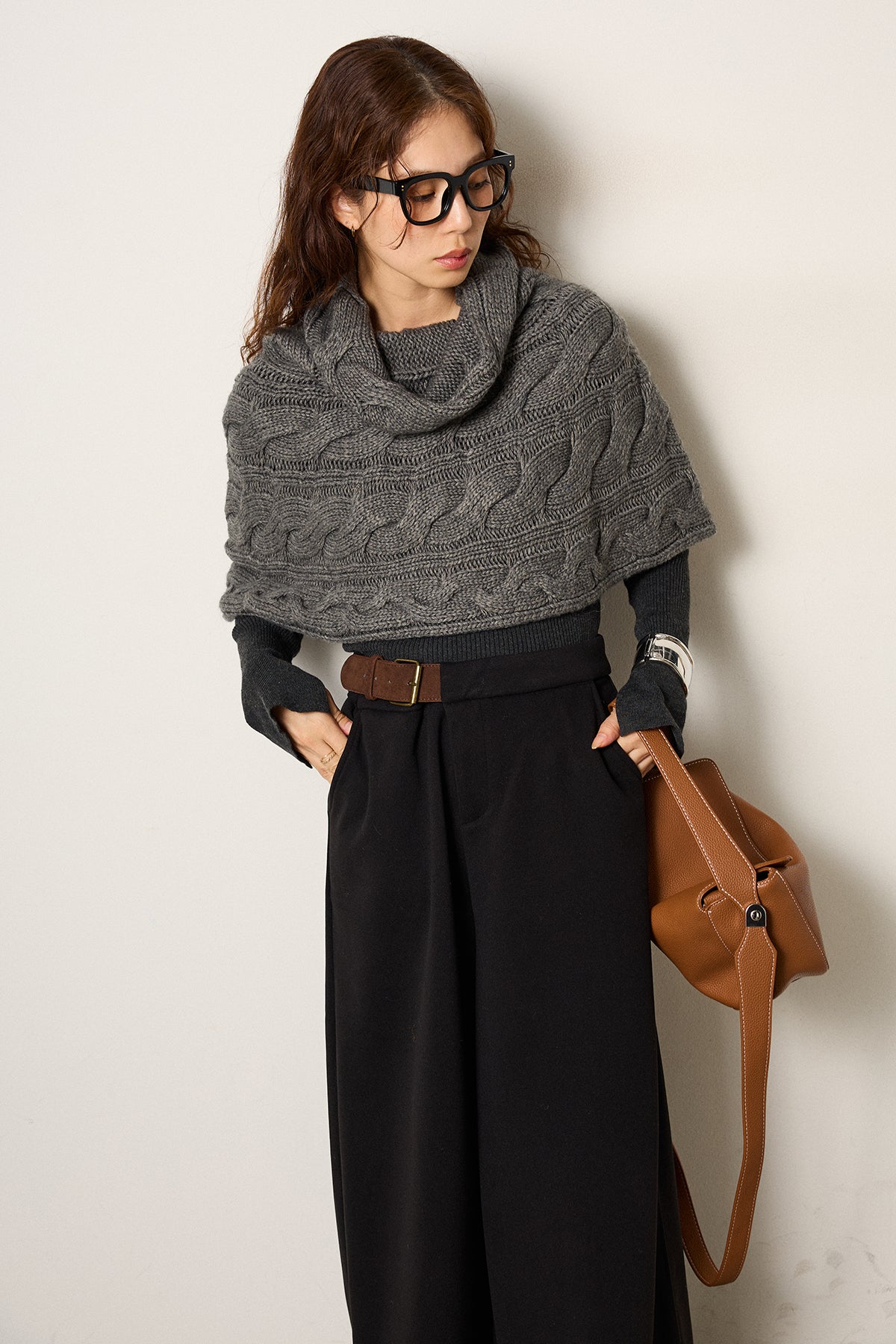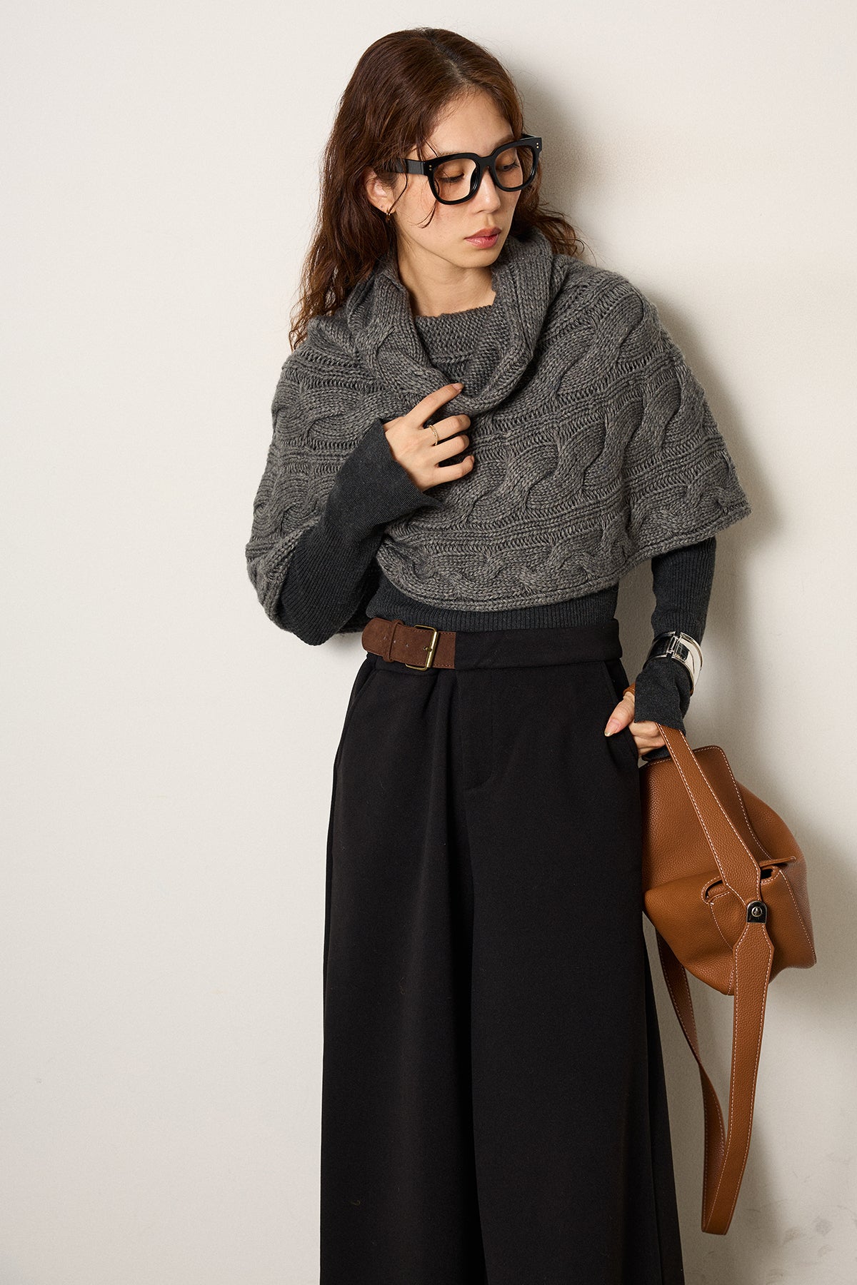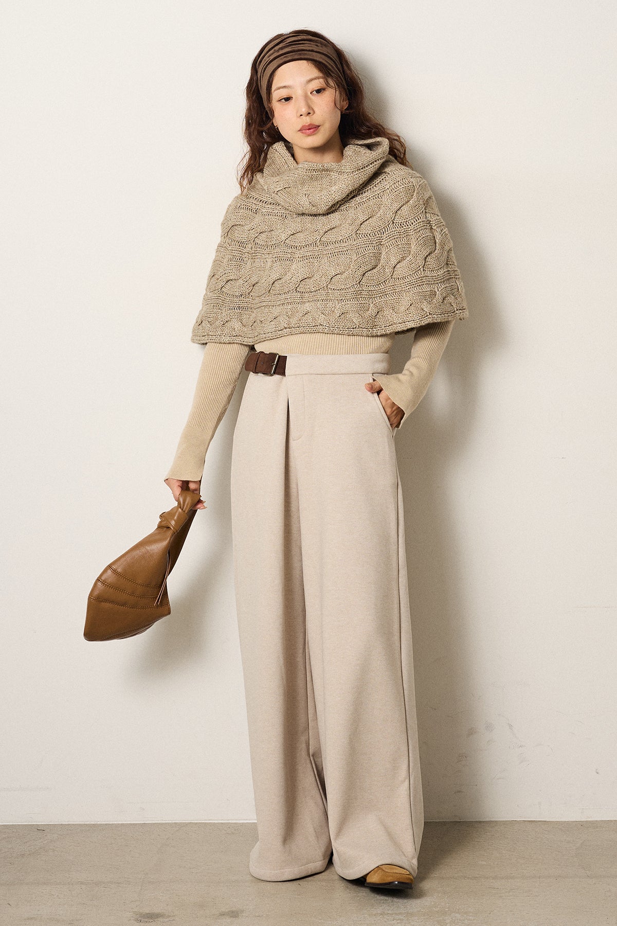 [SET]ケーブル編みケープレイヤードニット+サイドベルトパンツ(2set)