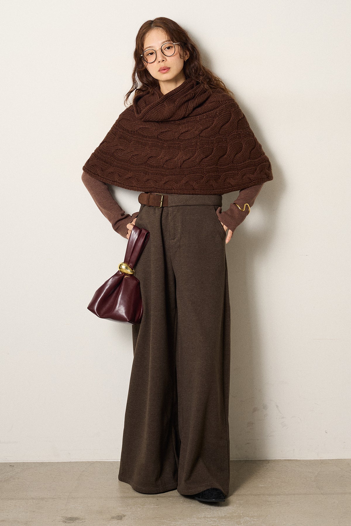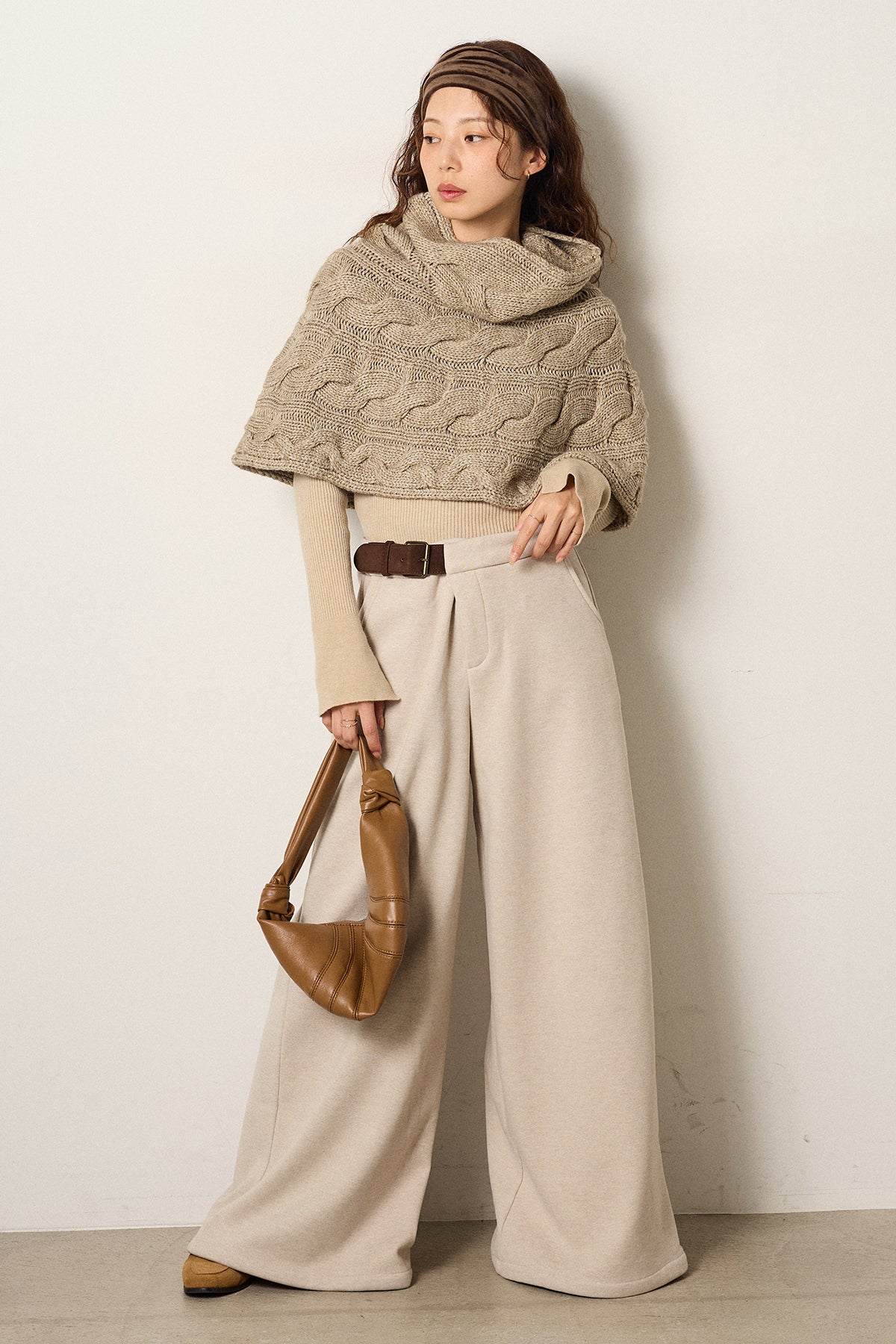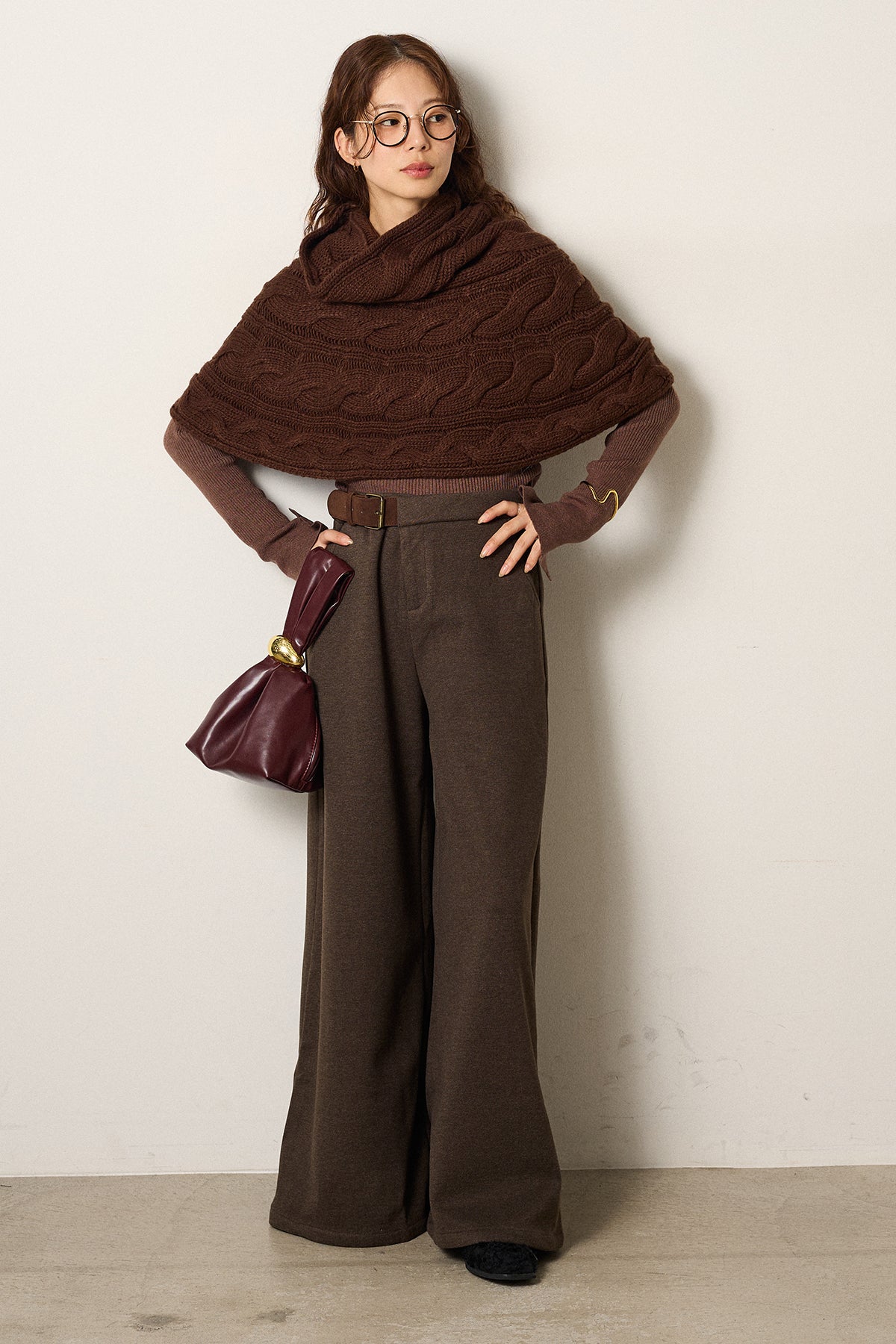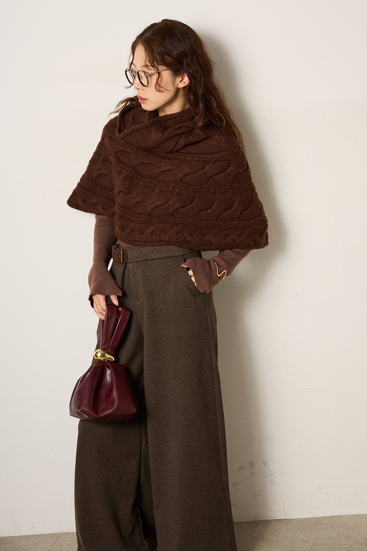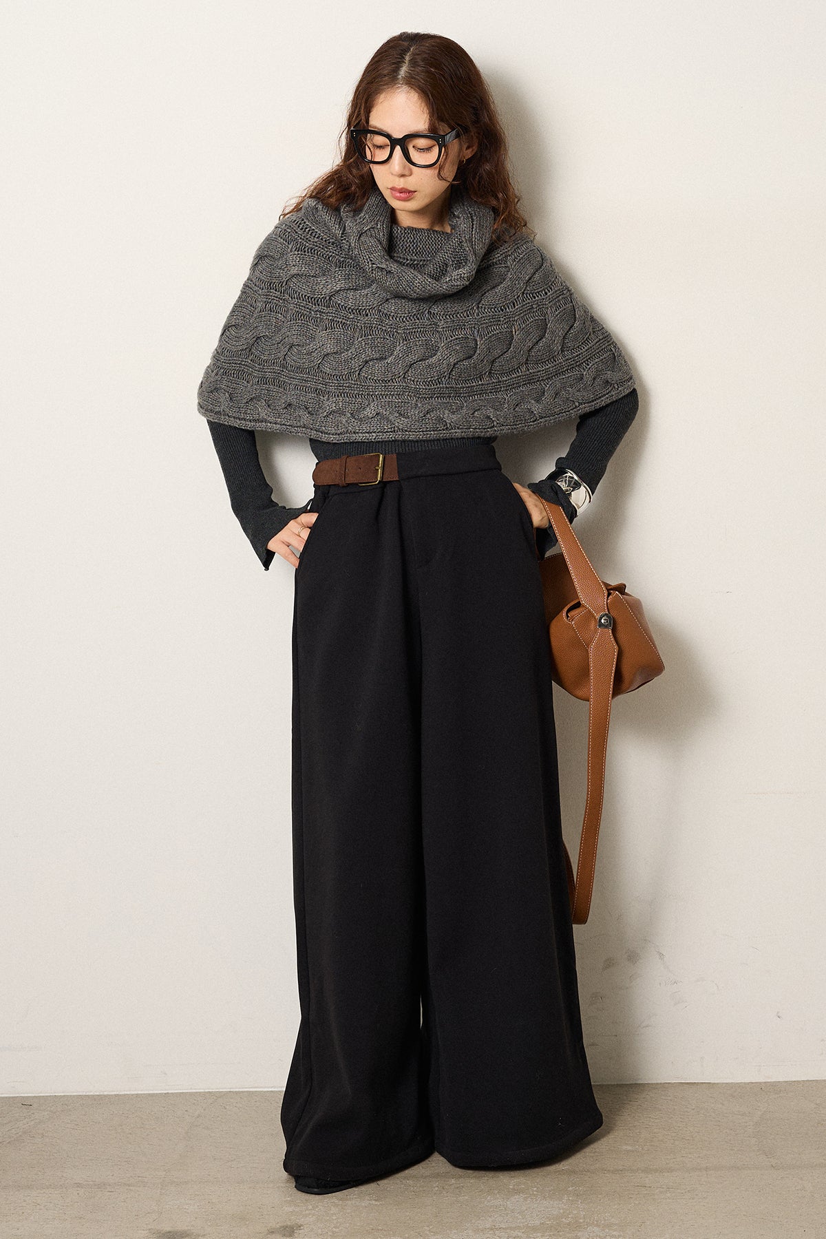 [SET]ケーブル編みケープレイヤードニット+サイドベルトパンツ(2set)