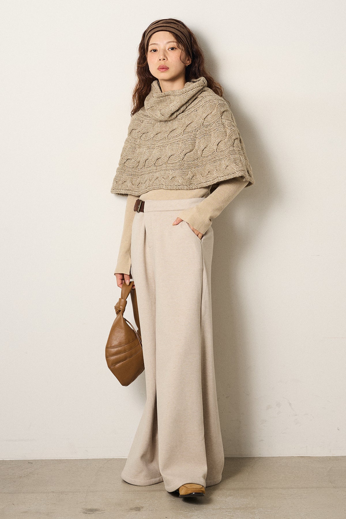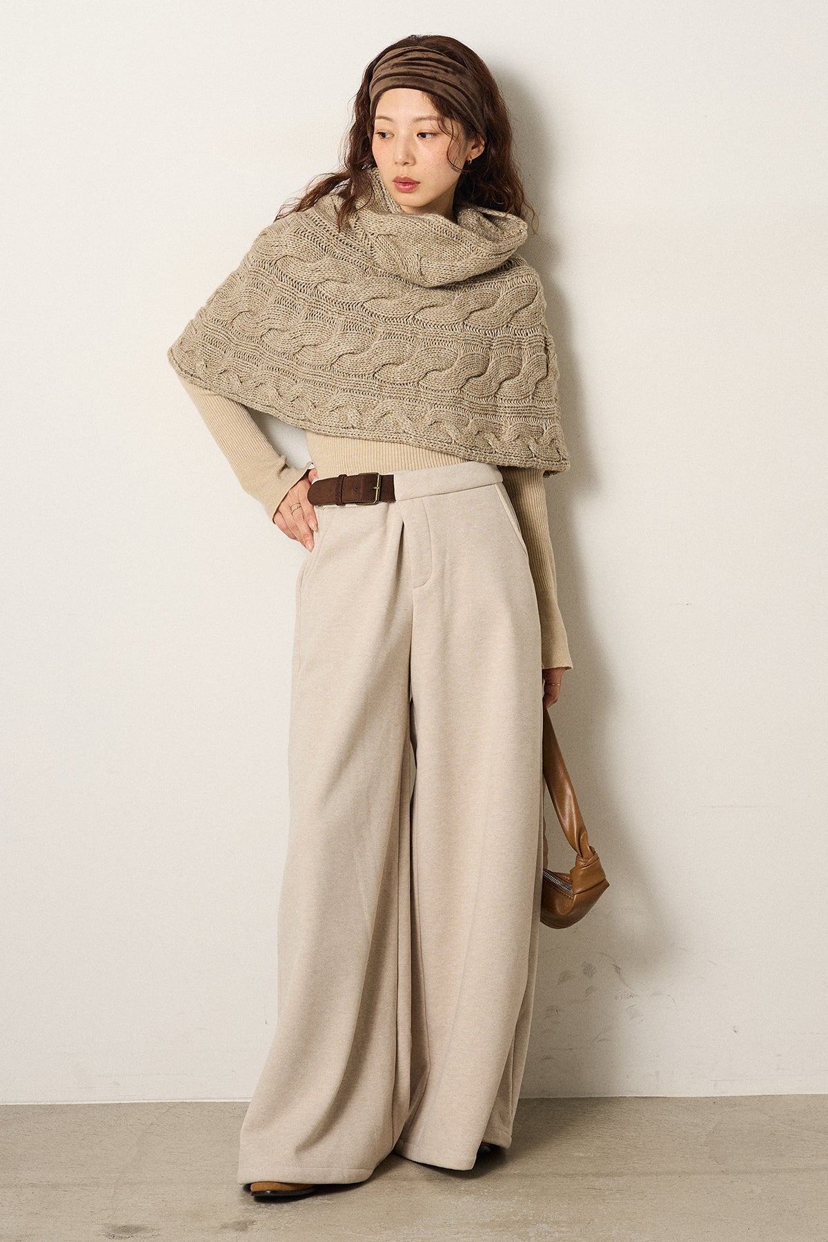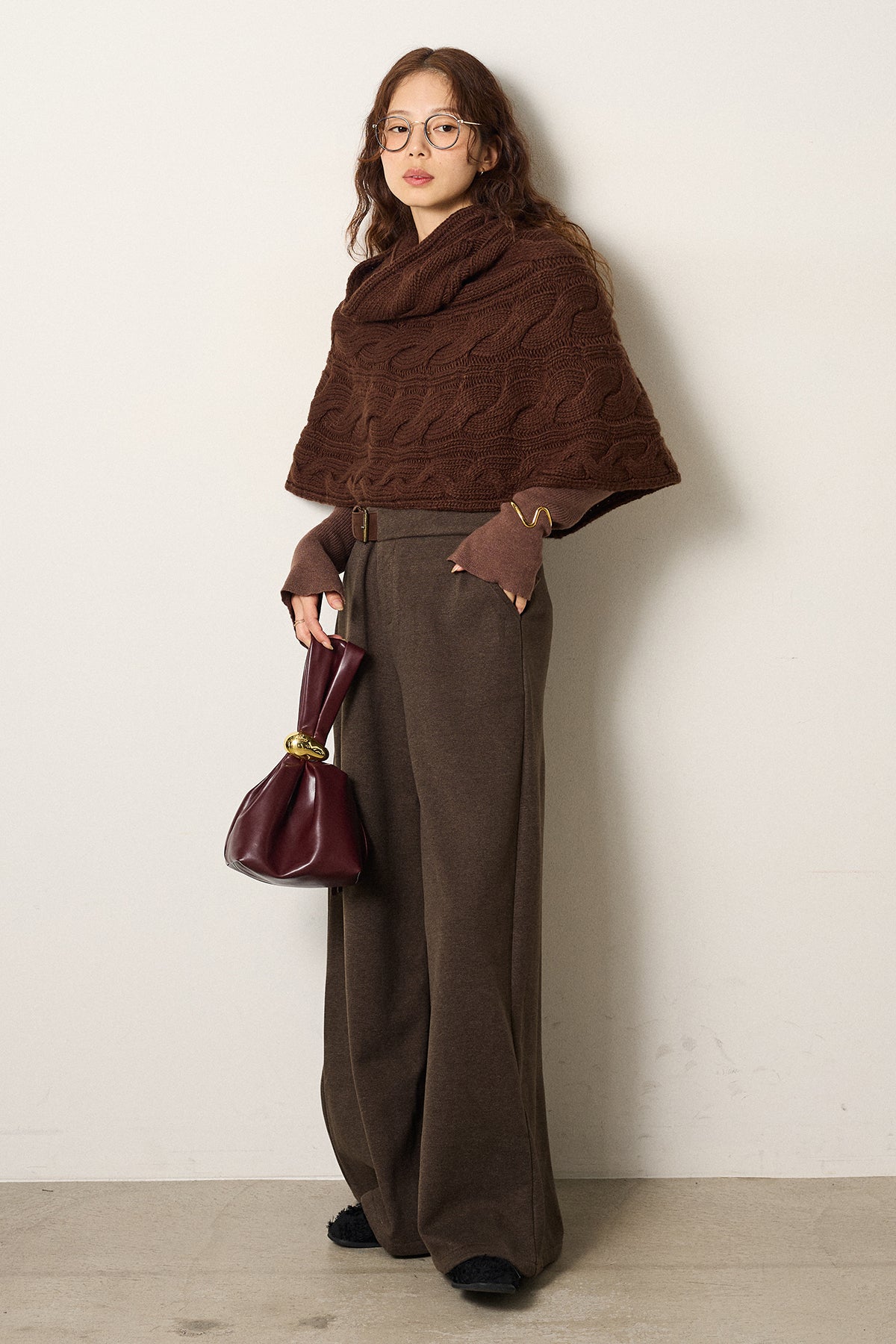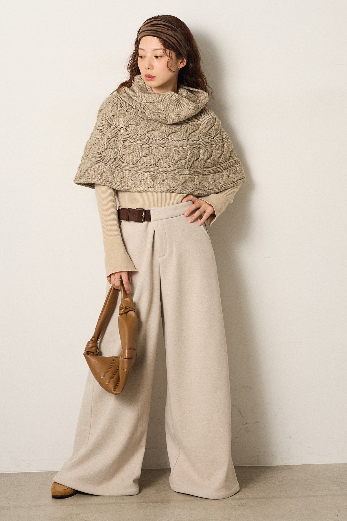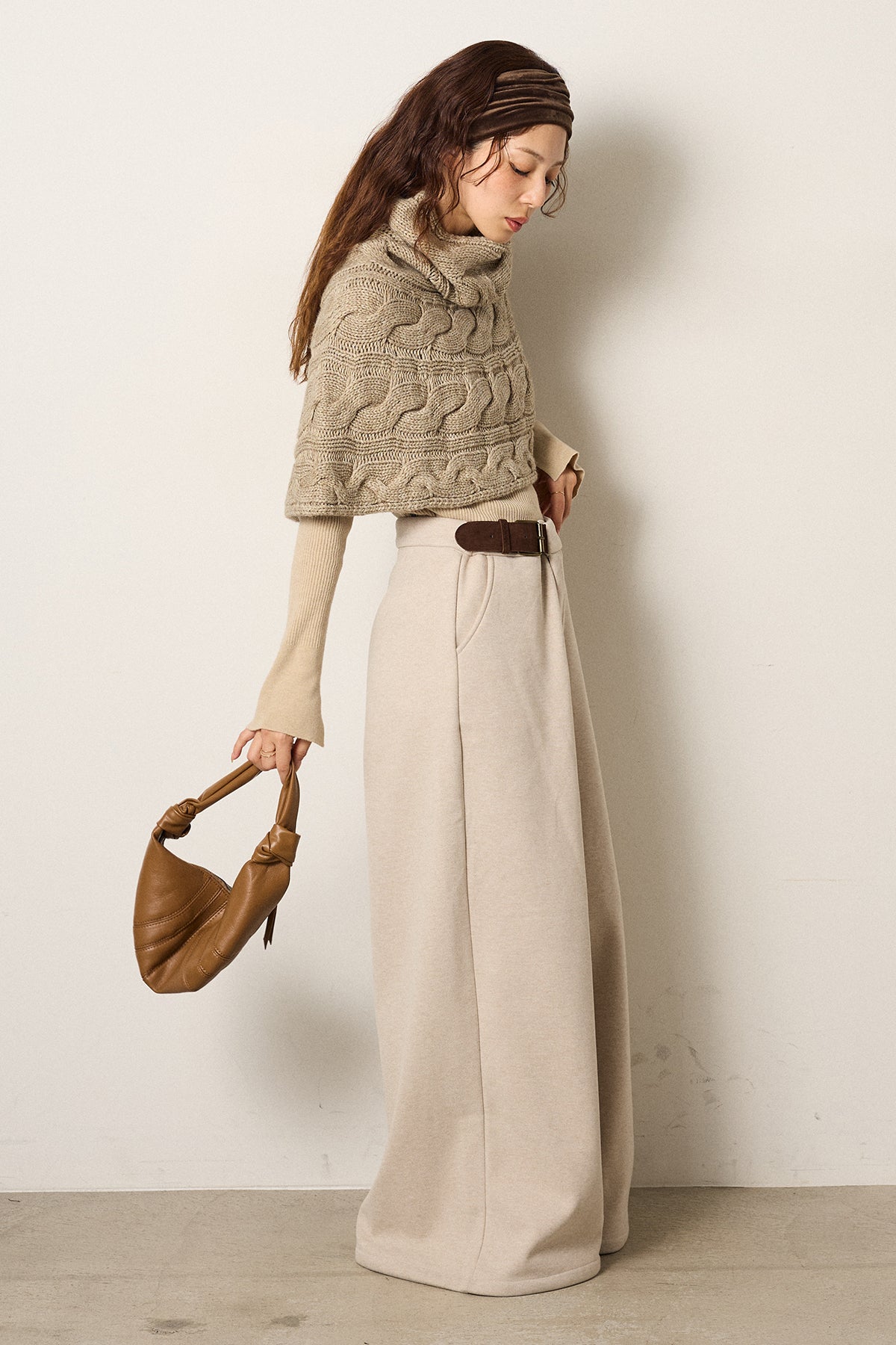 [SET]ケーブル編みケープレイヤードニット+サイドベルトパンツ(2set)