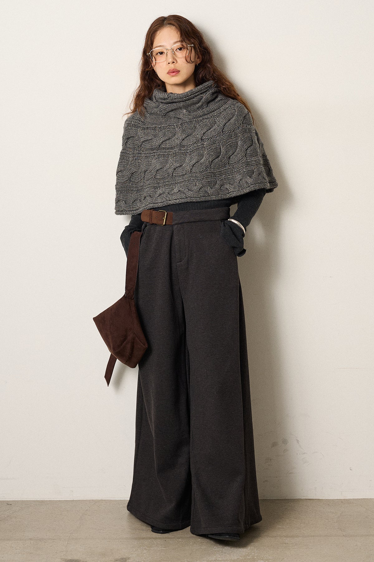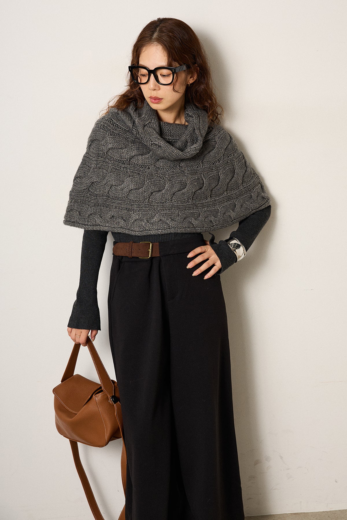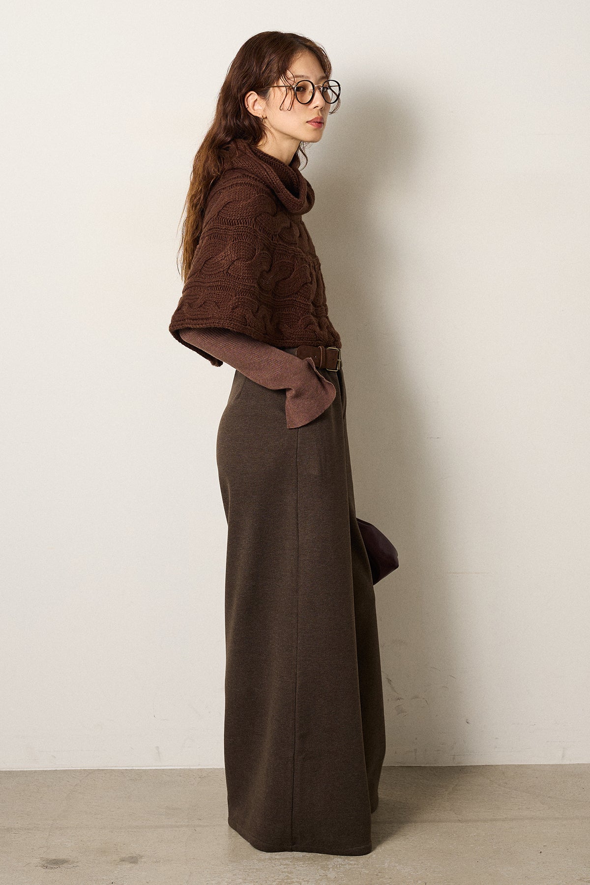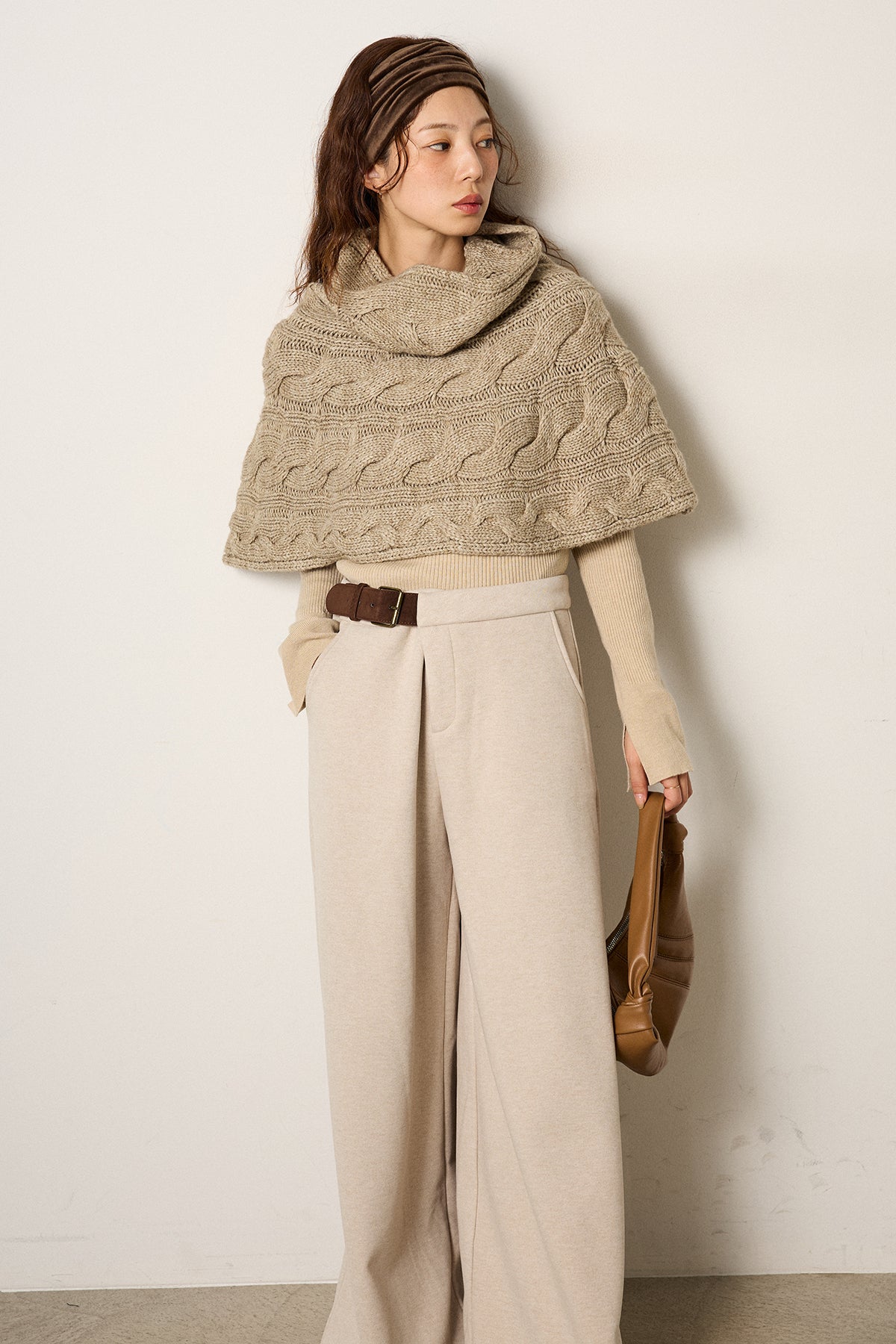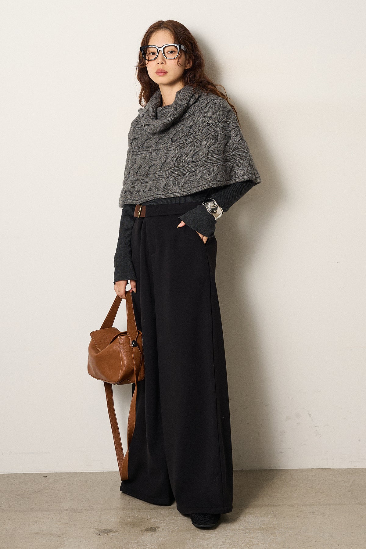 [SET]ケーブル編みケープレイヤードニット+サイドベルトパンツ(2set)