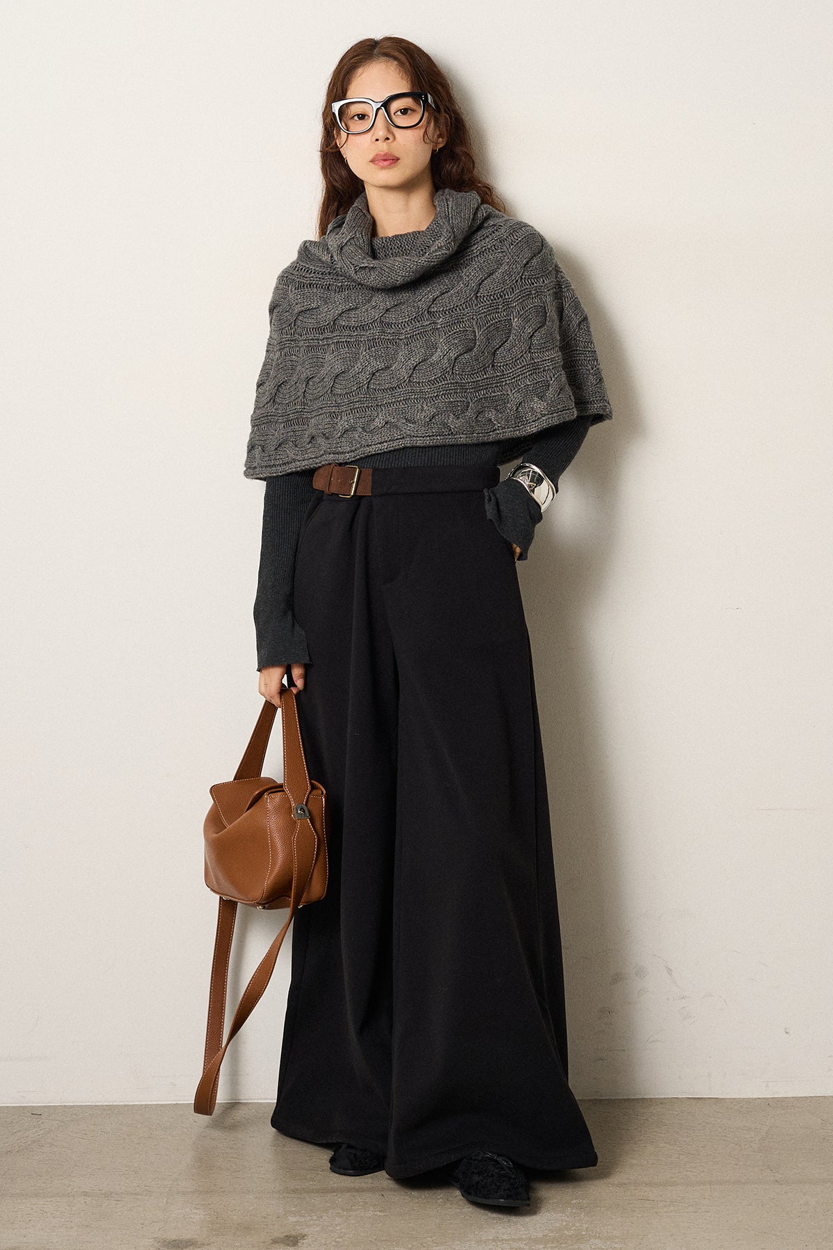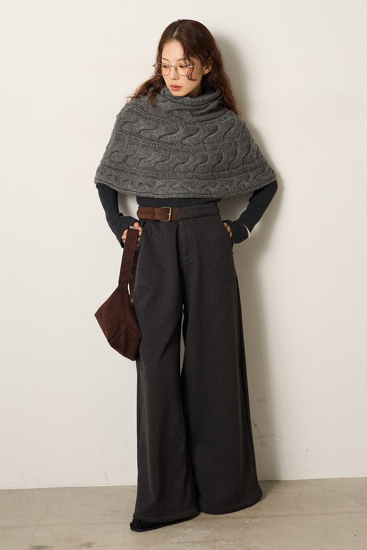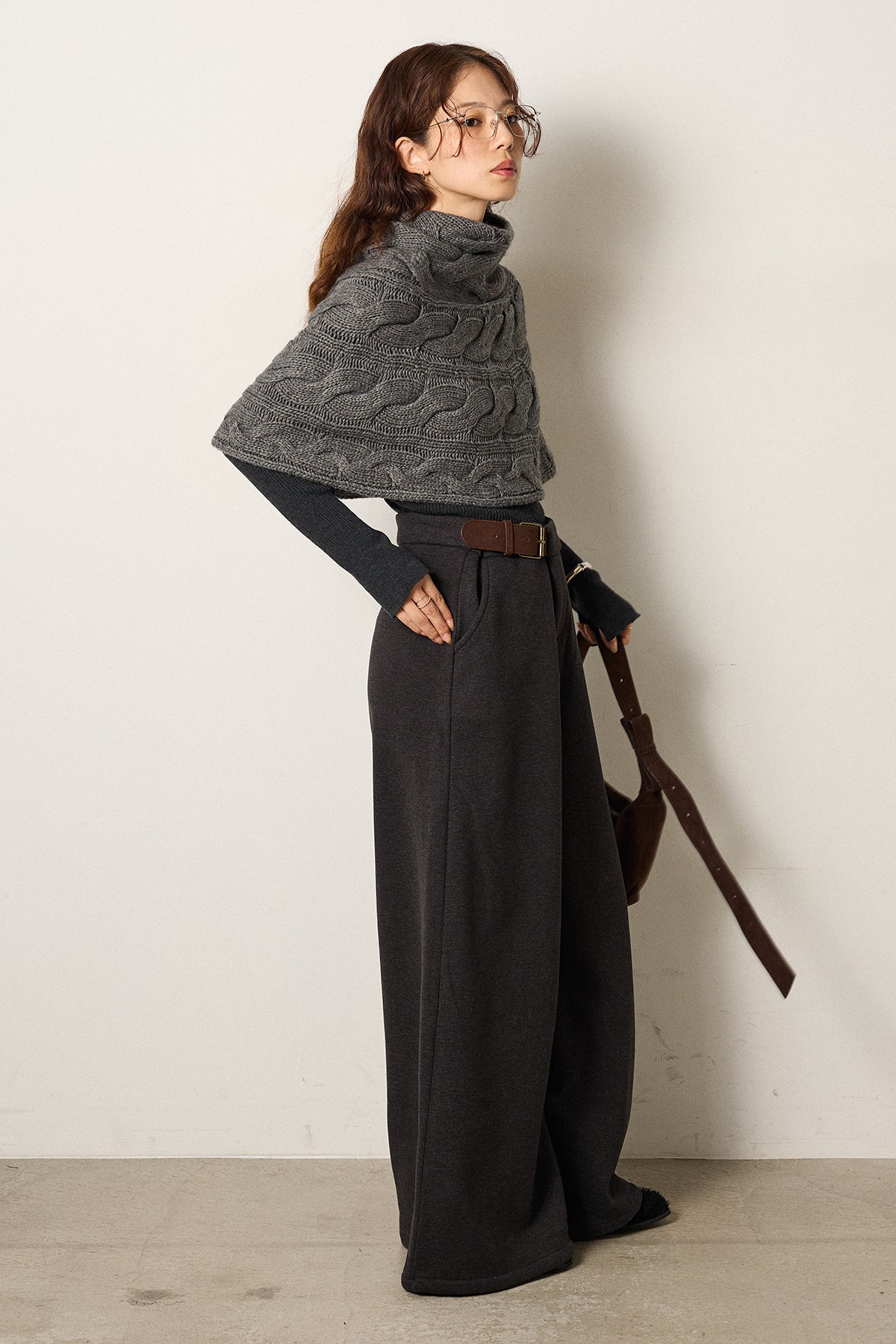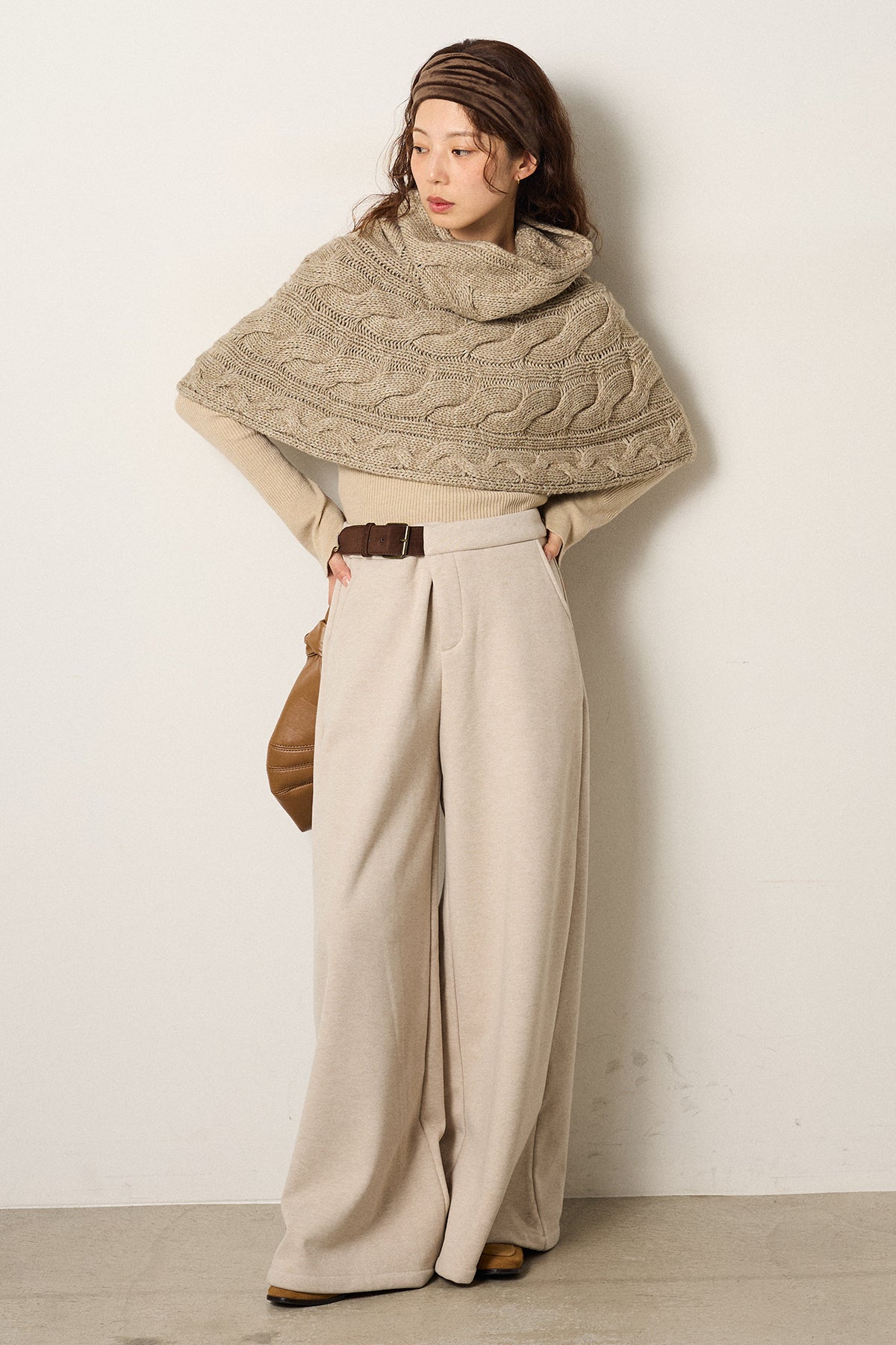 [SET]ケーブル編みケープレイヤードニット+サイドベルトパンツ(2set)