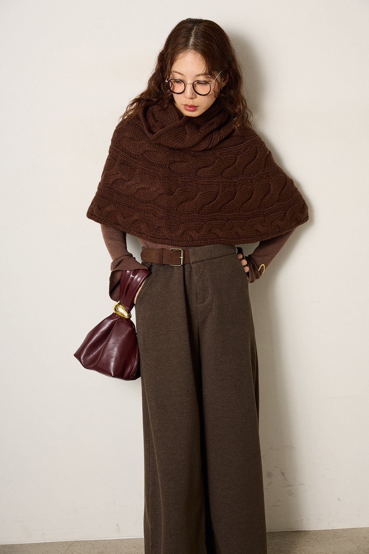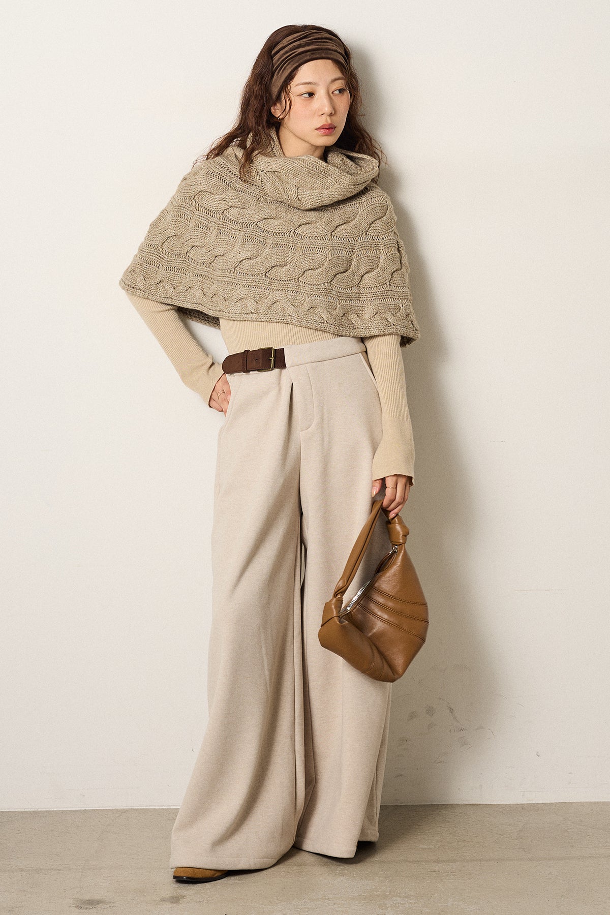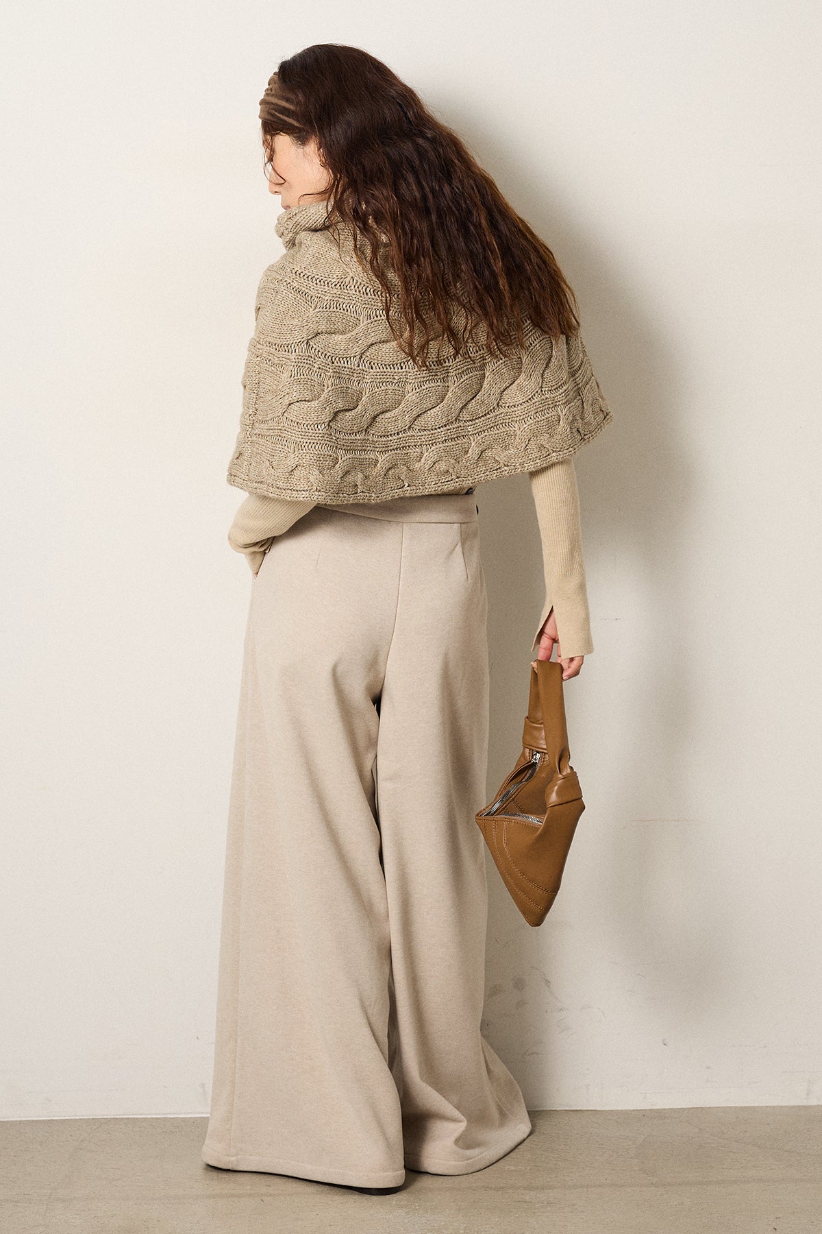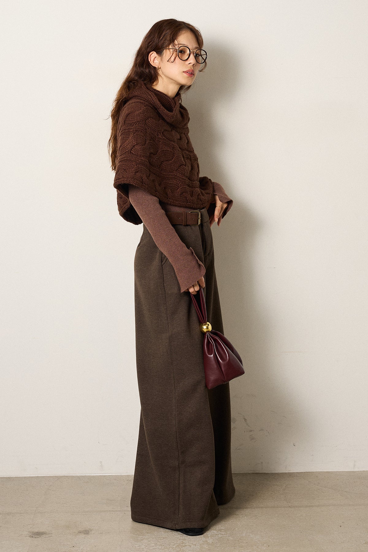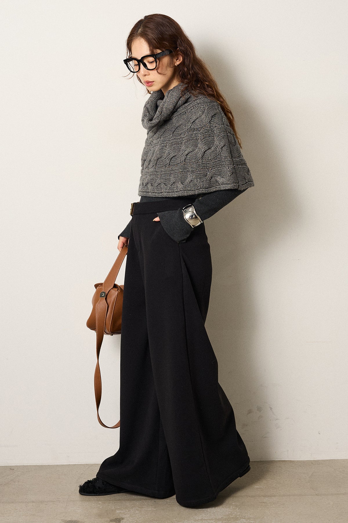[SET]ケーブル編みケープレイヤードニット+サイドベルトパンツ(2set)