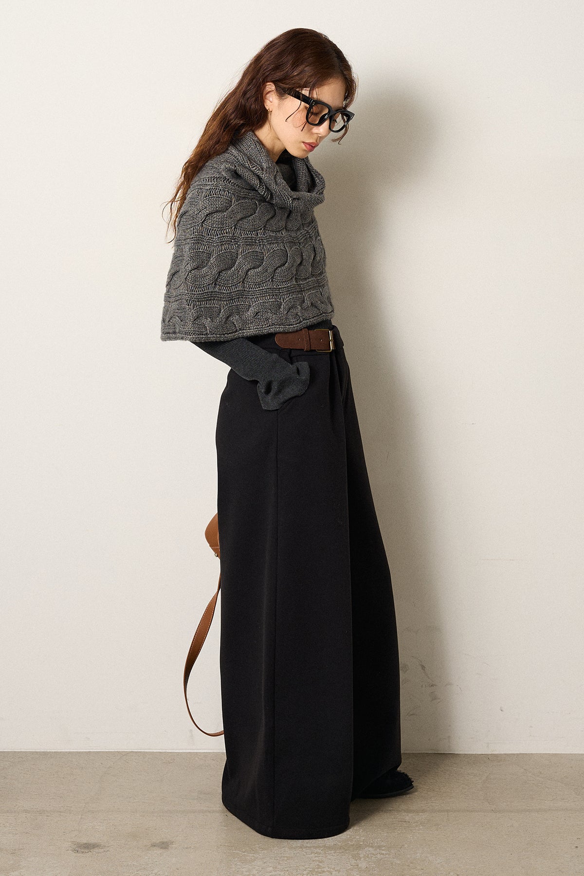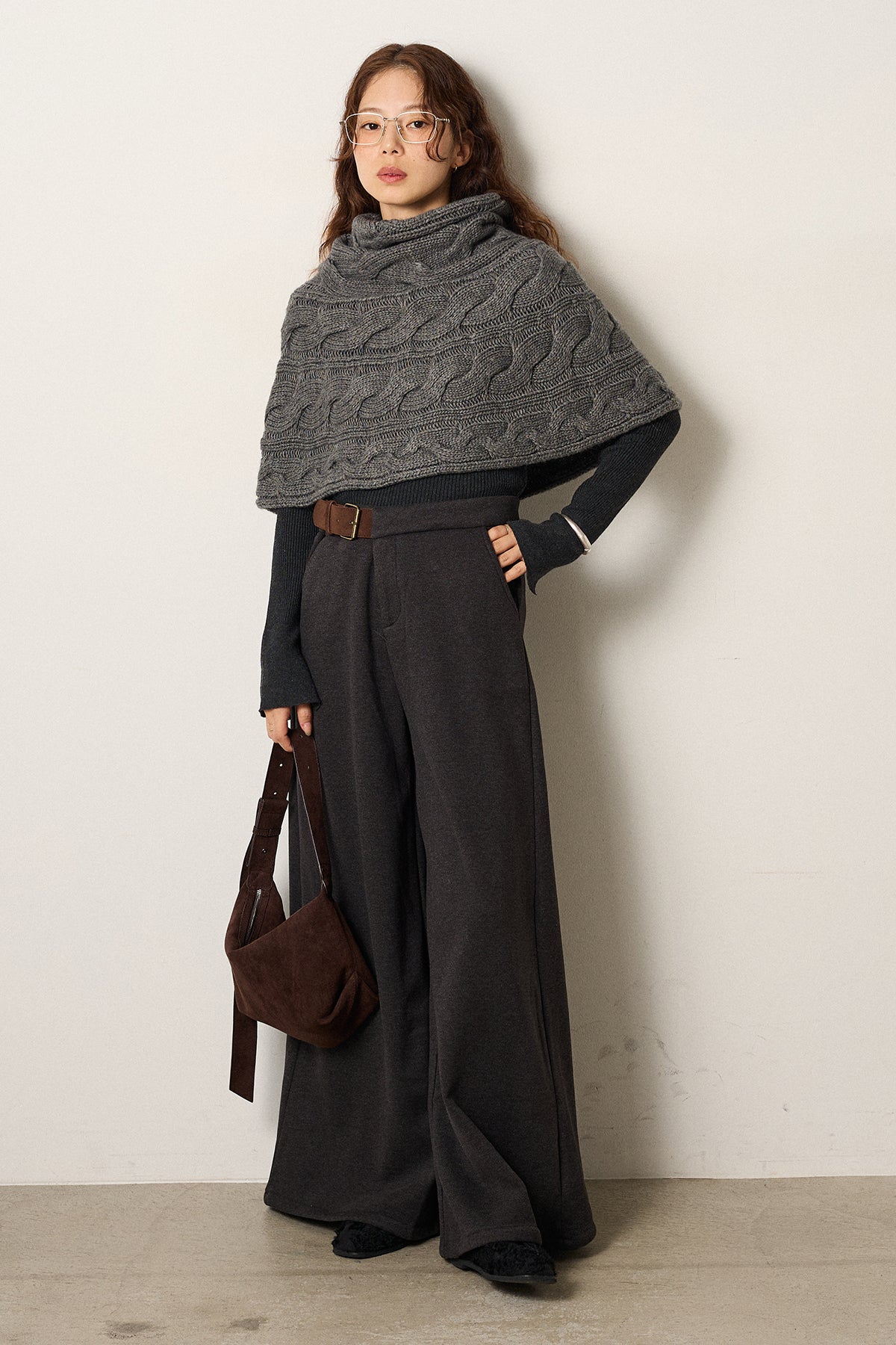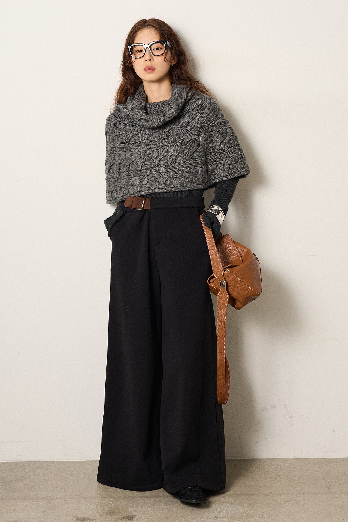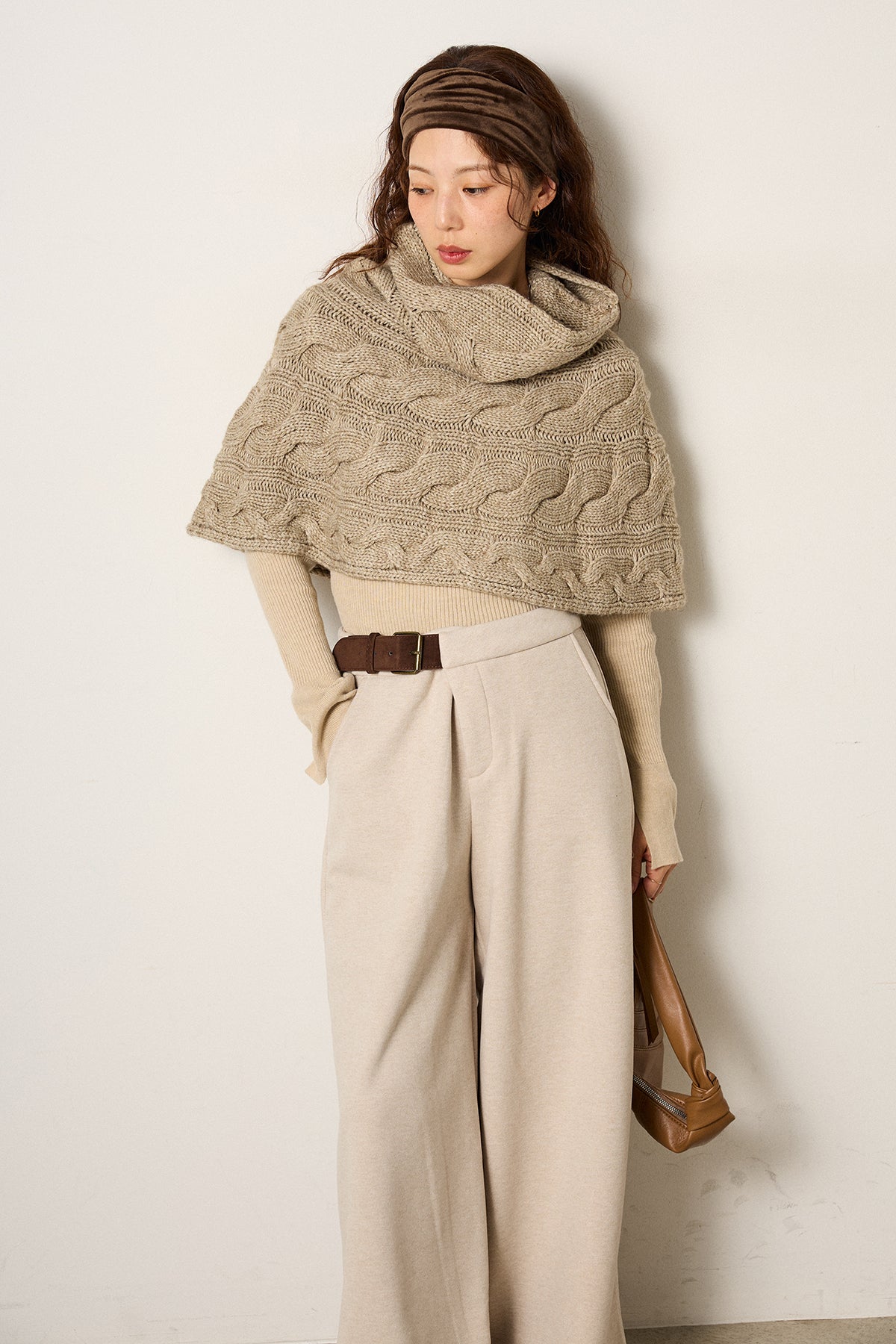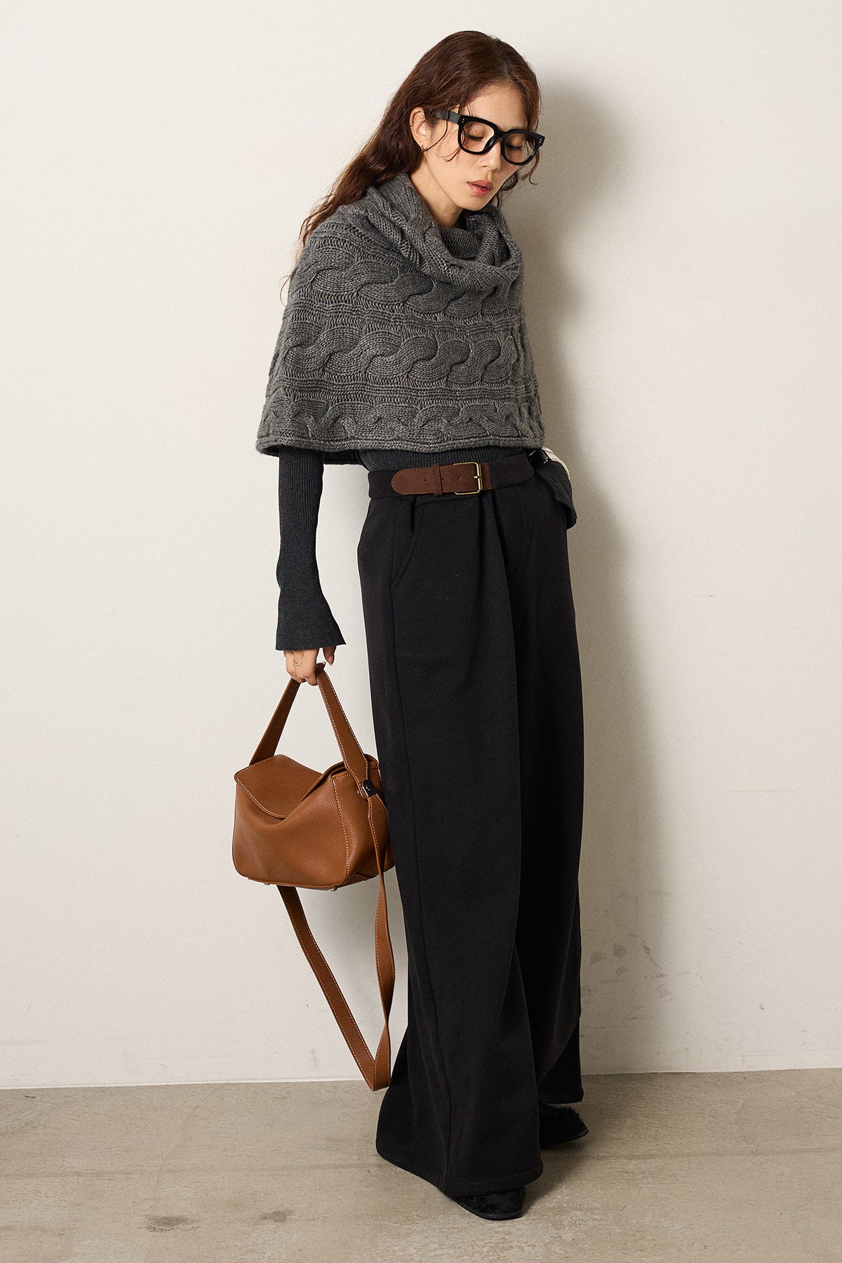 [SET]ケーブル編みケープレイヤードニット+サイドベルトパンツ(2set)