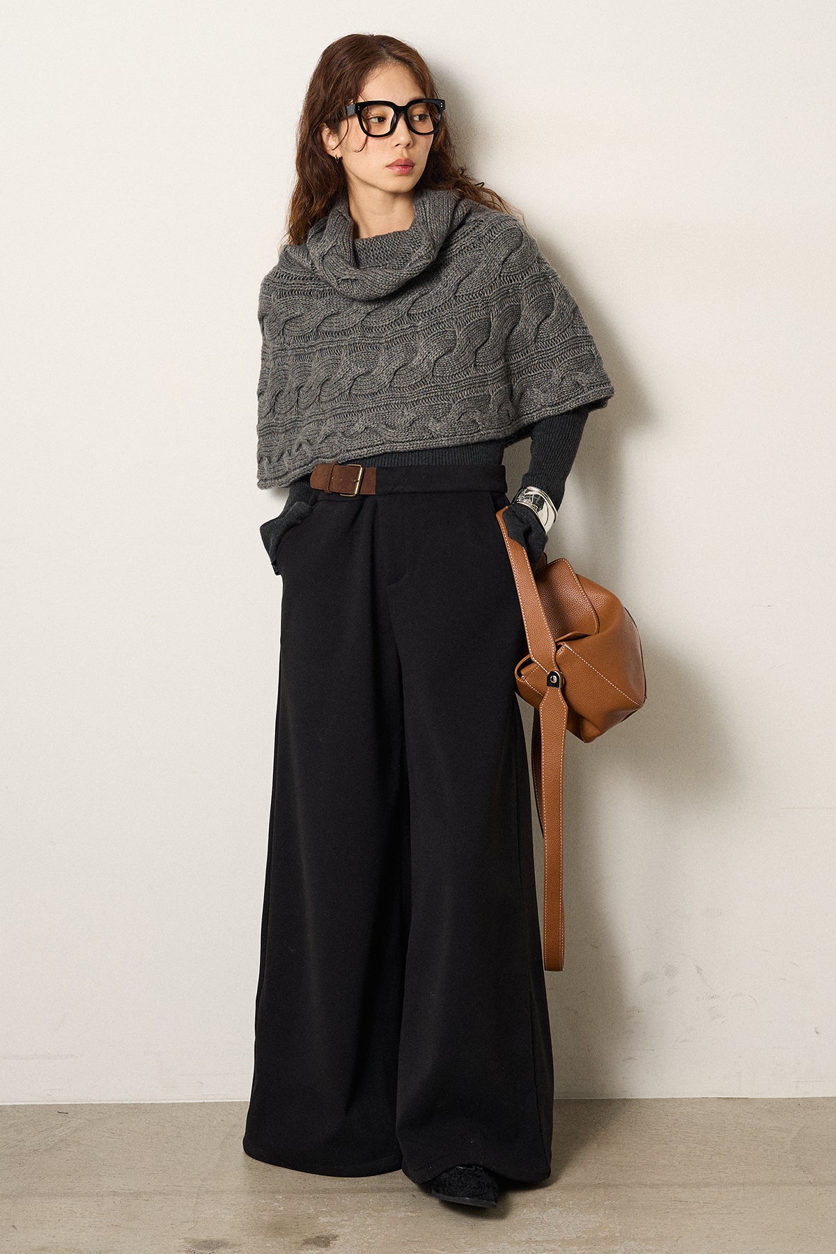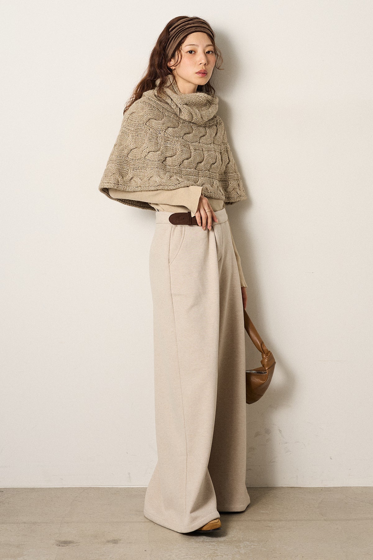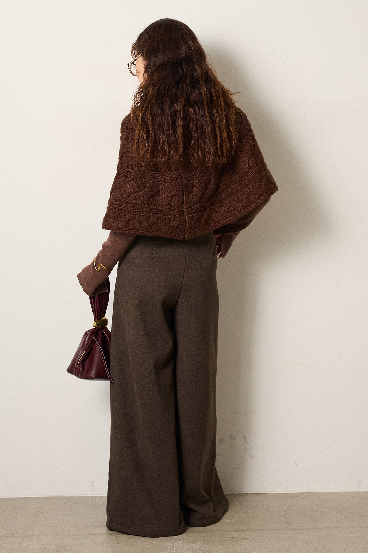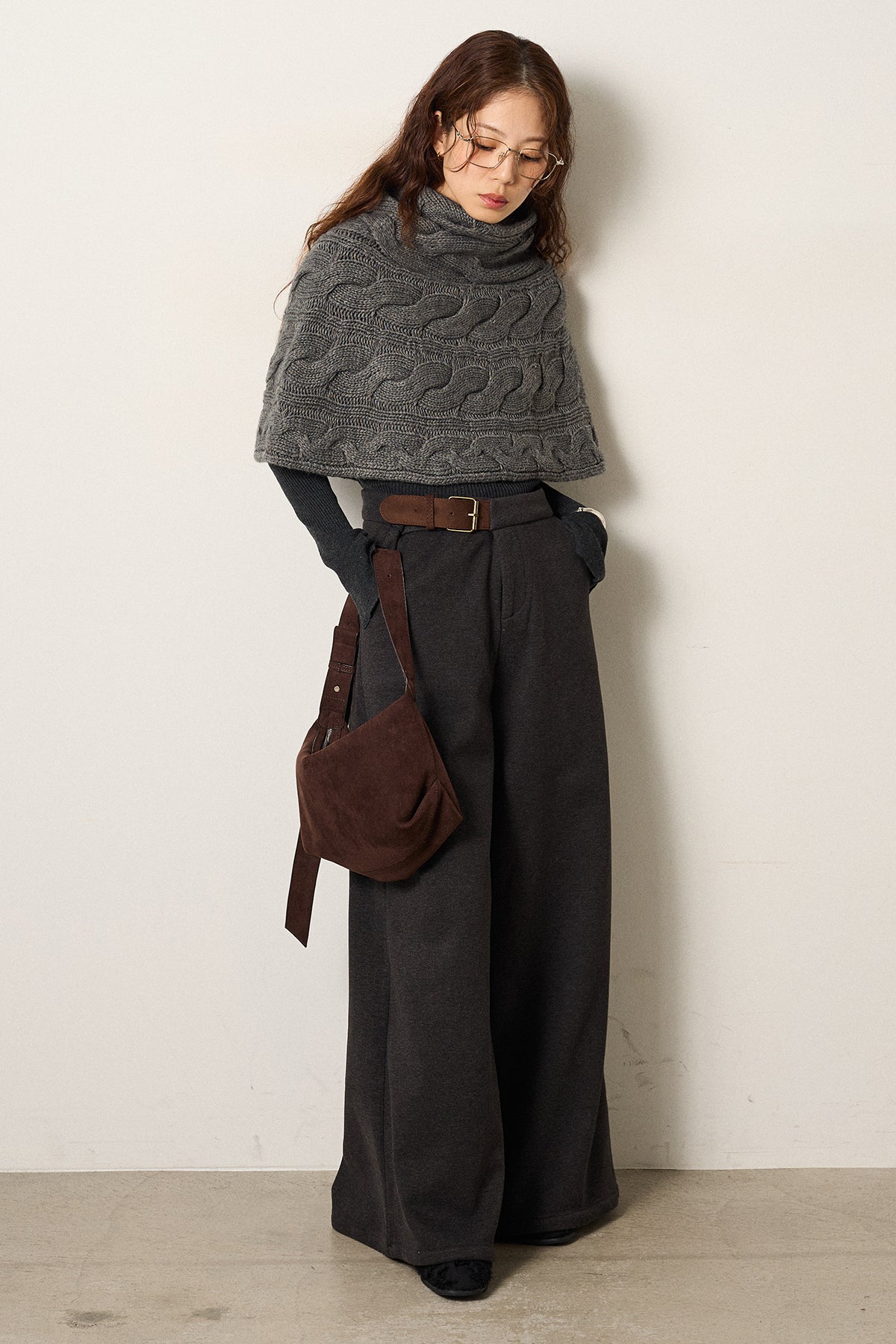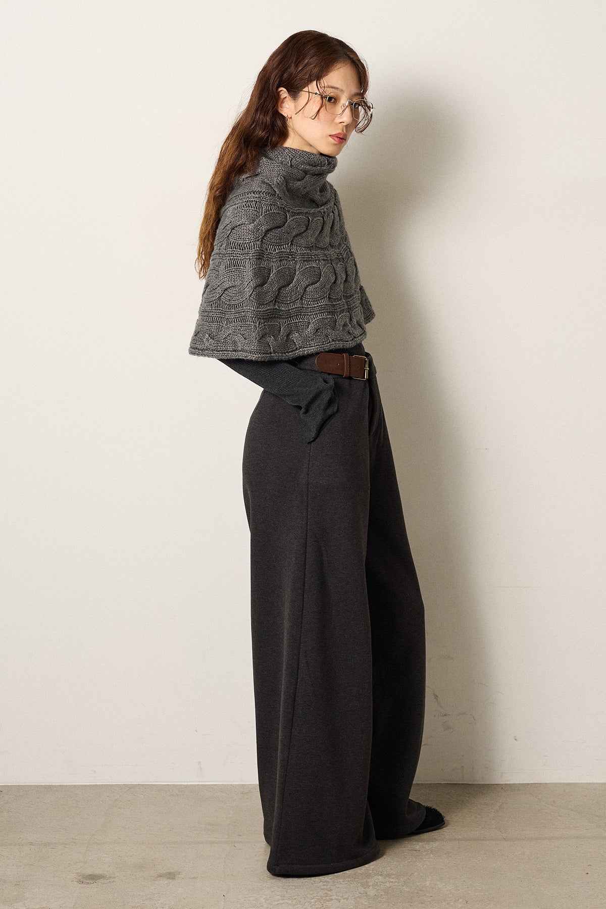 [SET]ケーブル編みケープレイヤードニット+サイドベルトパンツ(2set)