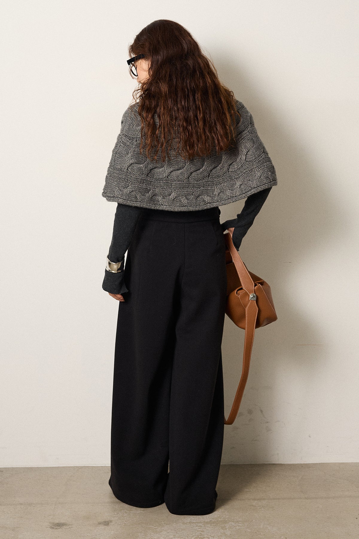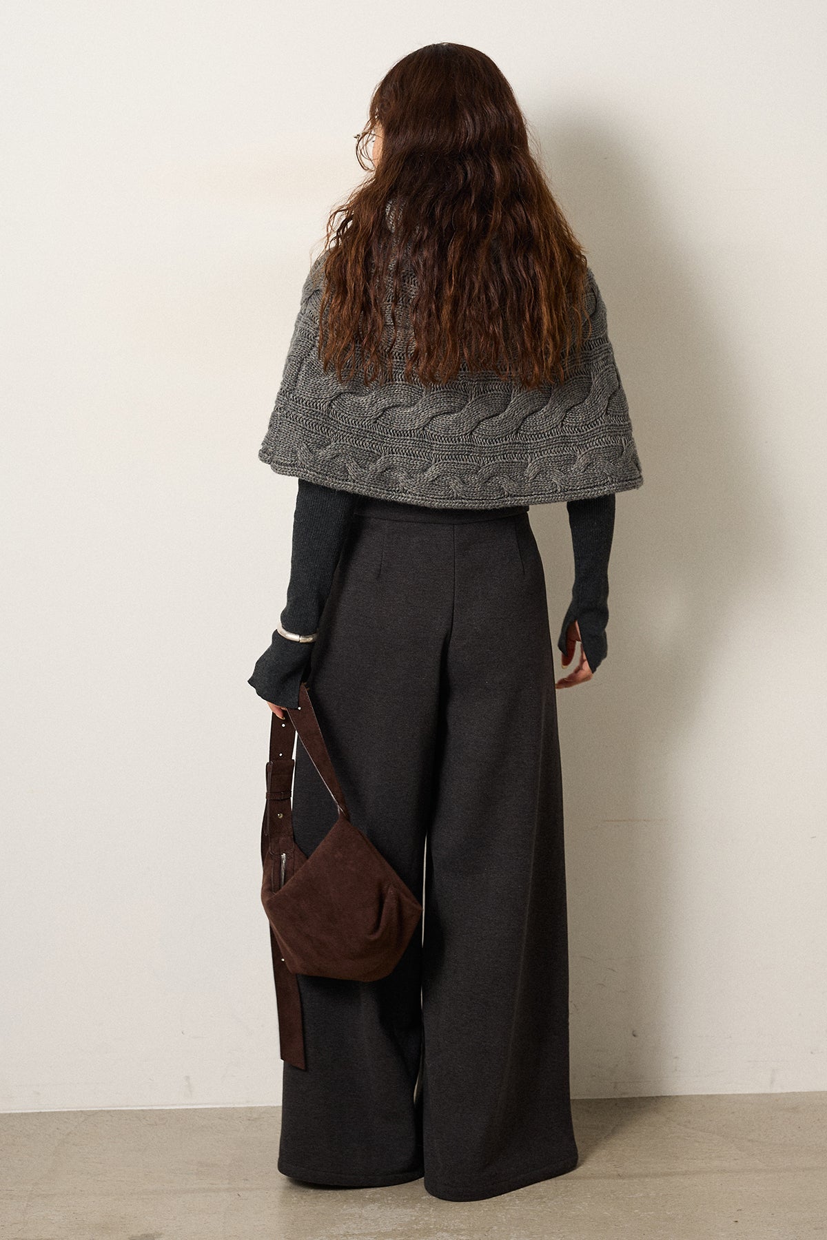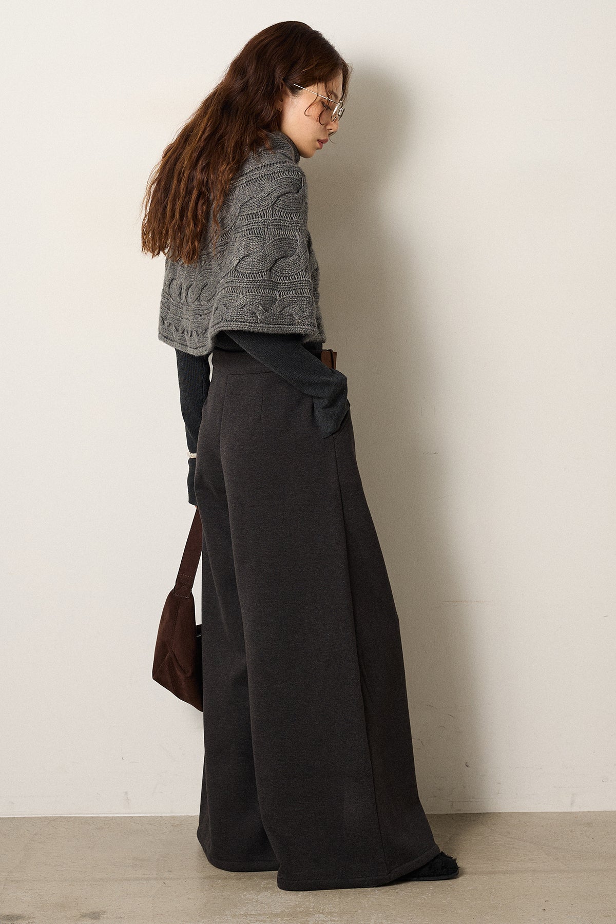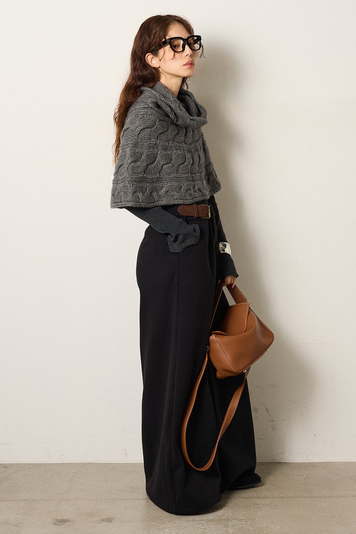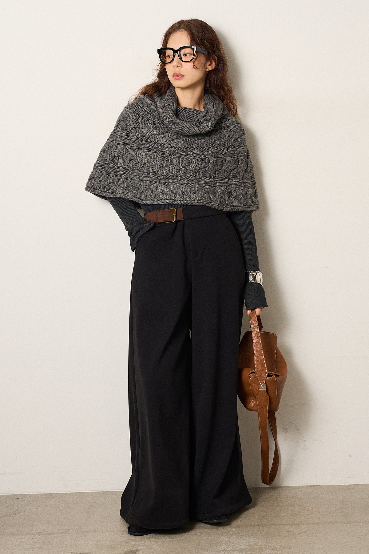 [SET]ケーブル編みケープレイヤードニット+サイドベルトパンツ(2set)