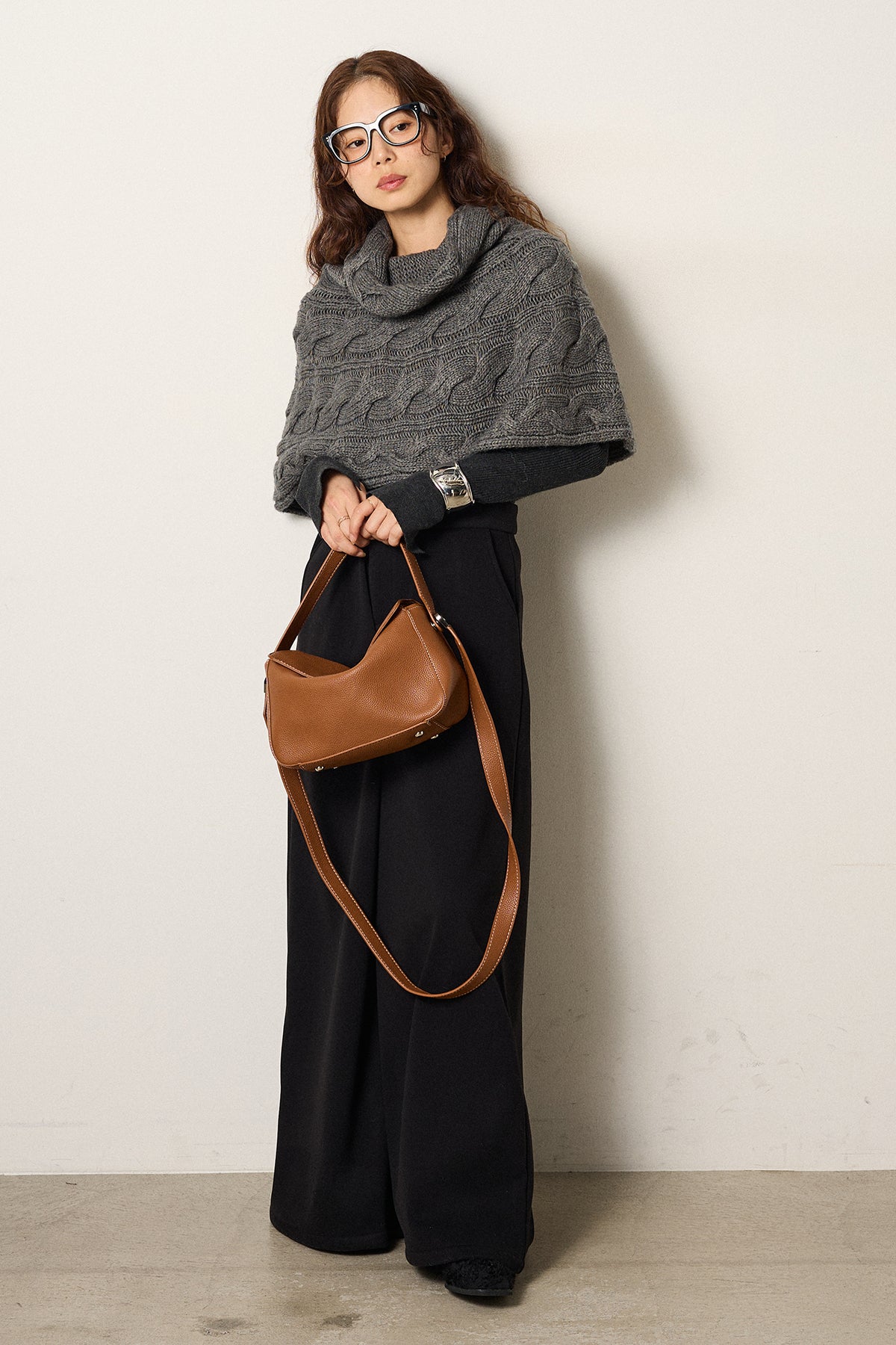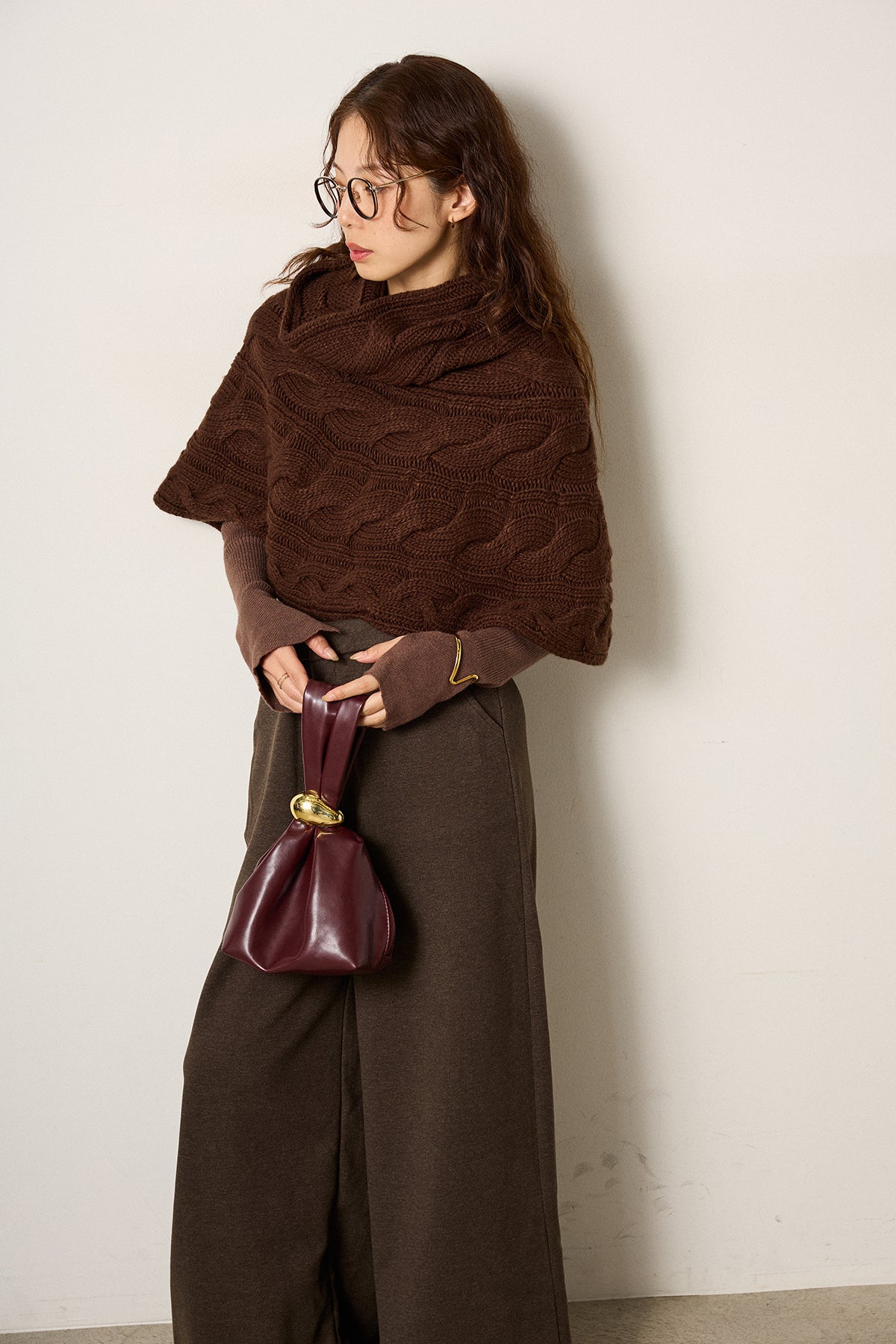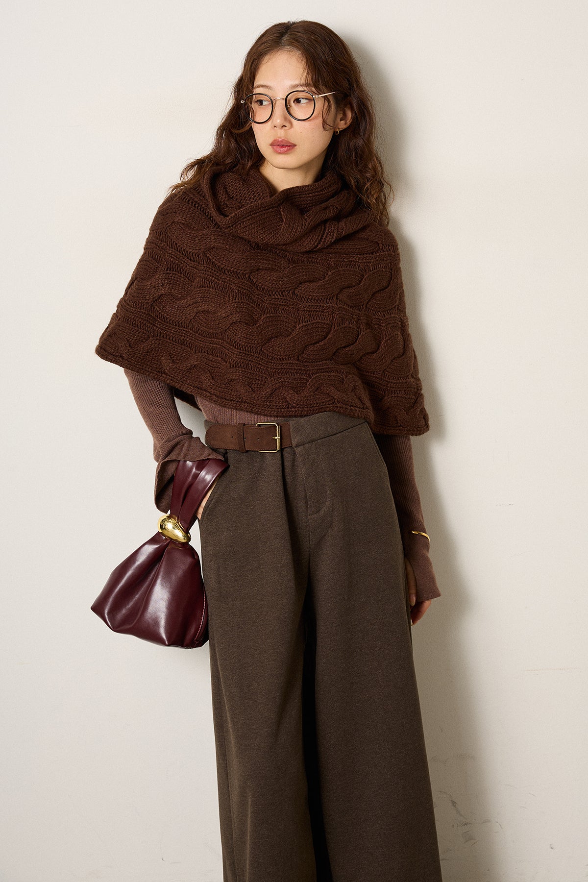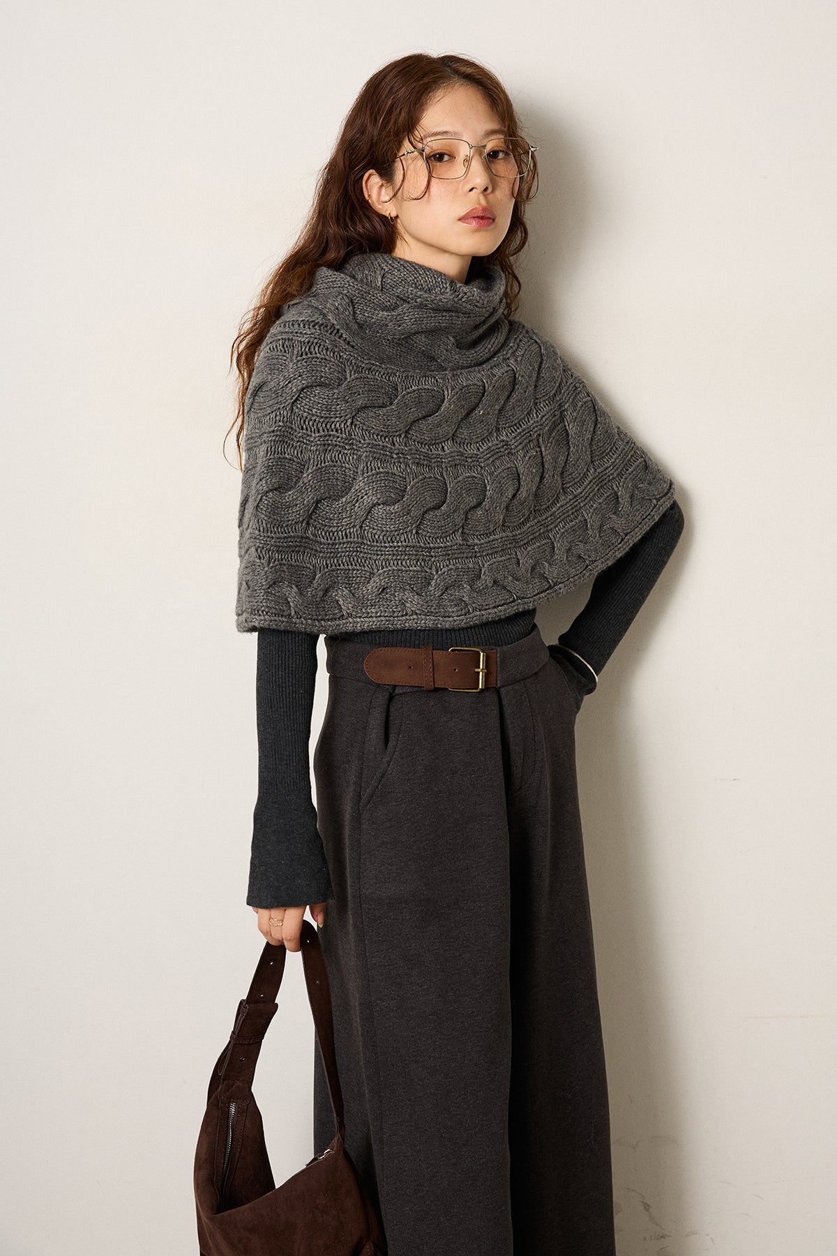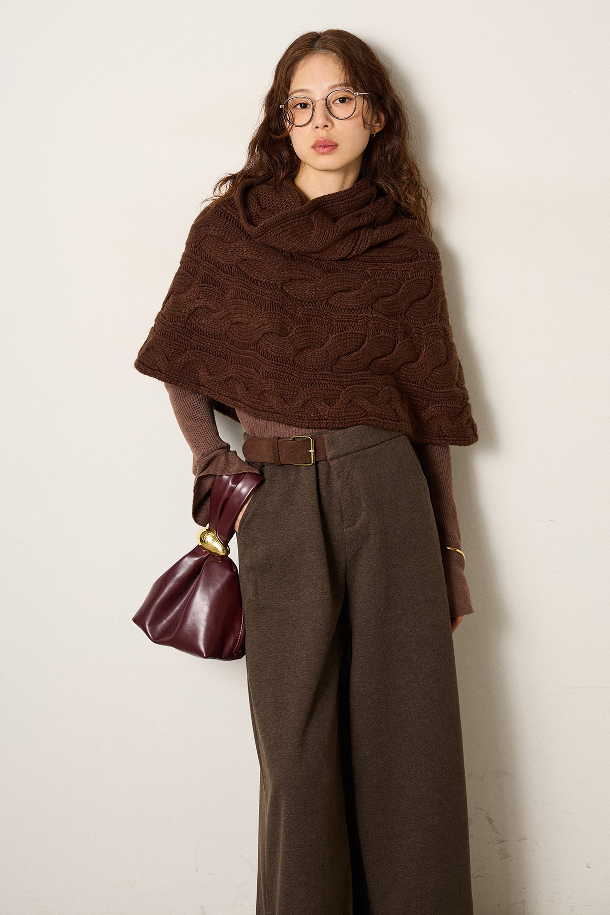 立体感のあるケーブル編みが魅力のケープ付きニット。 ショルダーラインを包み込むようなデザインで、柔らかなニュアンスをプラス。 レイヤード風のシルエットが一枚でスタイルを完成させ、上品な抜け感を演出します。 パンツにもスカートにも合わせやすく、秋冬のコーディネートに温もりを添えるアイテムです。