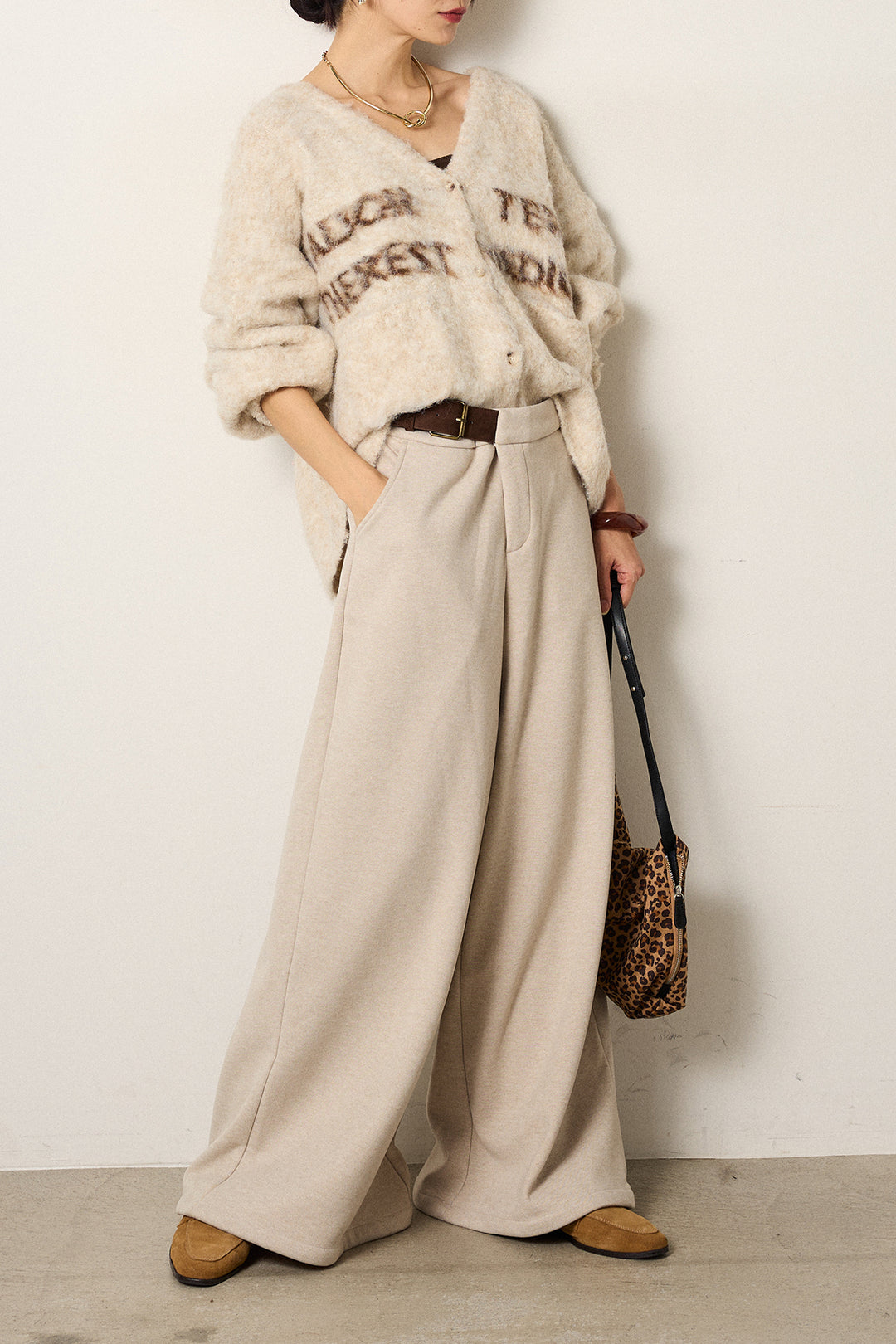 [SET]ウール混透かしロゴニットカーディガン+サイドベルトパンツ(2set)