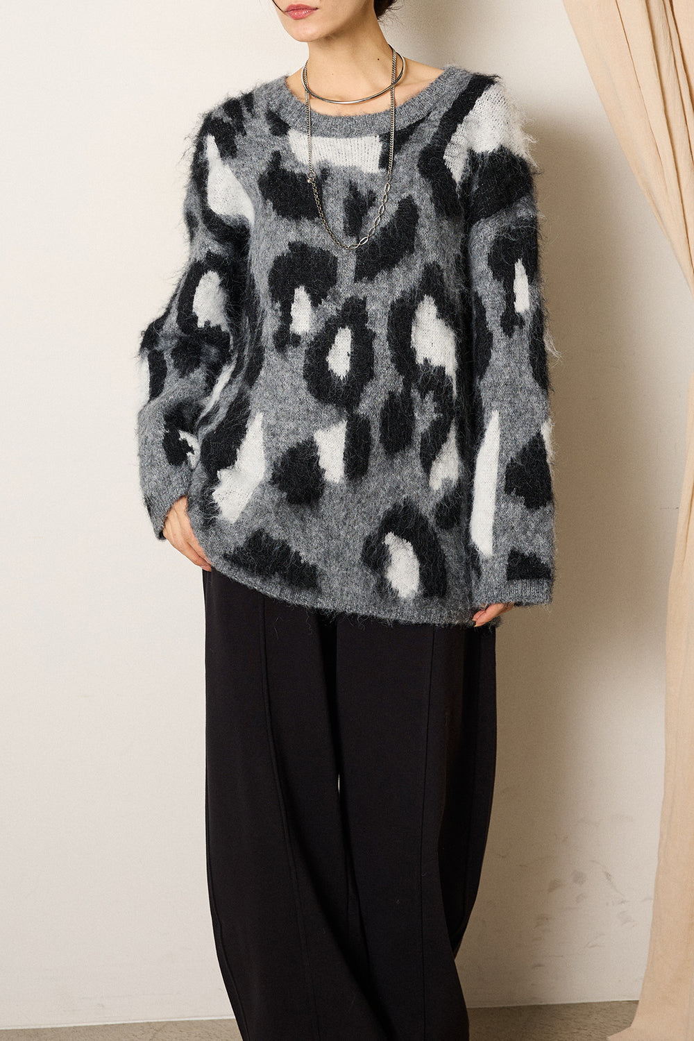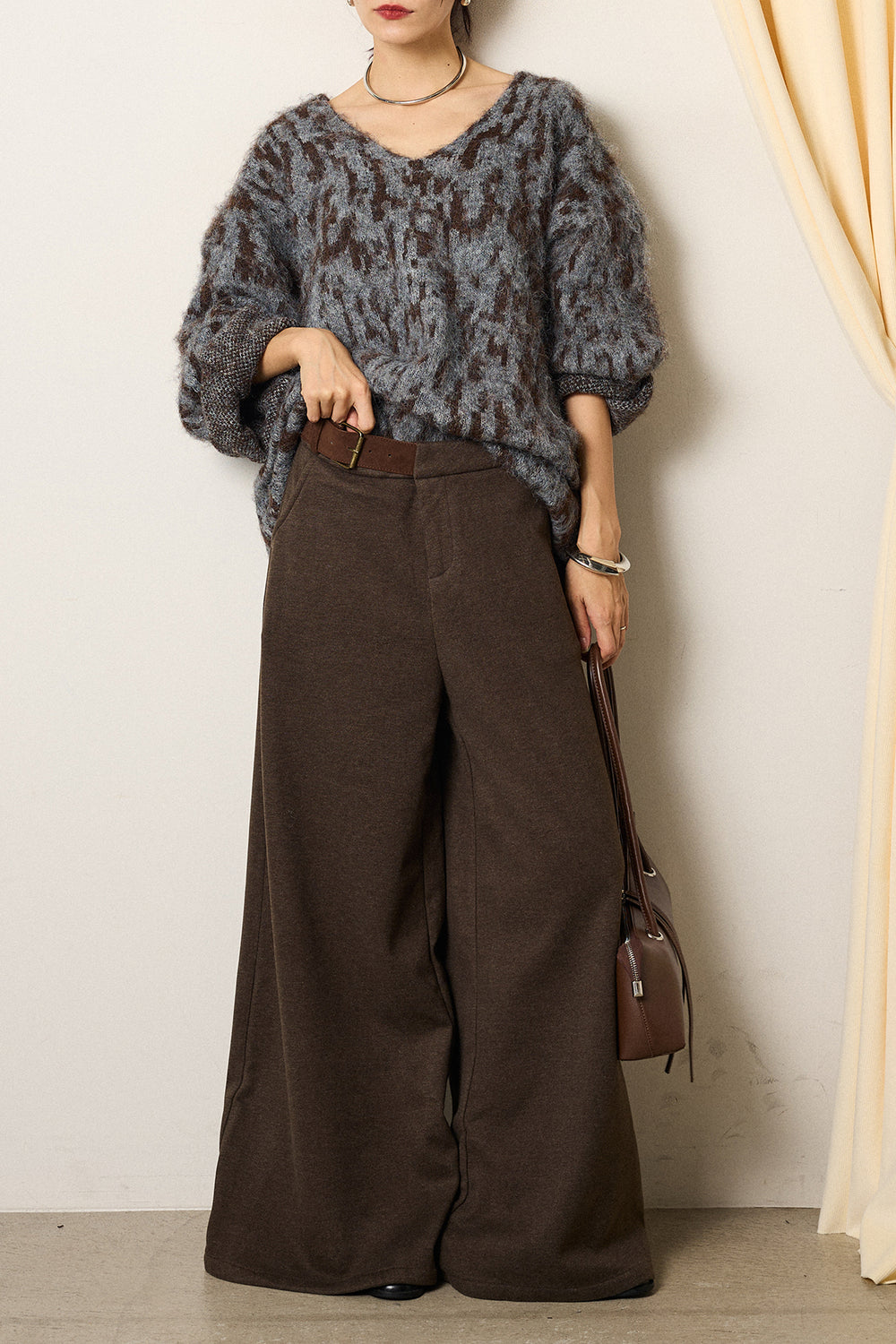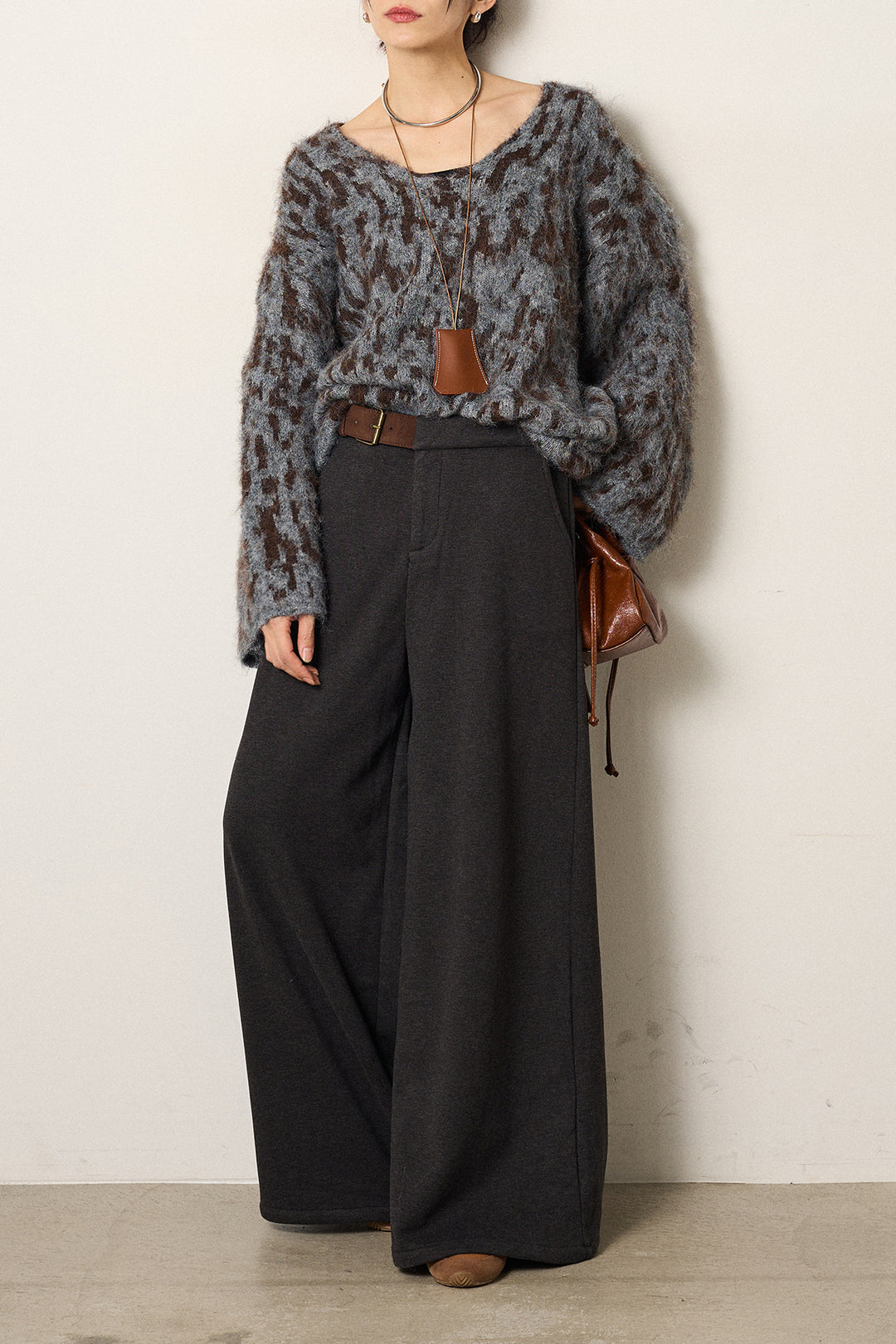 [SET]フラッフィーレオパードシャギーニット+サイドベルトパンツ(2set)
