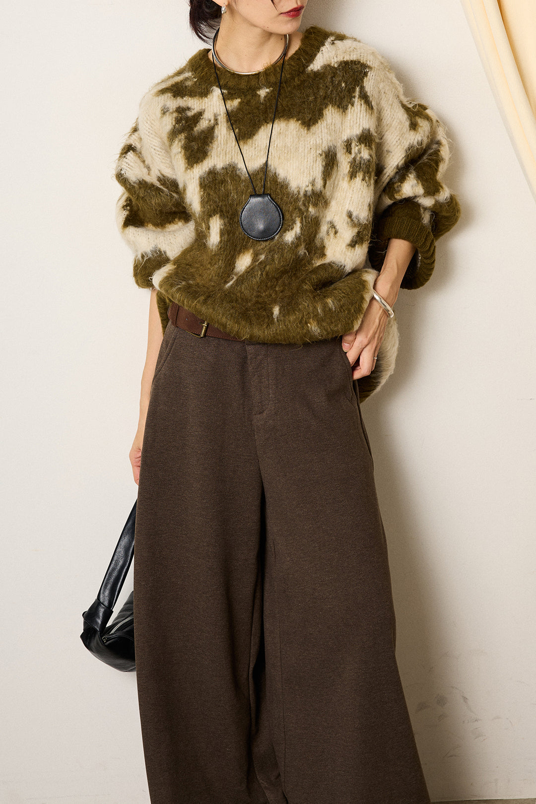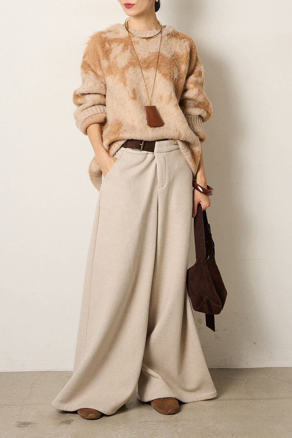 [SET]モヘアタッチマーブルニット+サイドベルトパンツ(2set)