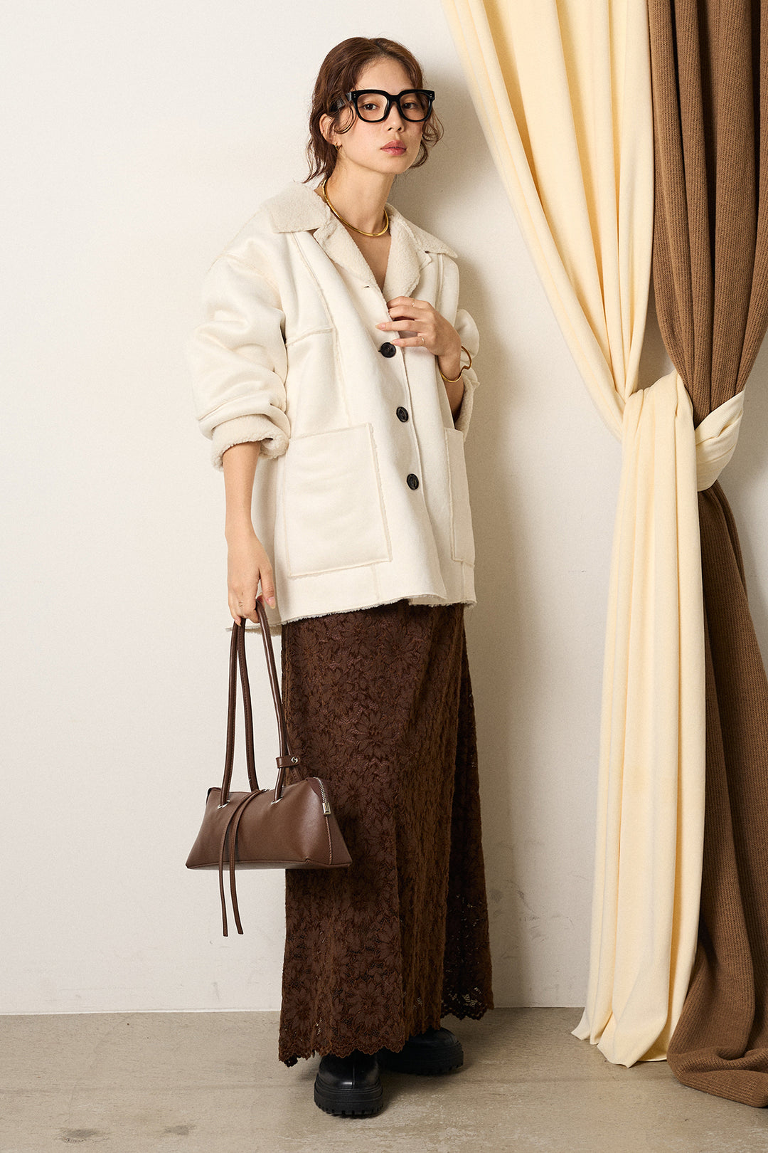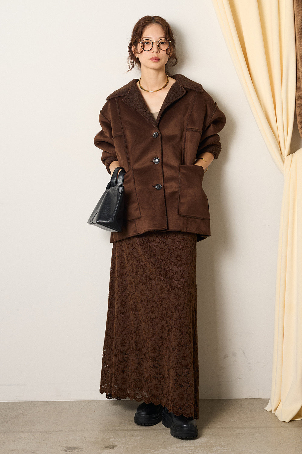 [SET]エコムートンカバーオール+花柄刺繍ベロアフレアスカート(2set)