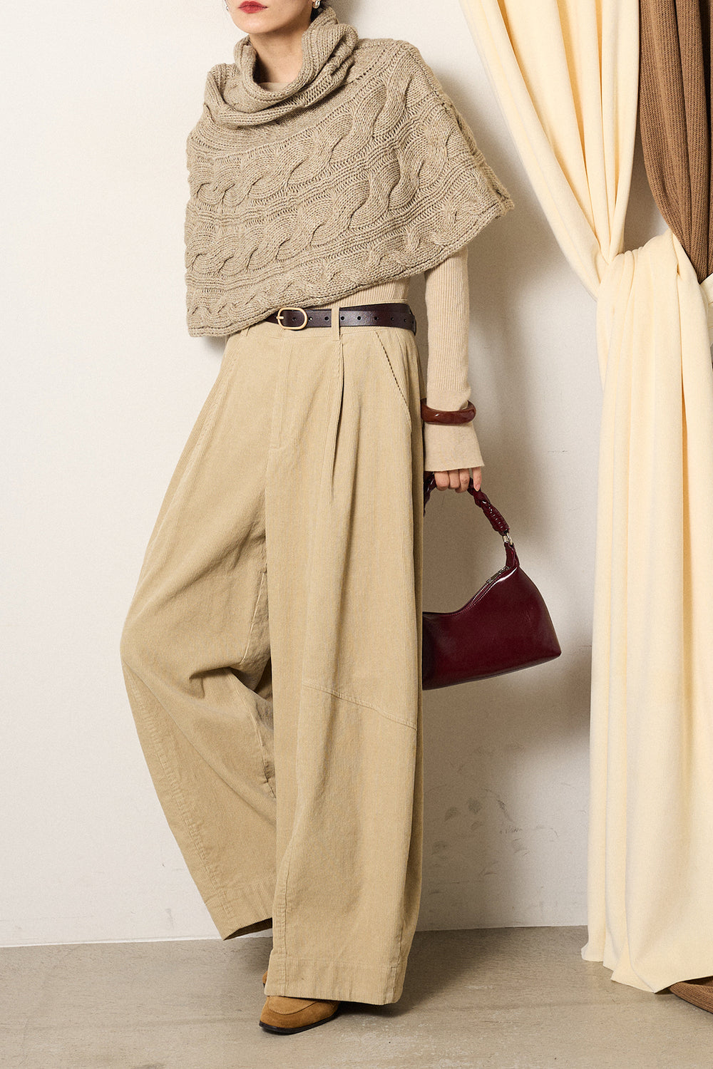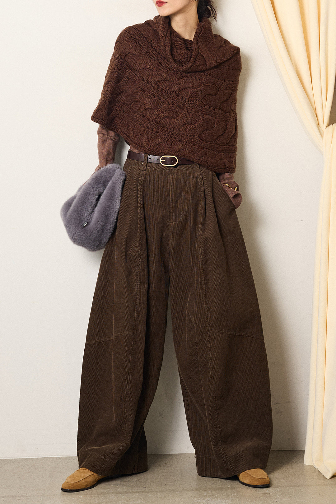 [SET]ケーブル編みケープレイヤードニット+タック入りコーデュロイワイドパンツ(2set)