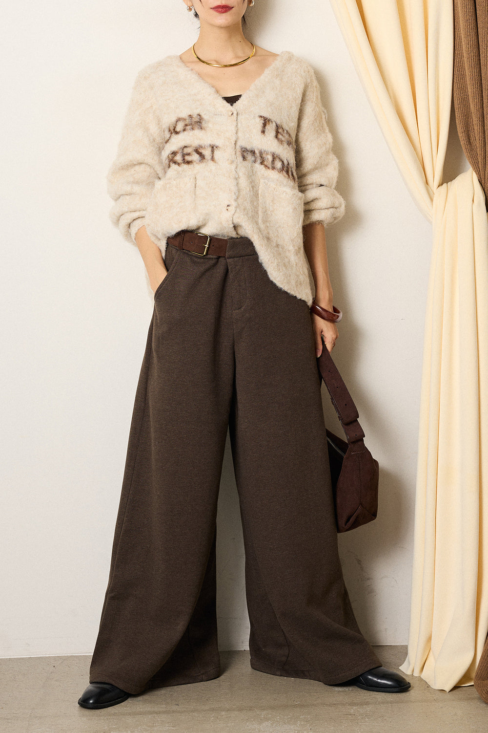 [SET]襟付きシャギーニットカーディガン+サイドベルトパンツ(2set)