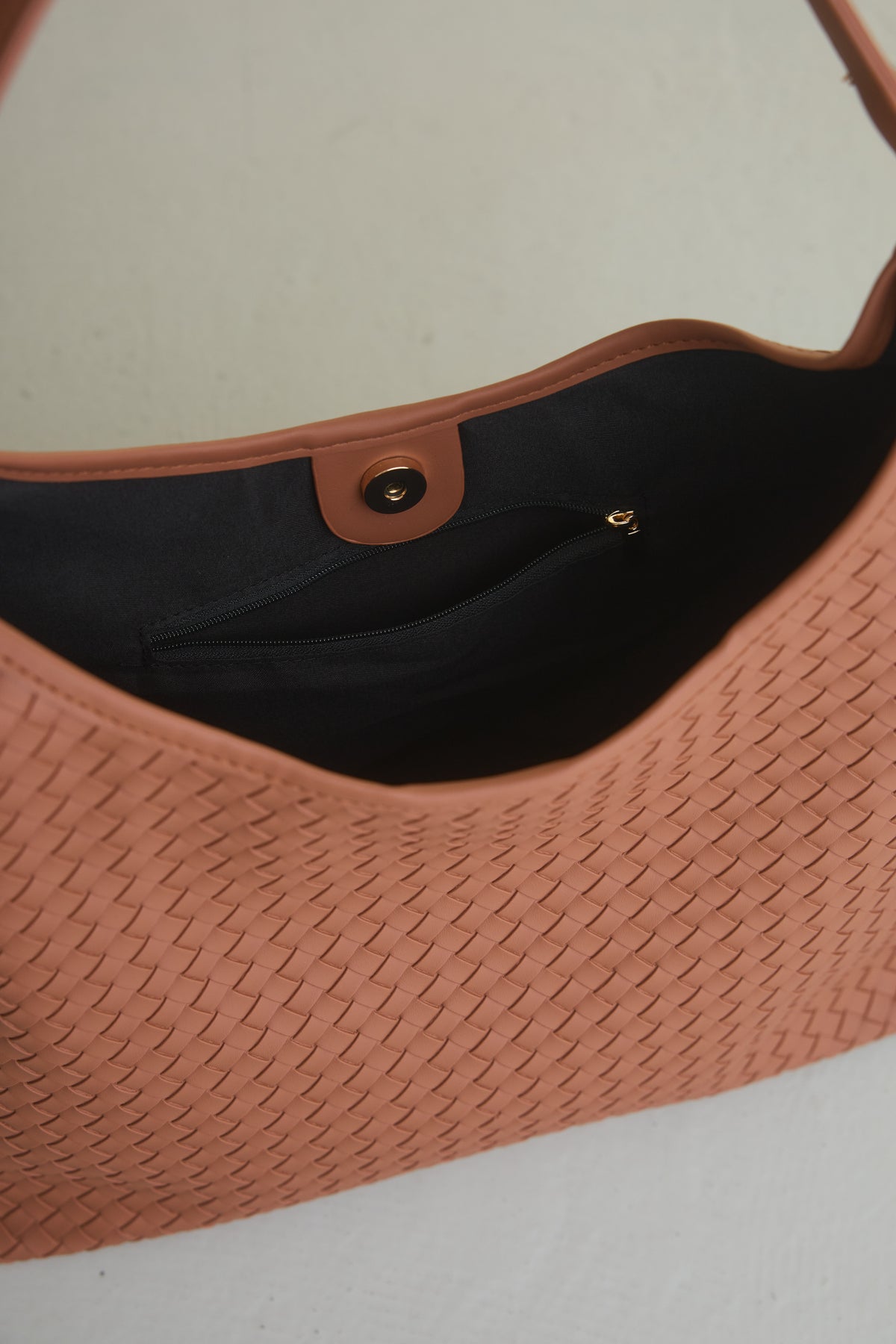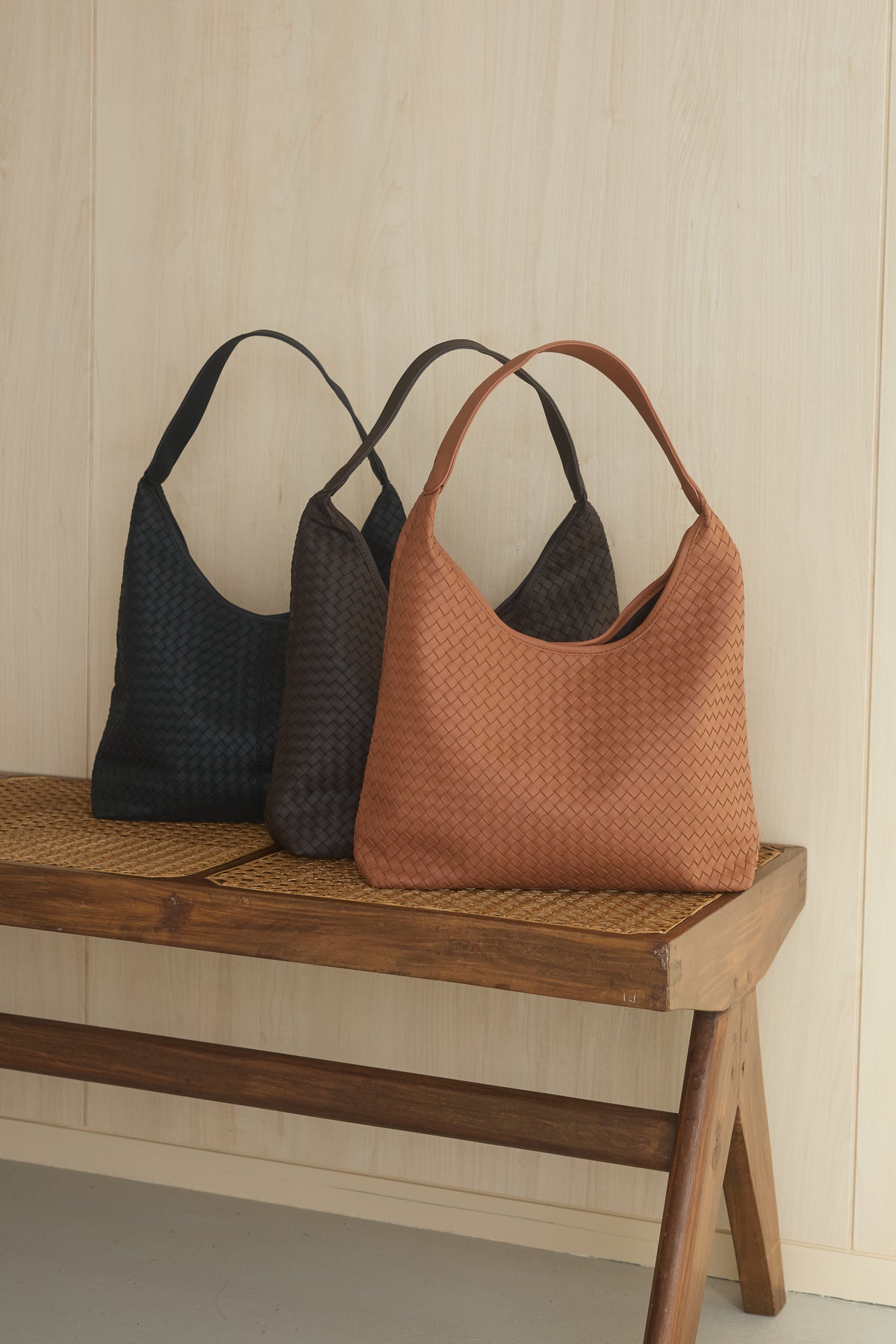 編み込みデザインが印象的な、レザーライク素材のワンハンドルバッグ。 立体感のあるメッシュが上品な存在感を放ち、スタイリングに洗練されたニュアンスをプラスします。 しなやかな素材感で体に馴染みやすく、持つだけでこなれた雰囲気に。 ワンハンドル仕様で肩掛けしやすく、デイリーに使いやすいデザインです。 程よいサイズ感ながら収納力もあり、必需品をしっかり収納可能。 カジュアルからきれいめまで幅広いスタイルにマッチし、シーズンレスで活躍します。 シンプルなコーディネートに取り入れるだけで、ぐっと洗練度が高まるアイテム。 毎日のスタイリングに寄り添う、大人のための万能バッグです。
