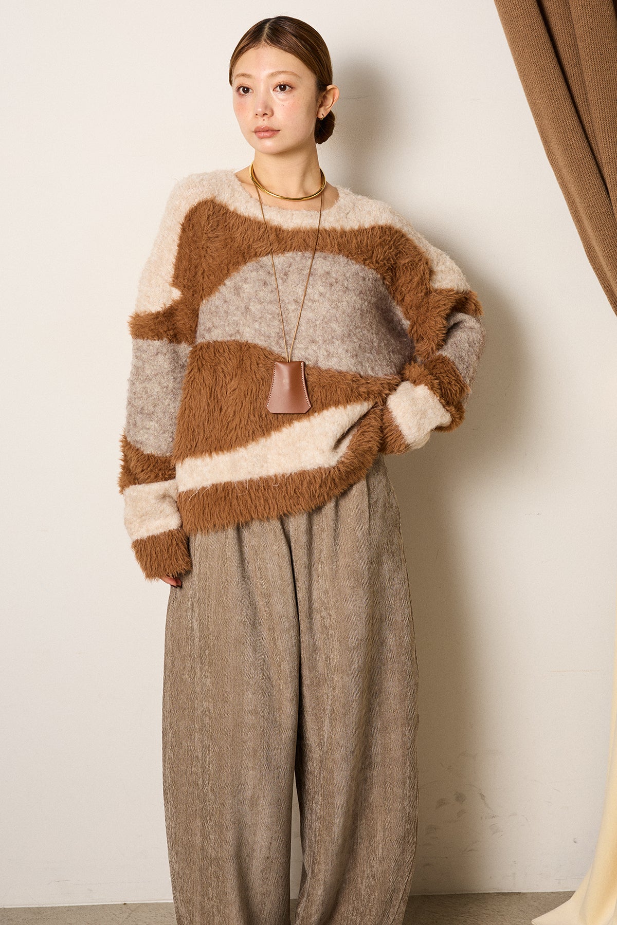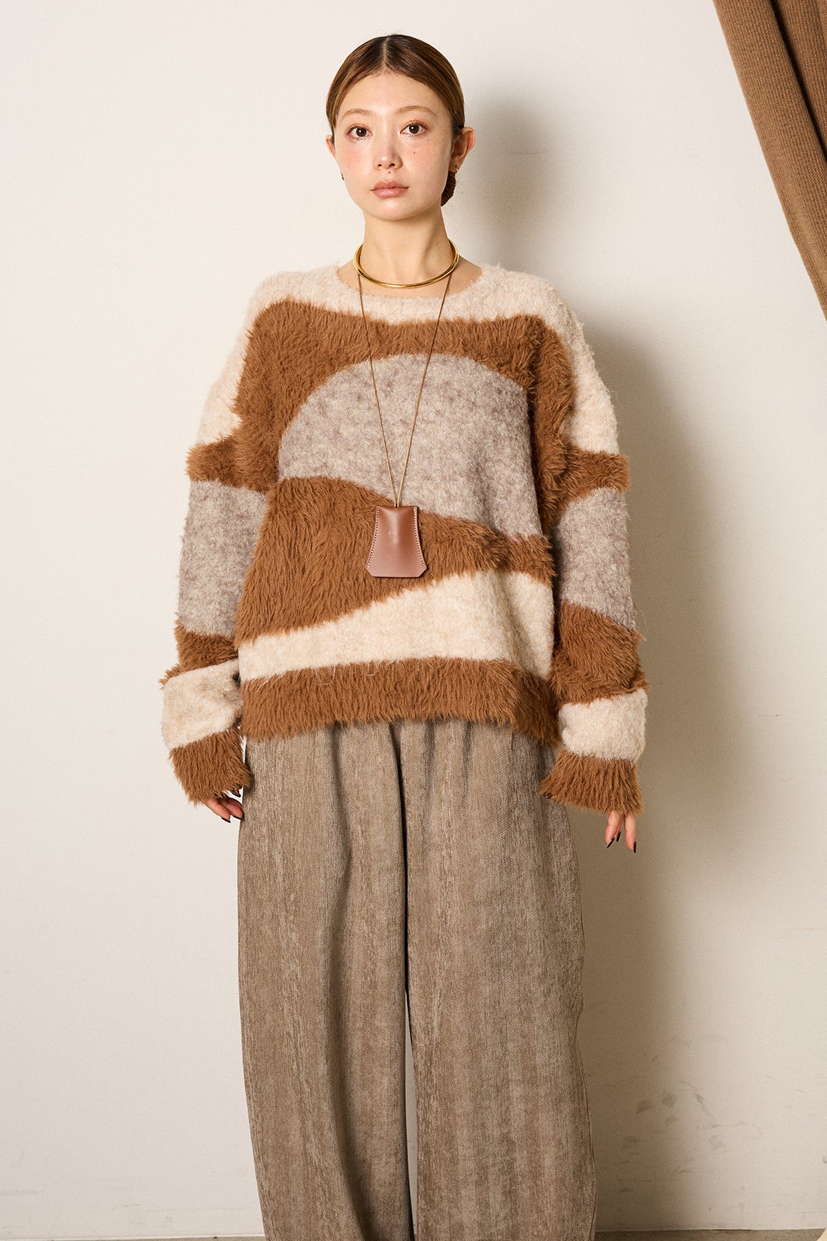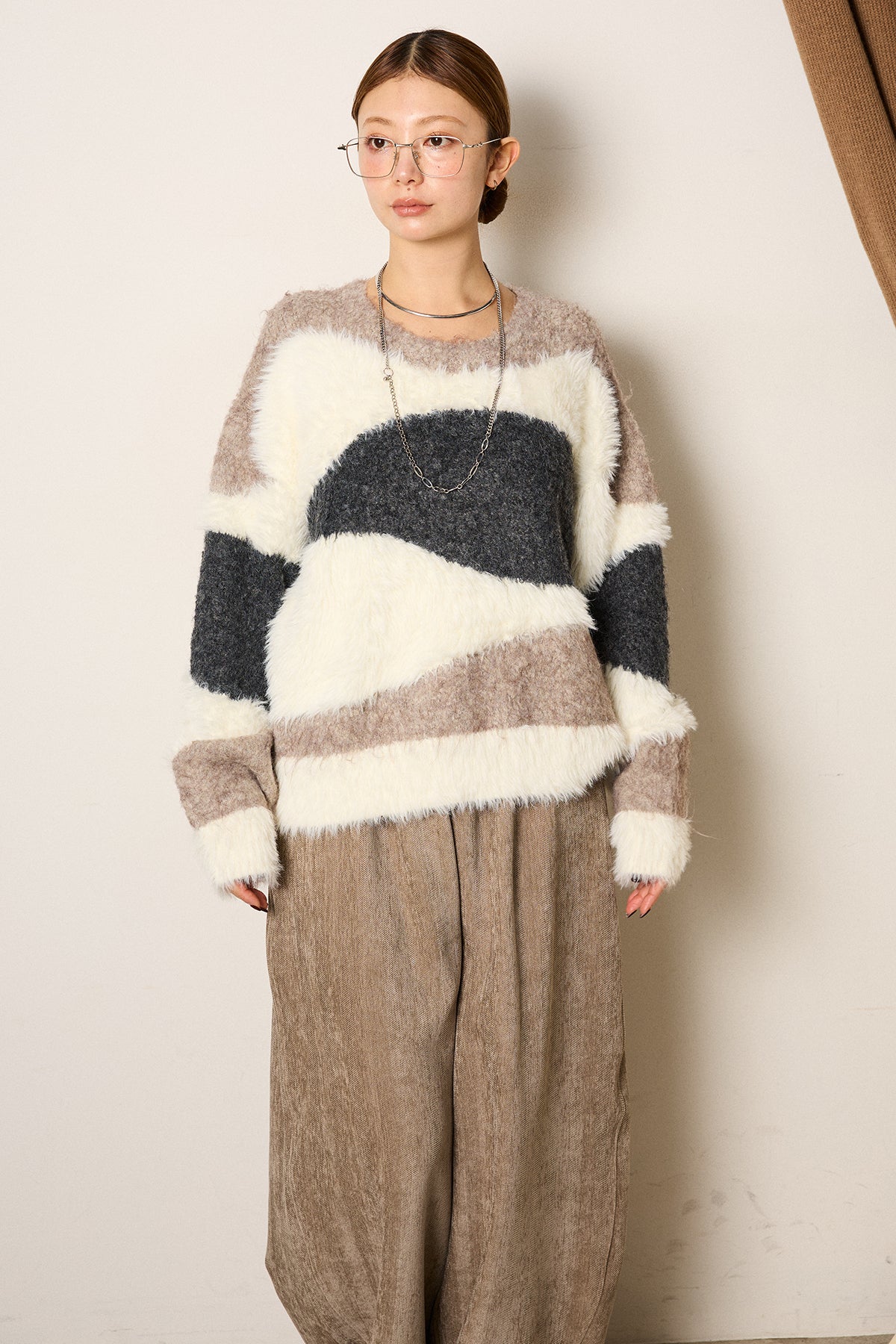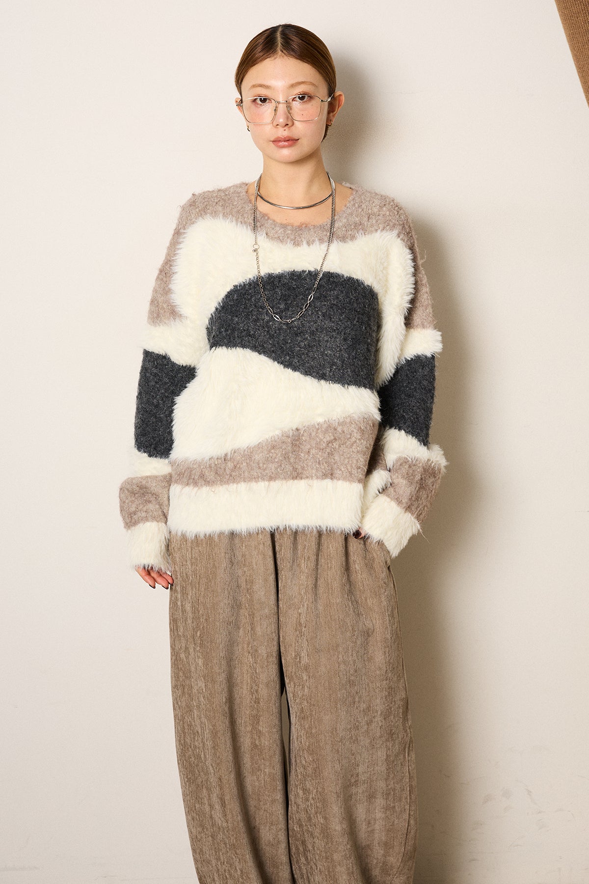 シャギーウェーブ柄クルーネックニットトップスを含んだコーデセット商品を探す↓
