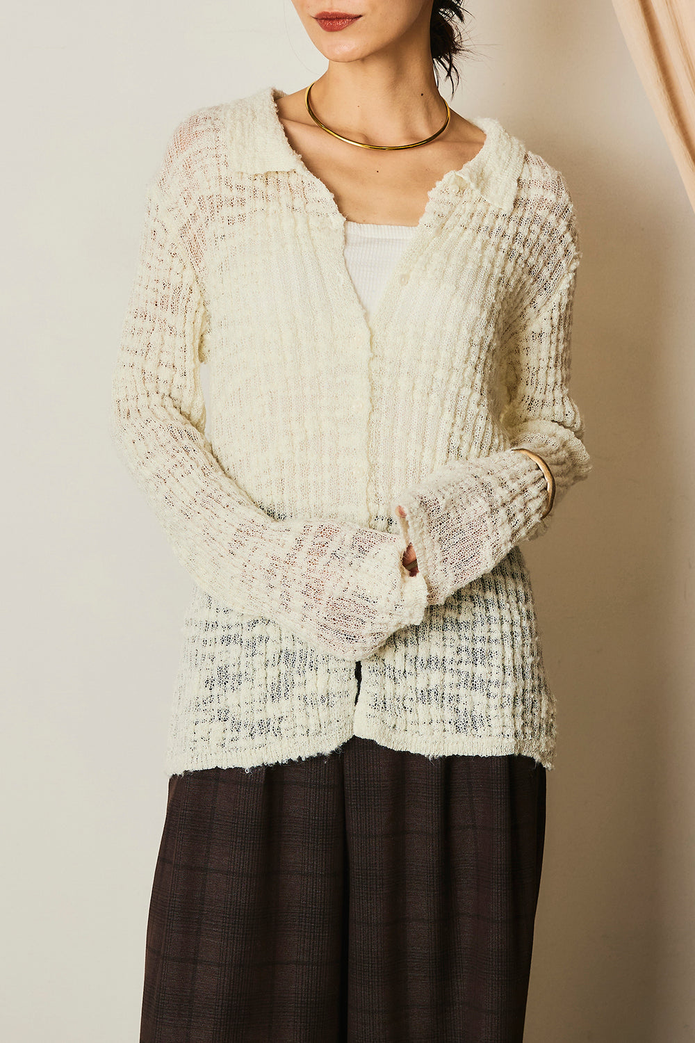 【即納】杢ストレッチフェイクレザー衿ニットブルゾン