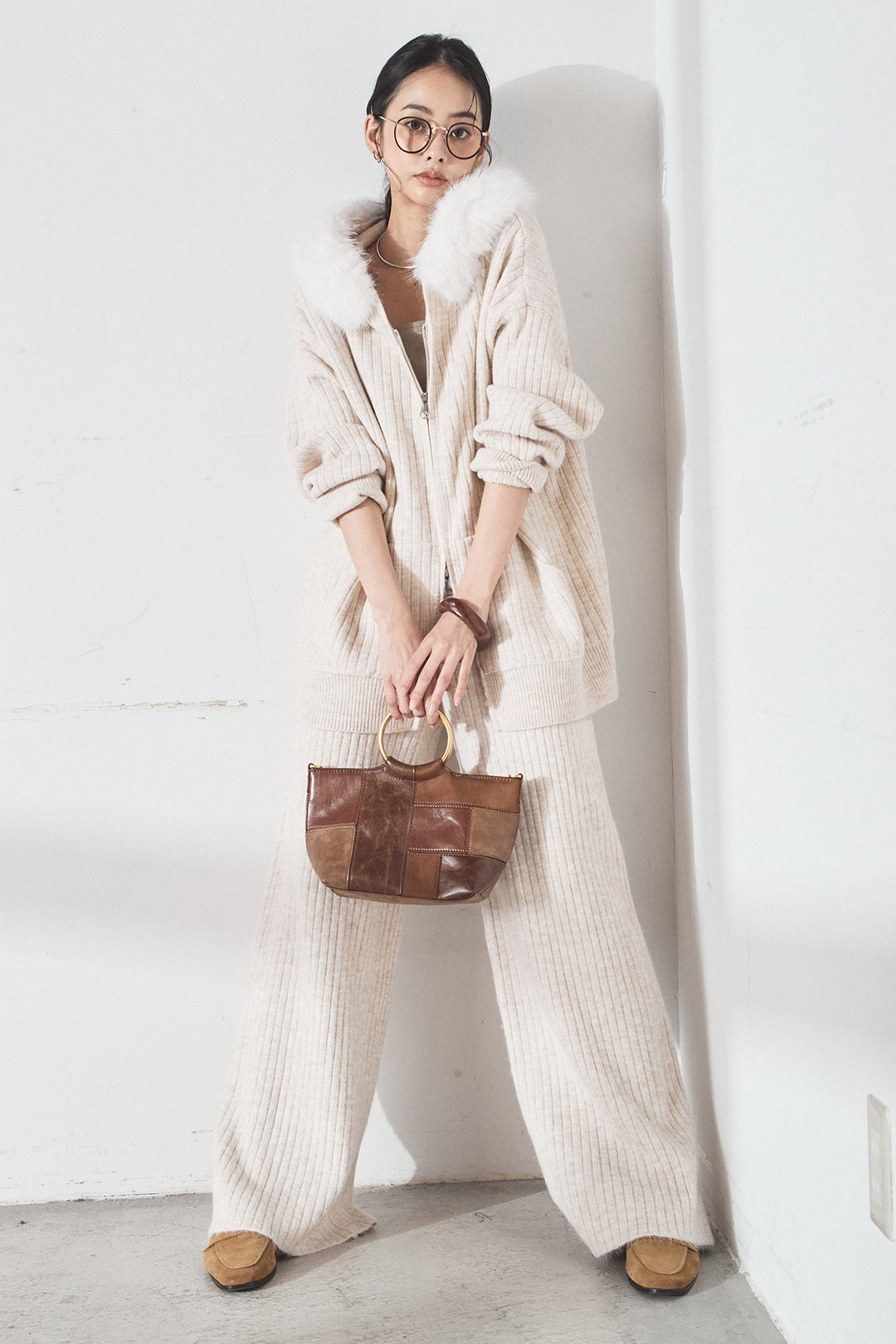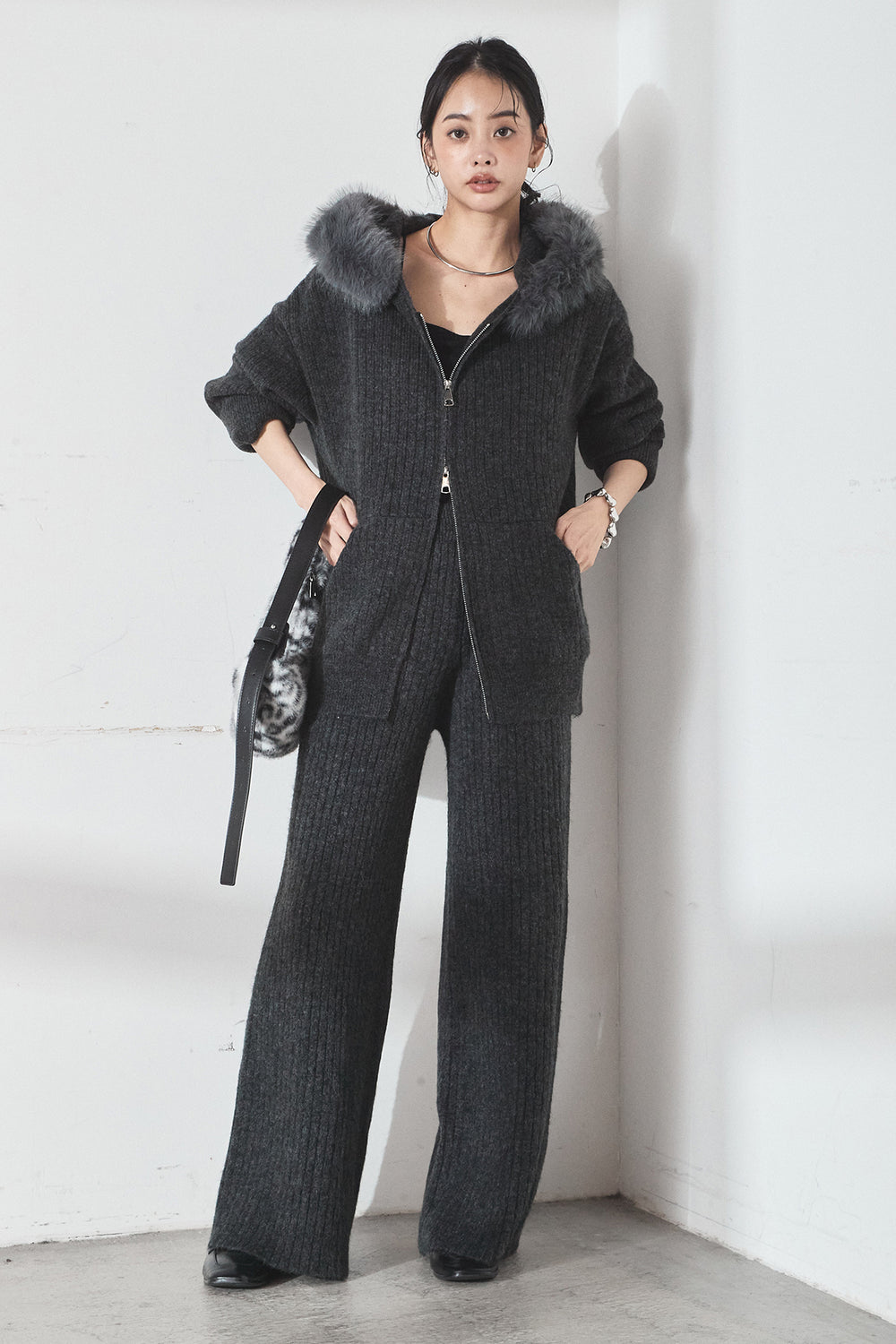 [SET]ファー付きリブニットフーディーSETUP