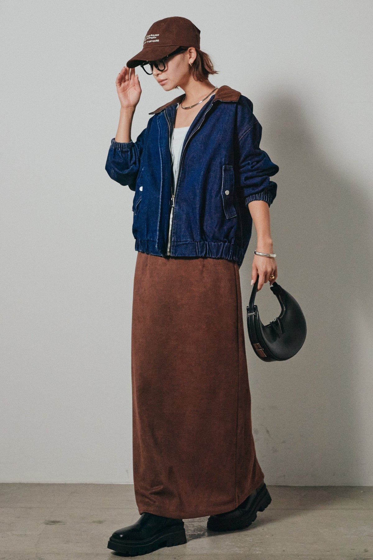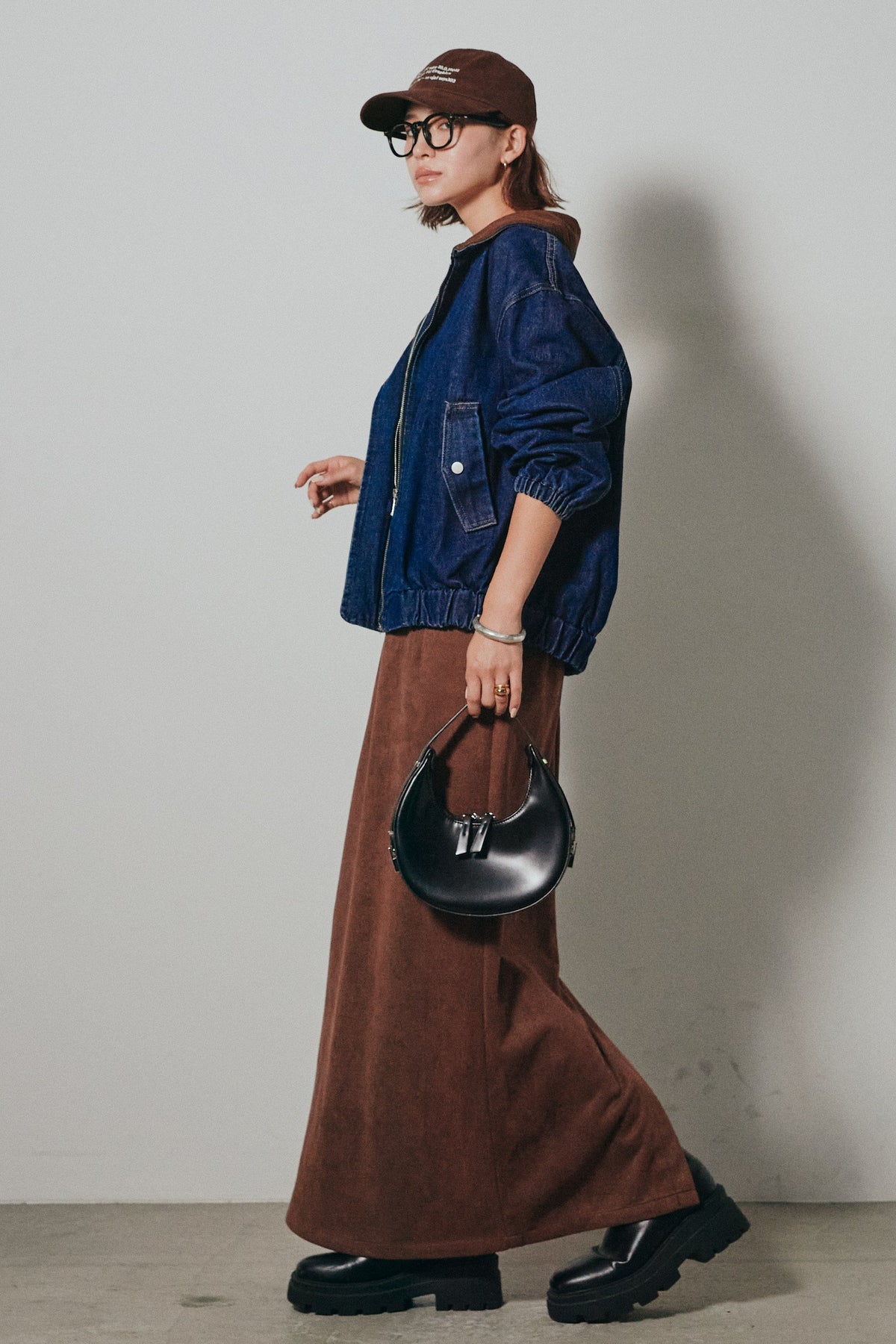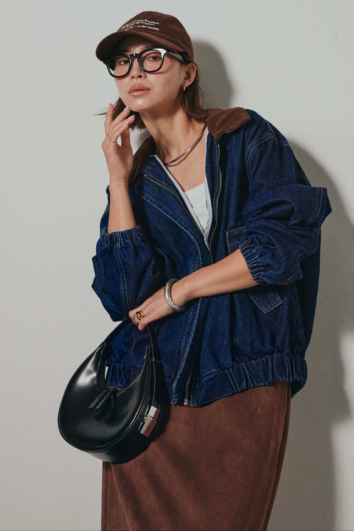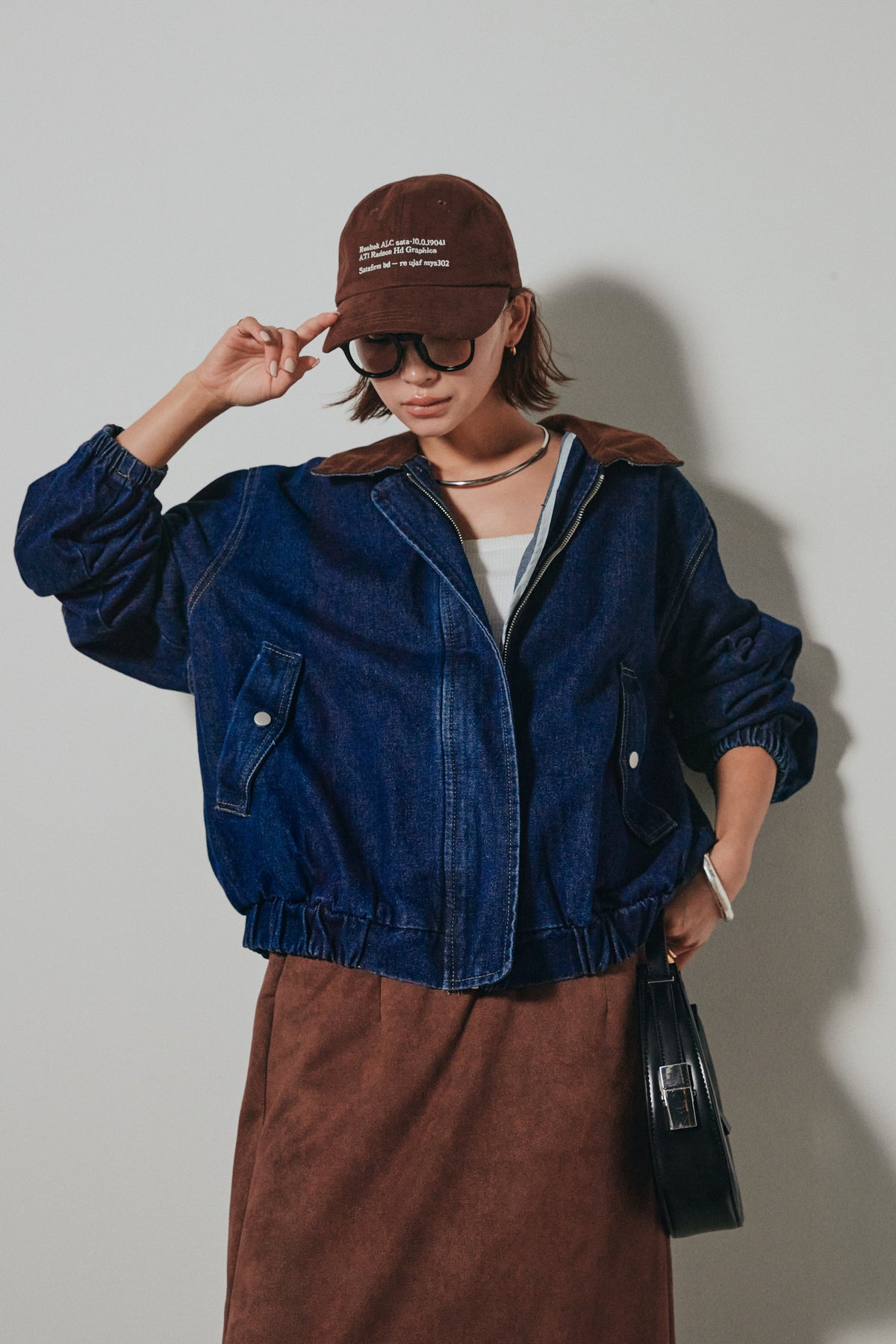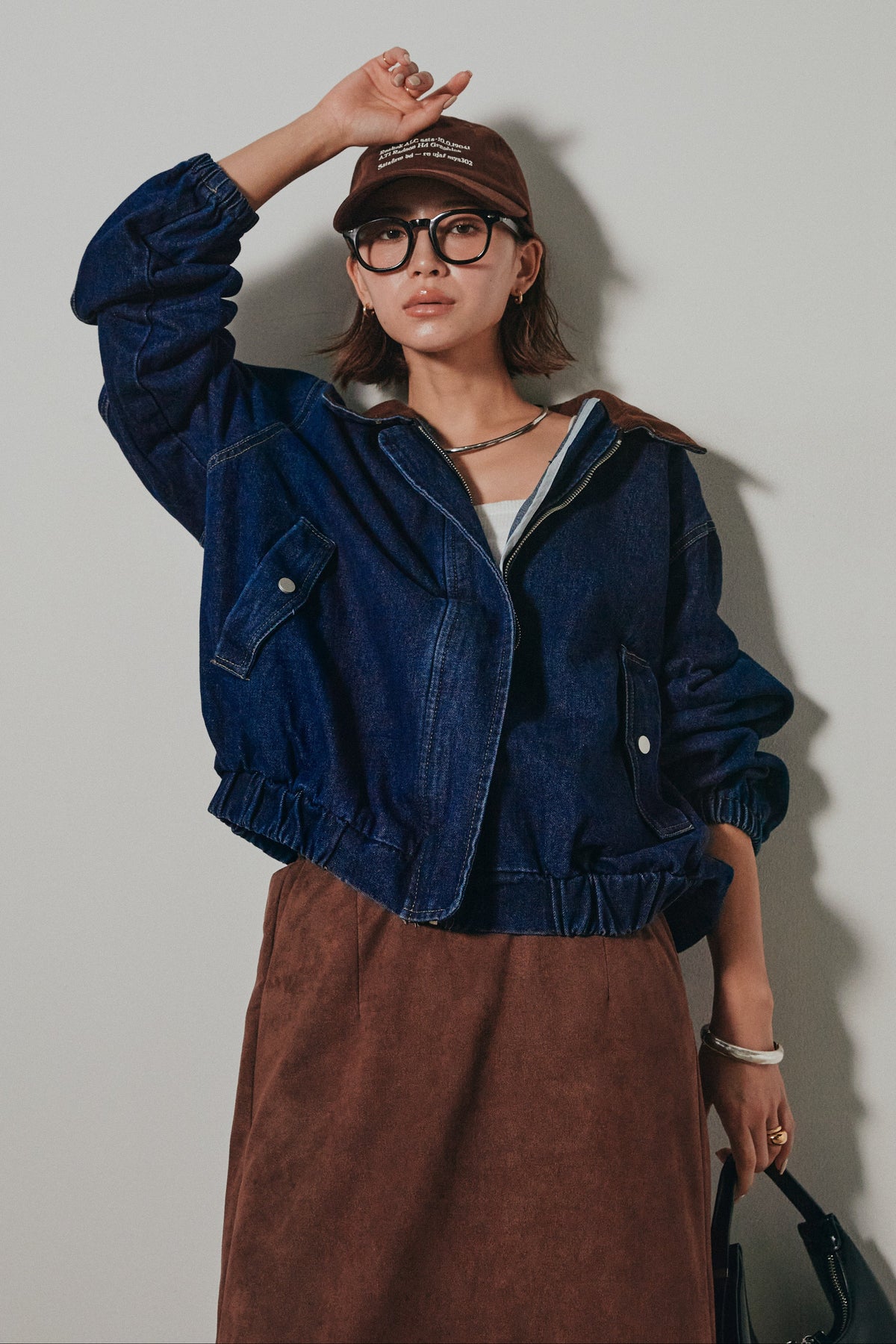 しっかりとしたデニム素材がシーズンムードを高め、羽織るだけでこなれ感を演出。